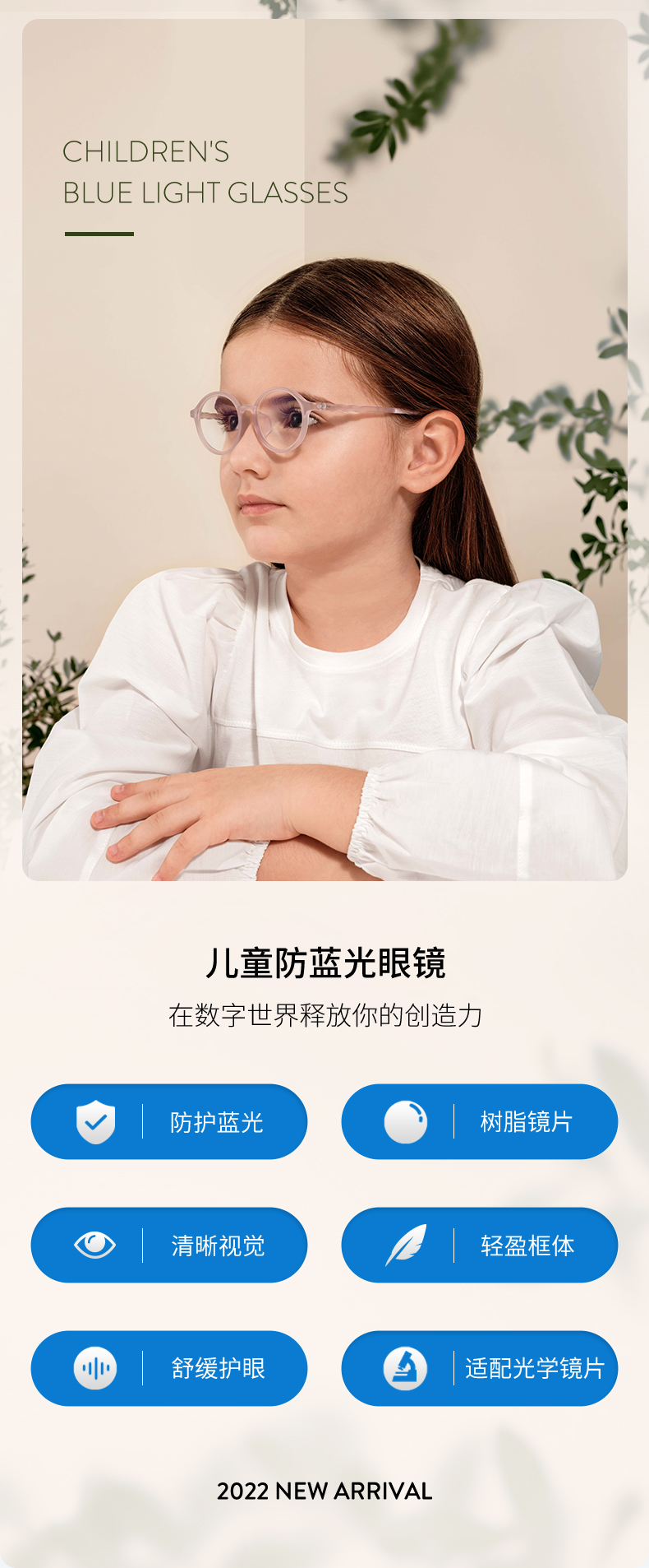 3-7岁OLIVIO&CO儿童防蓝光眼镜防辐射护眼抗疲劳 儿童眼镜防蓝光
