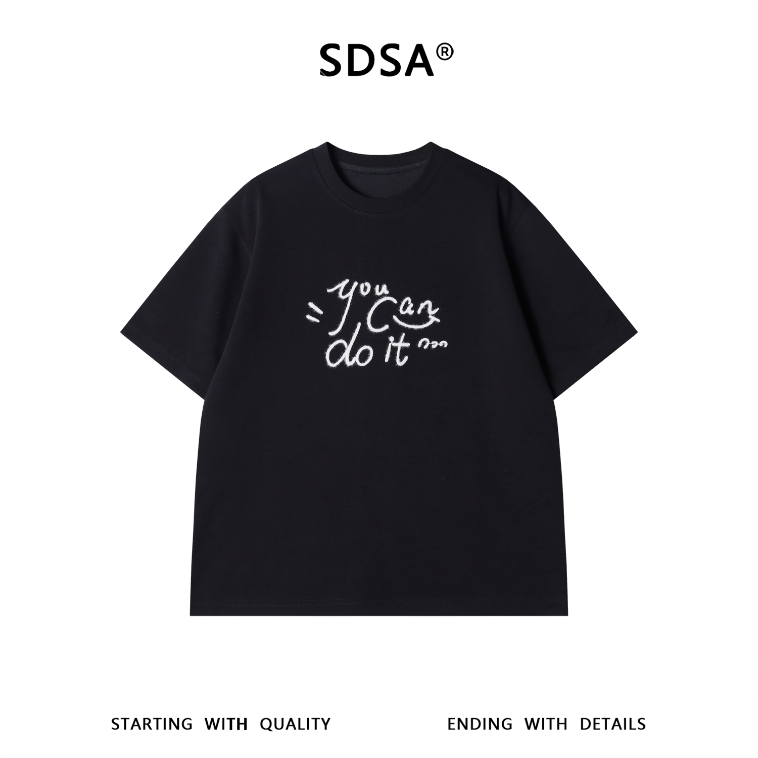 SDSA男装2026新款高贵轻奢手写标语印花短袖T恤宽松圆领休闲上衣