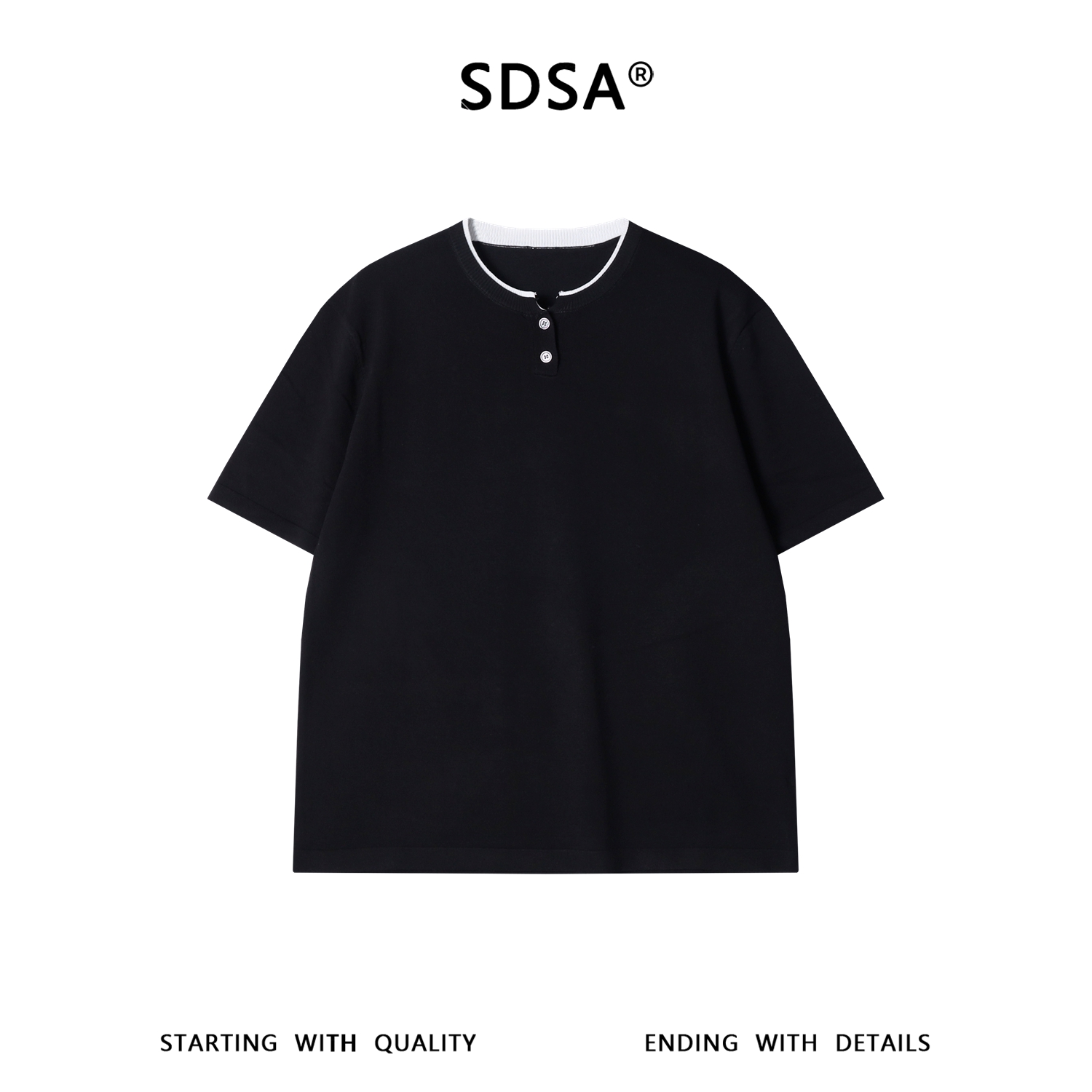 SDSA男装2026新款高贵轻奢休闲撞色半纽扣圆领短袖T恤针织休闲潮