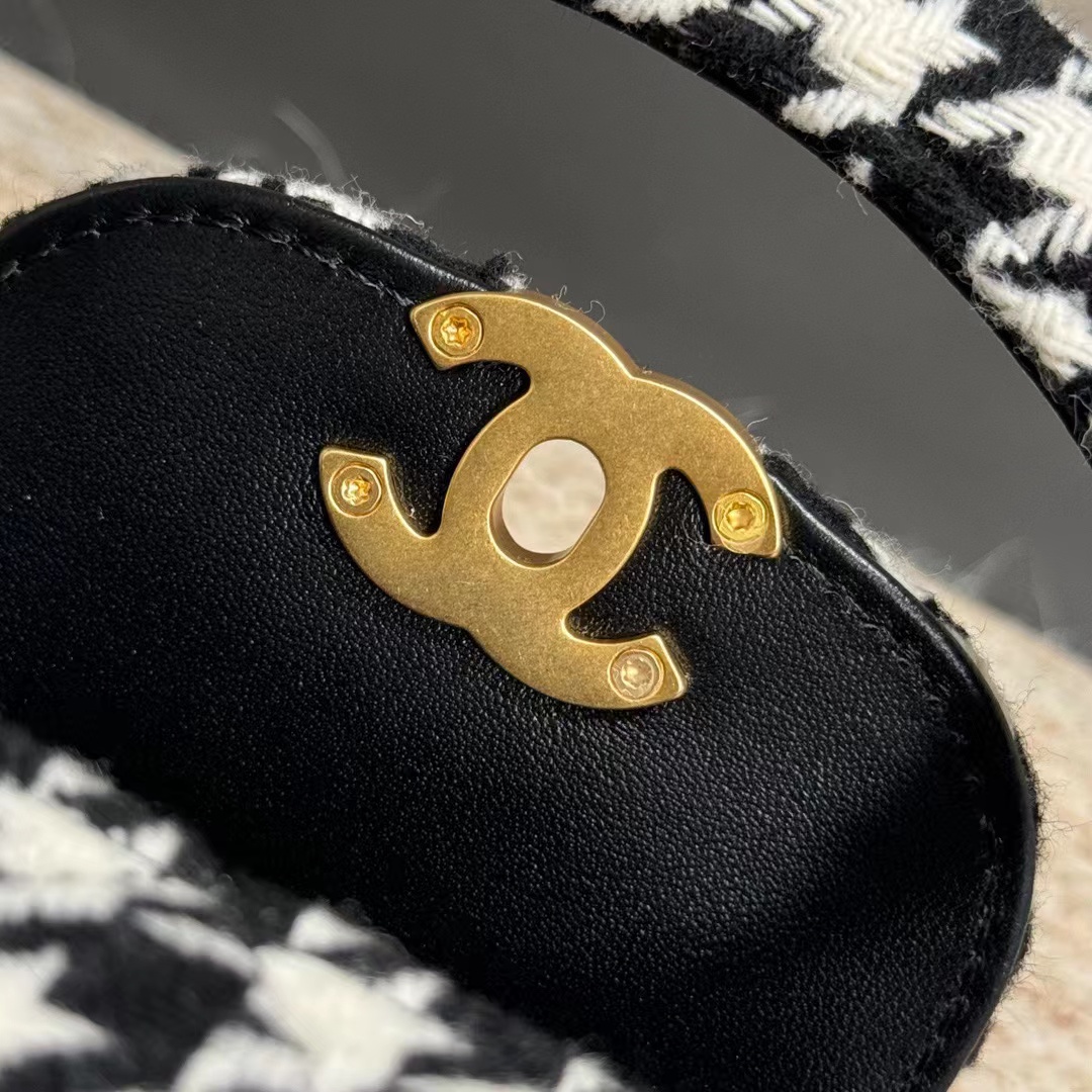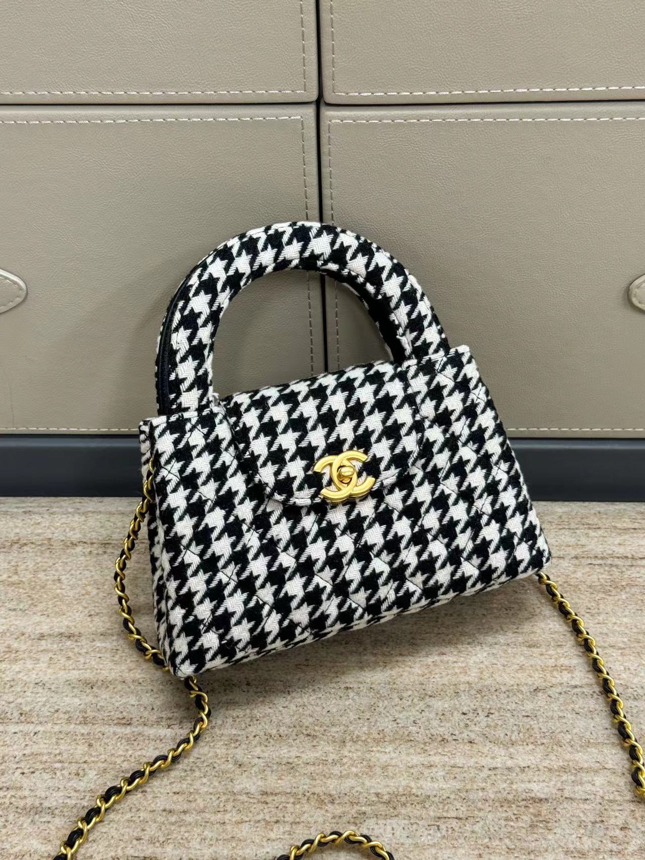 香奶奶 千鸟格 手提包 黑拼白色