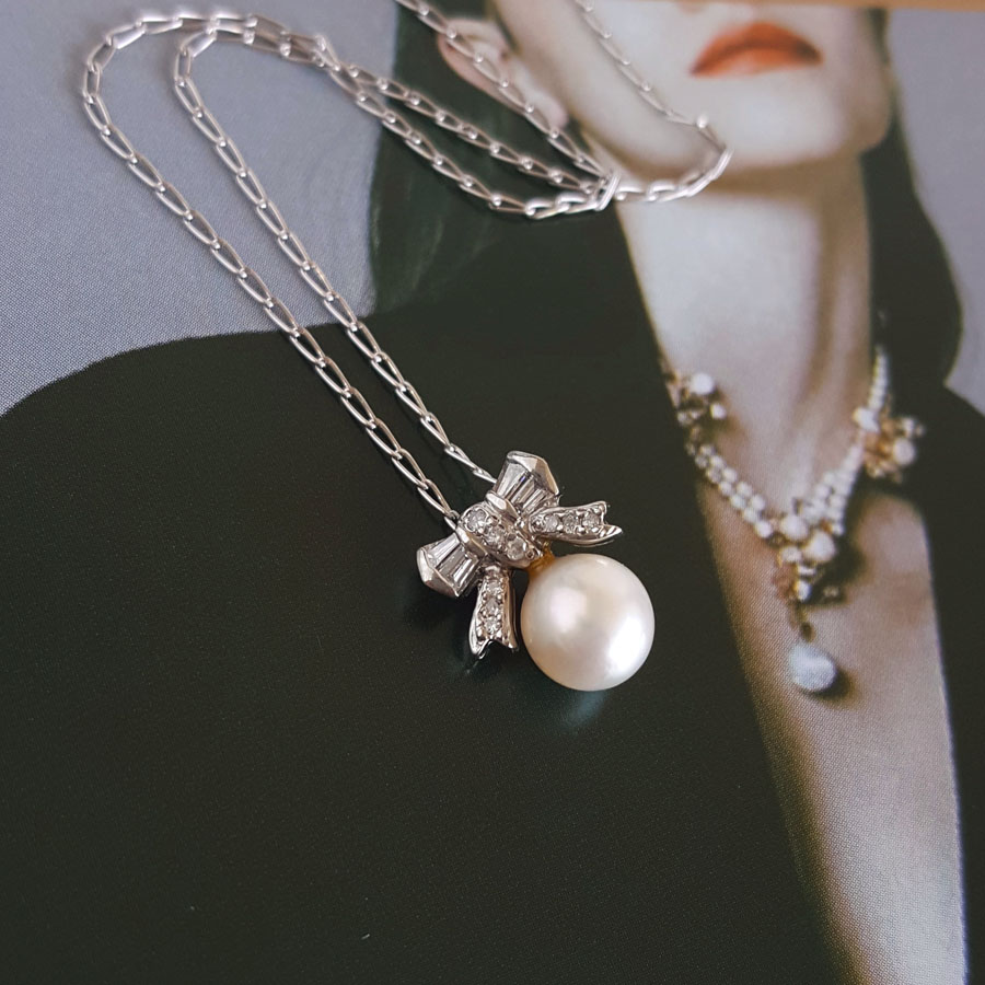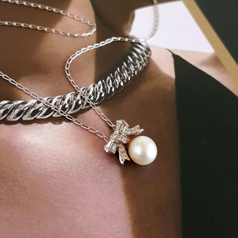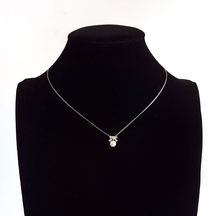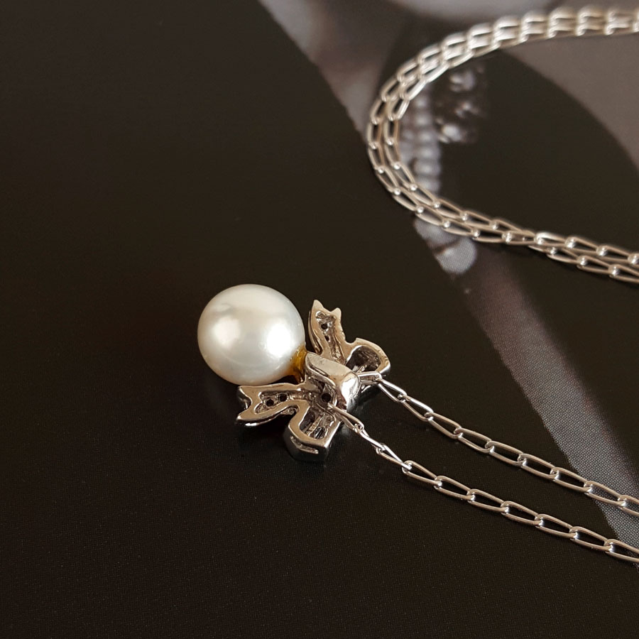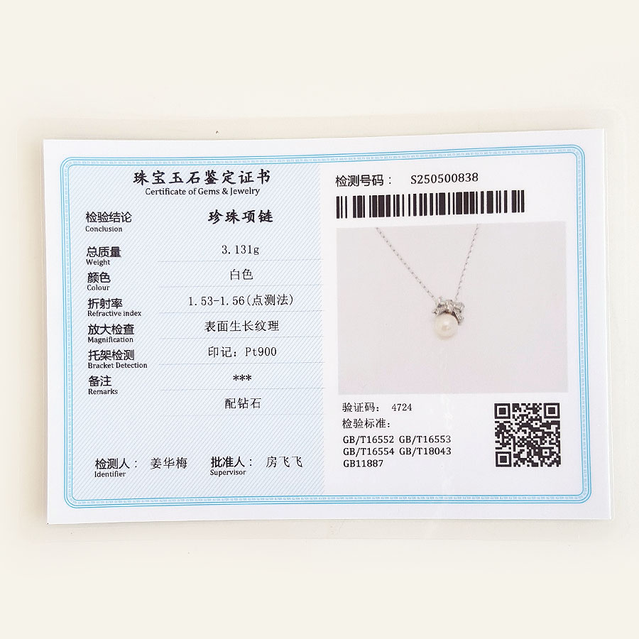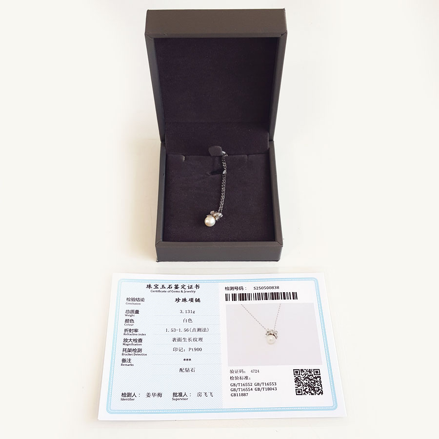 名称 | PT900铂金镶钻镶天然约6.3MM白色珍珠吊坠项链 |