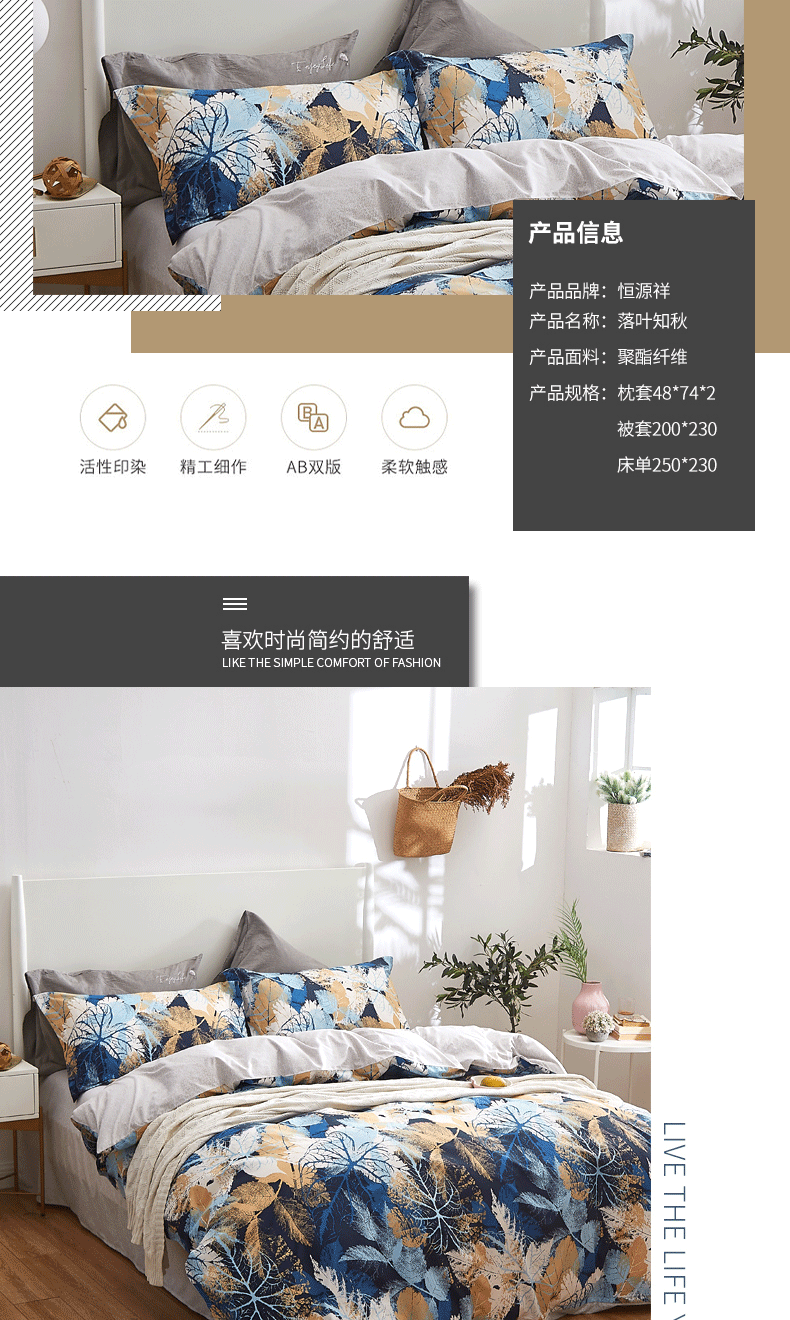 恒源祥(HYX) 恒源祥礼业落叶知秋桃皮绒四件套 落叶知秋 200*230cm
