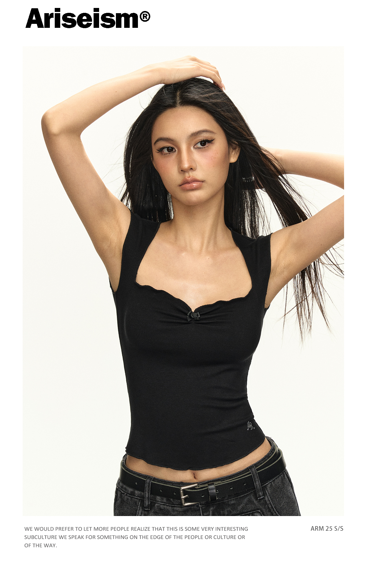 Ariseism 美式复古荡领挂脖吊带背心女夏季新款辣妹无袖修身上衣