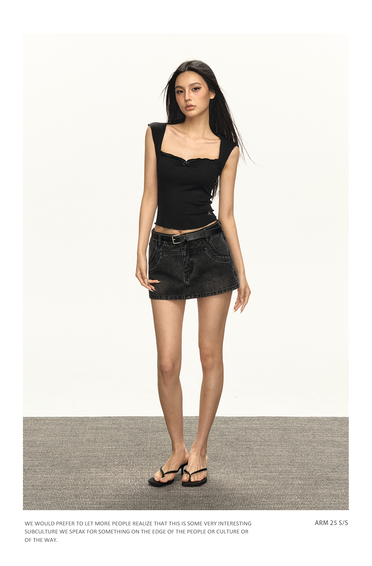 Ariseism 美式复古辣妹修身设计感短袖T恤女夏季新款显瘦上衣