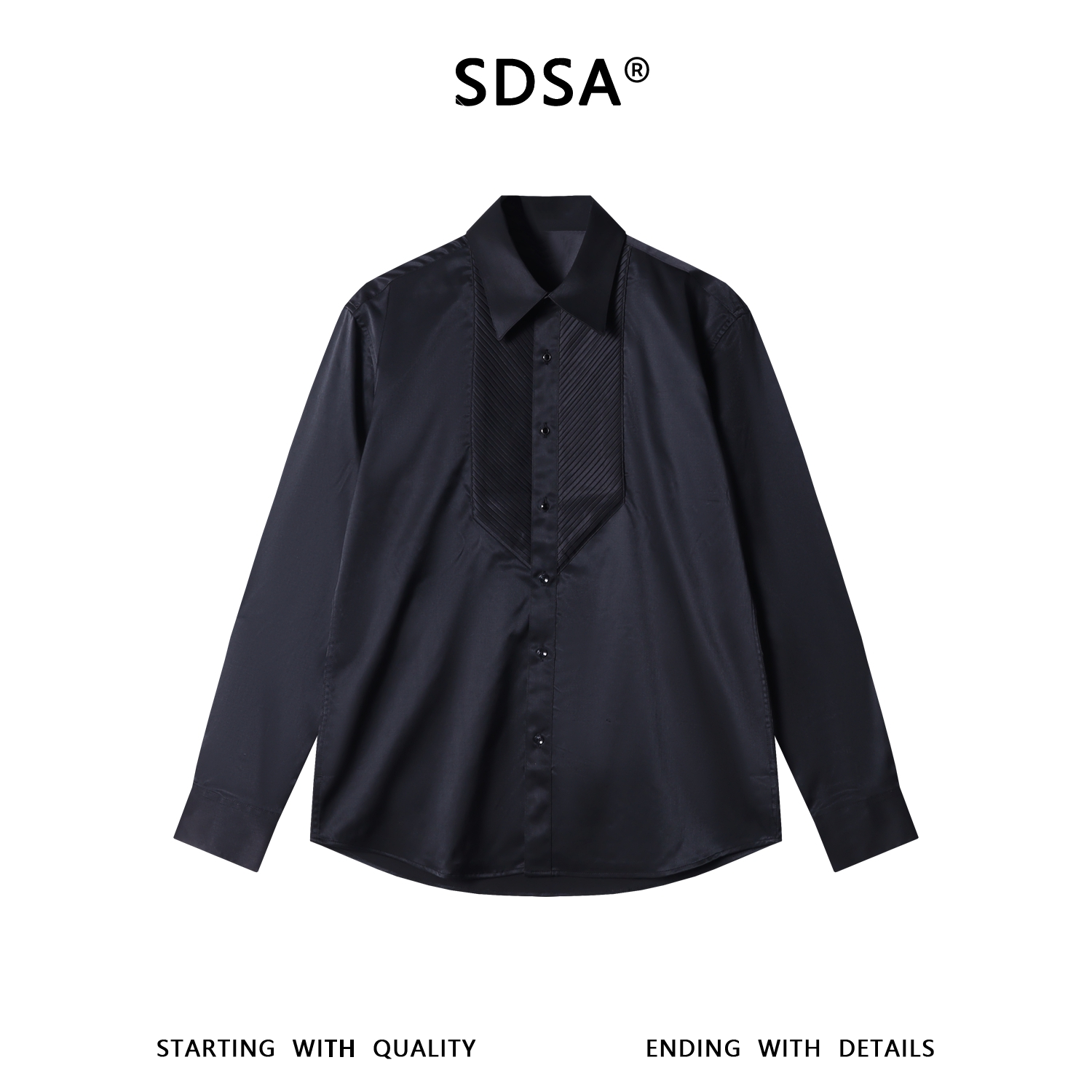 SDSA男装2026新款高贵轻奢法式简约纯色拼接长袖衬衫百搭宽松衬衣