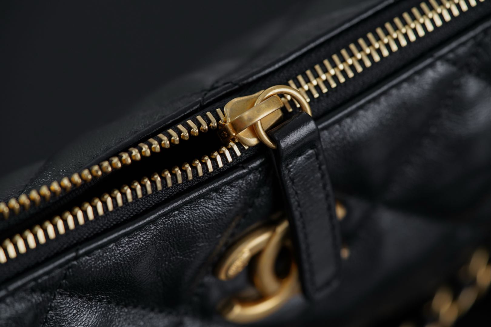油蜡小羊皮的光泽感、搭配浓郁复古的砂金扣 简直不要太高级👏🏻 拉链的设计、背出门安全感十足、随手一拎✔️ 百搭又能装 已沦陷🤩~