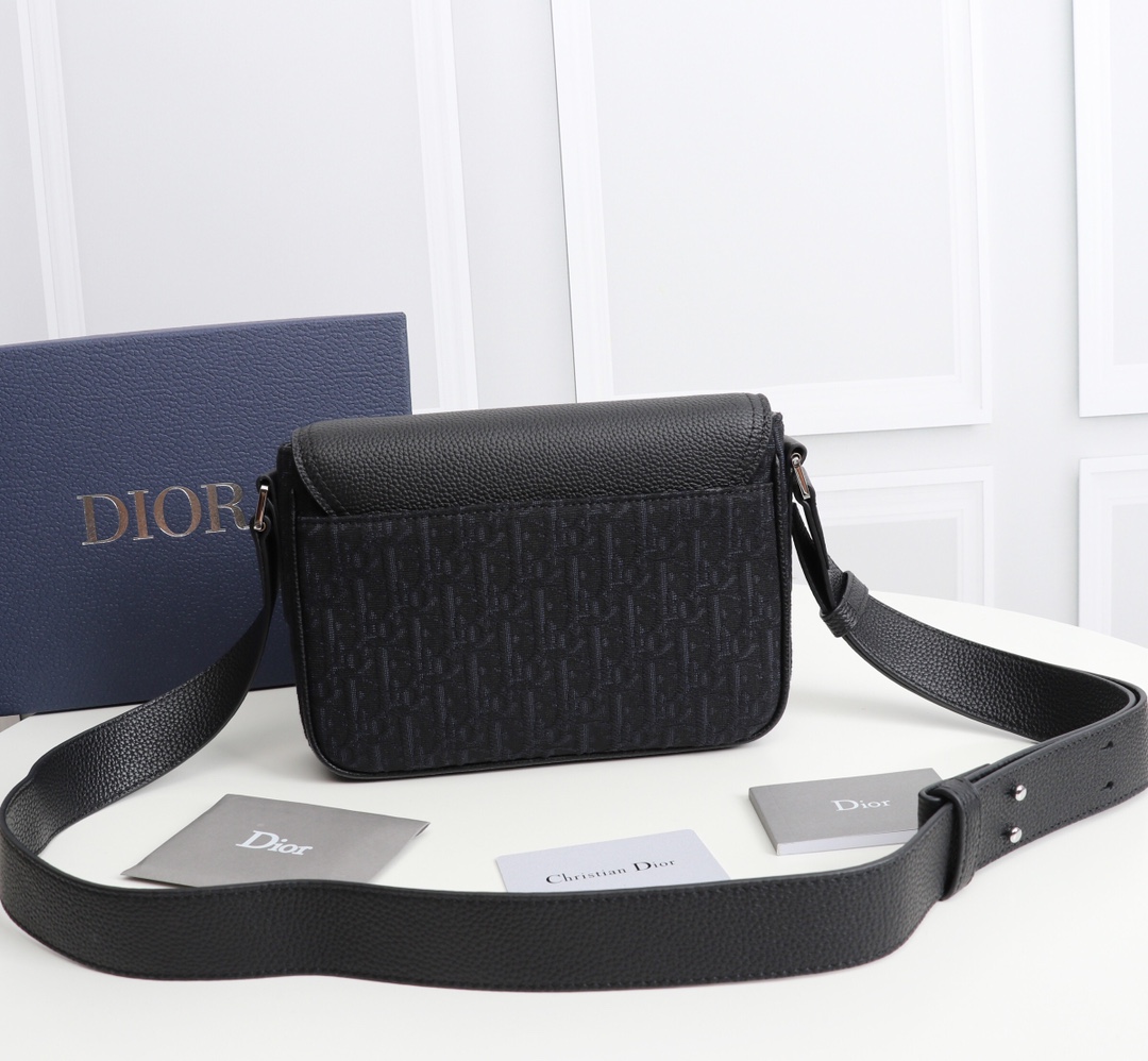 黑色 Oblique 印花面料和粒面牛皮革