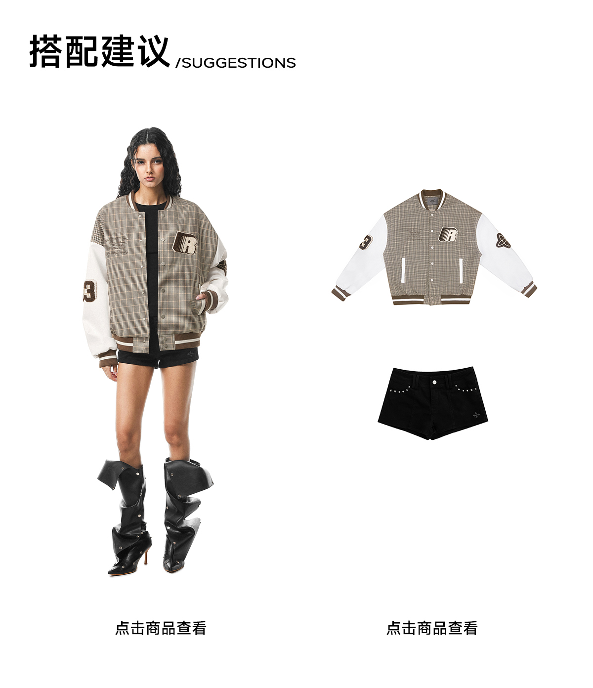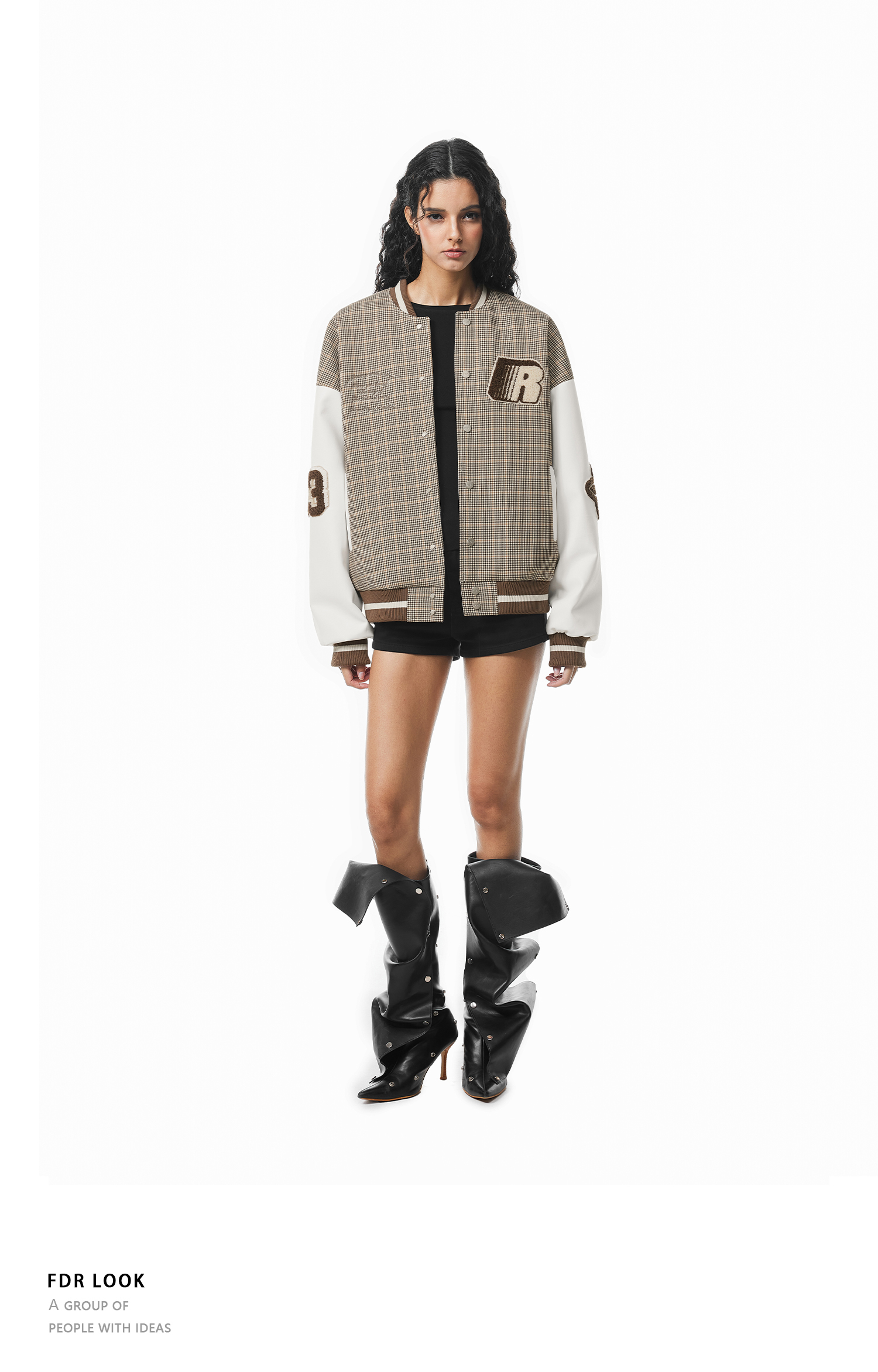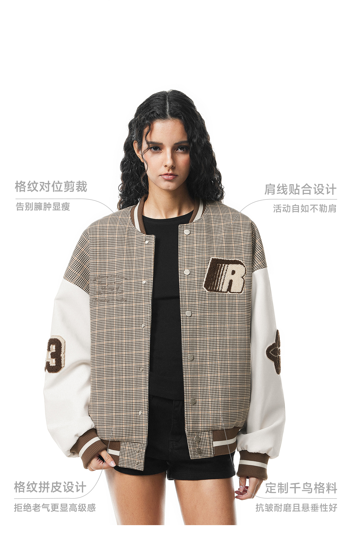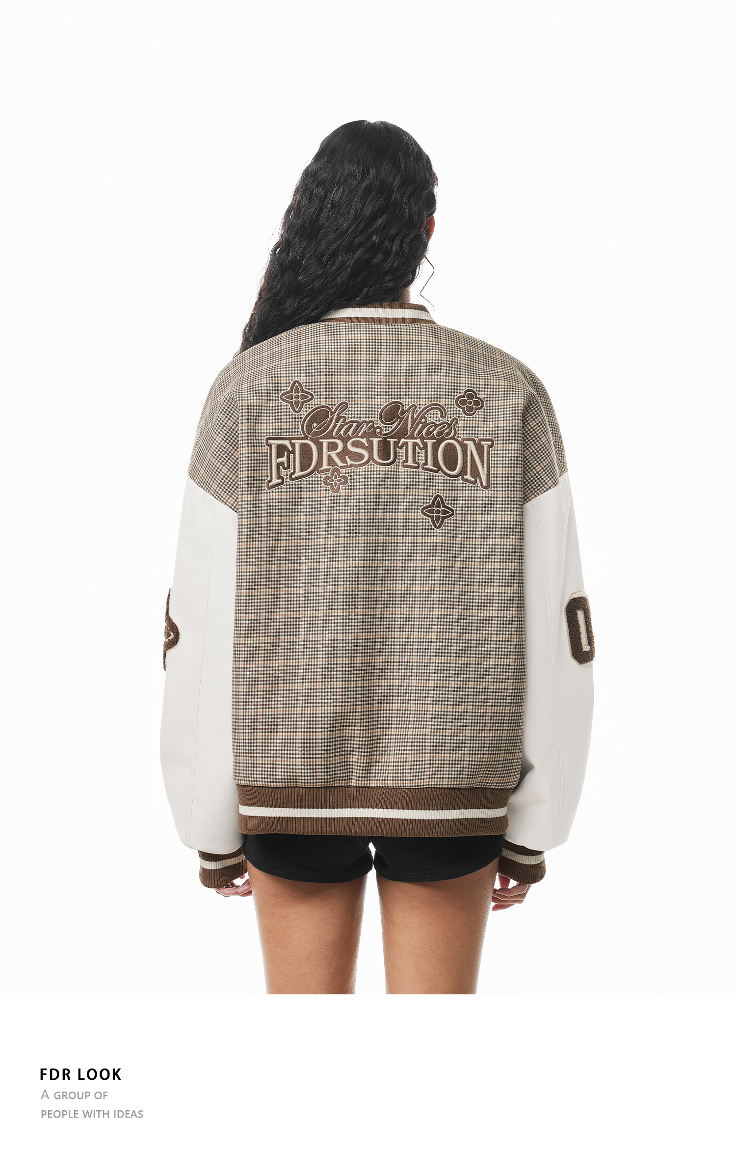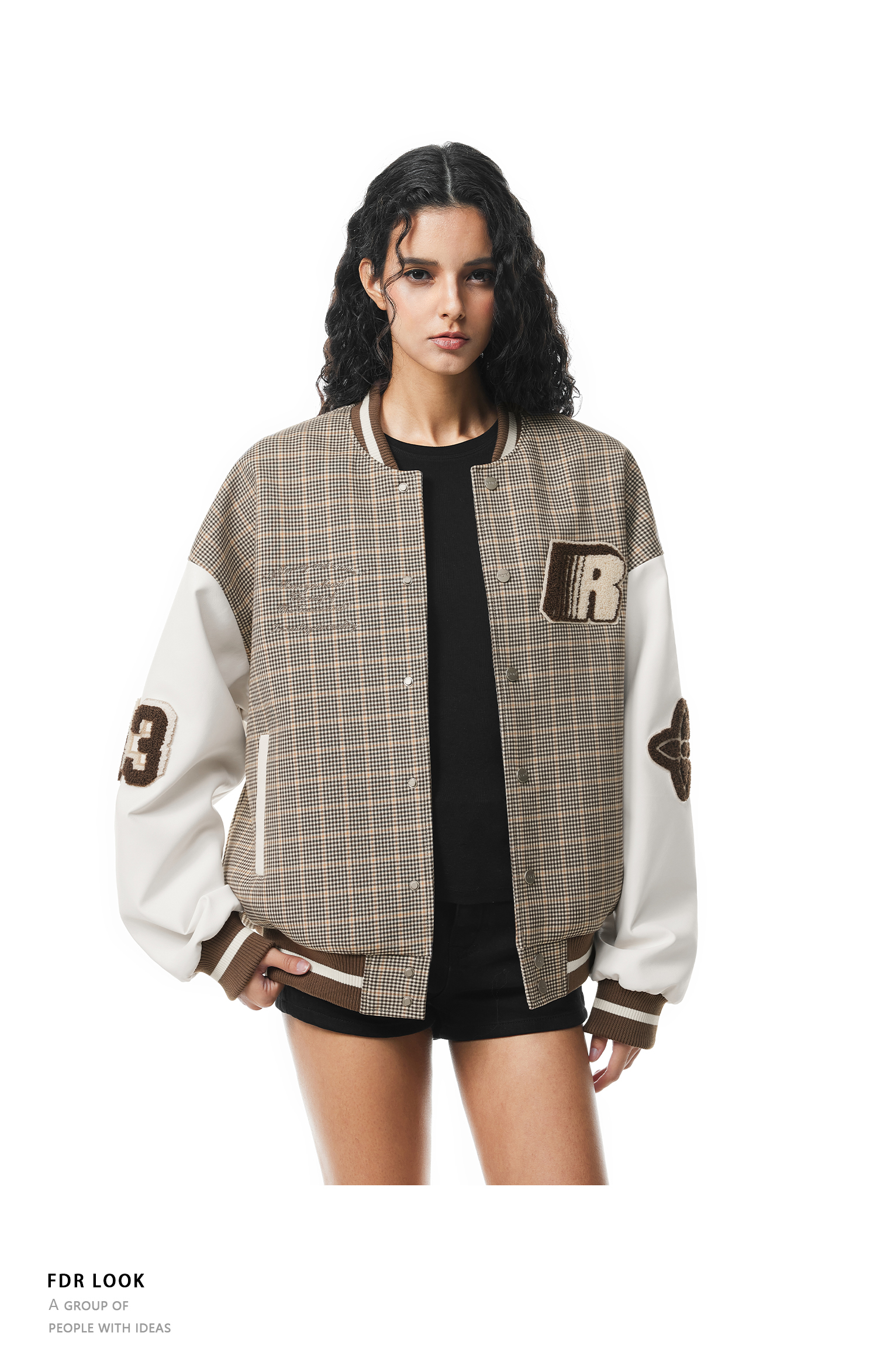 【限时7折】FDR官方店 千鸟格拼接棒球服外套女2025新款秋冬季宽松情侣夹克男