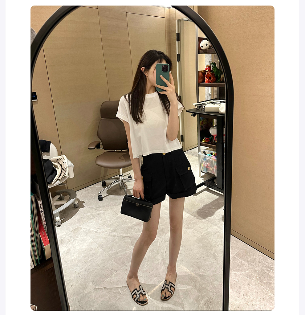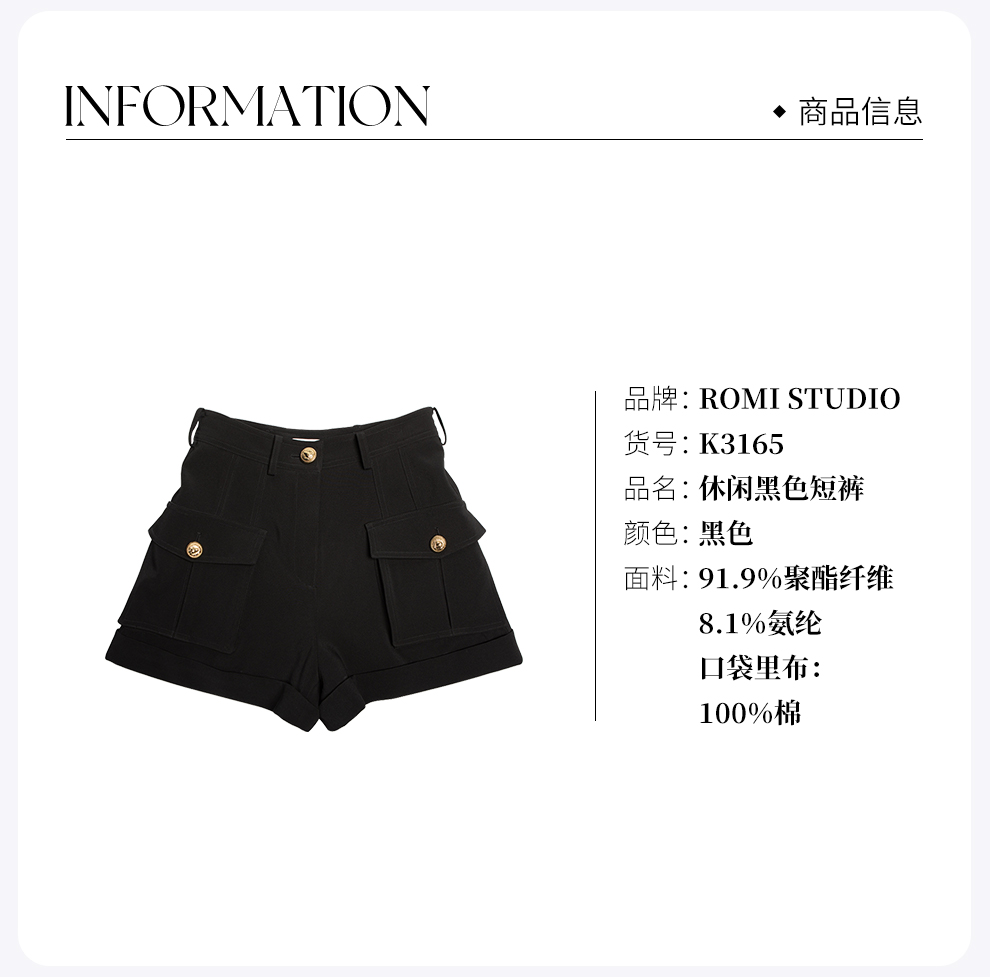 ROMI STUDIO-B【高定系列】高腰百搭休闲香香黑色牛仔短裤K3165