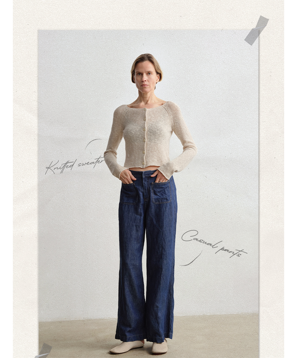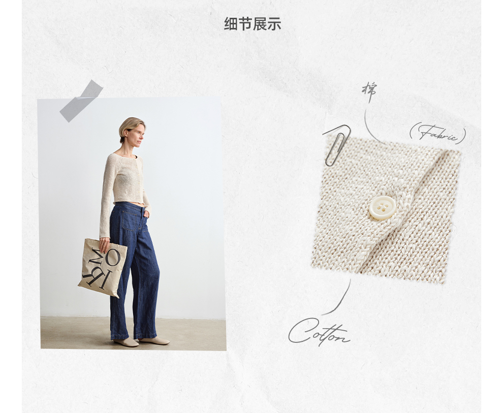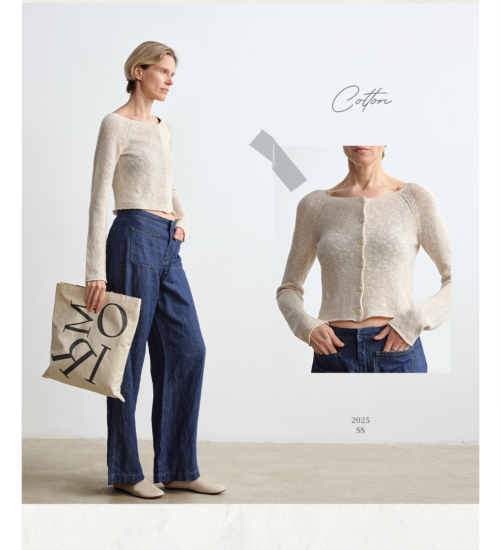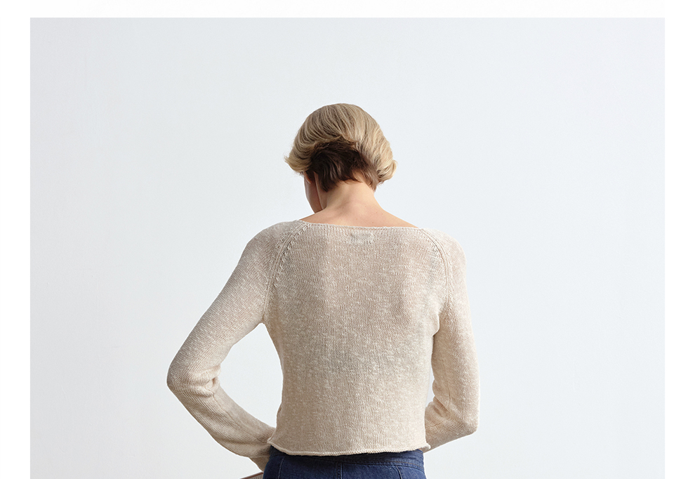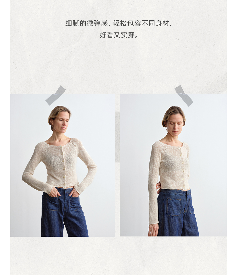 ROMI STUDIO 康宝莱桑蚕丝亚麻棉混纺轻薄卷边圆领开衫RWCRST4129