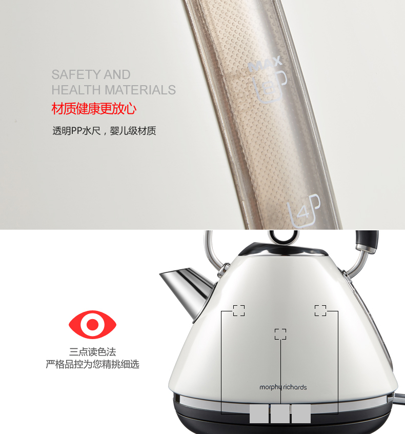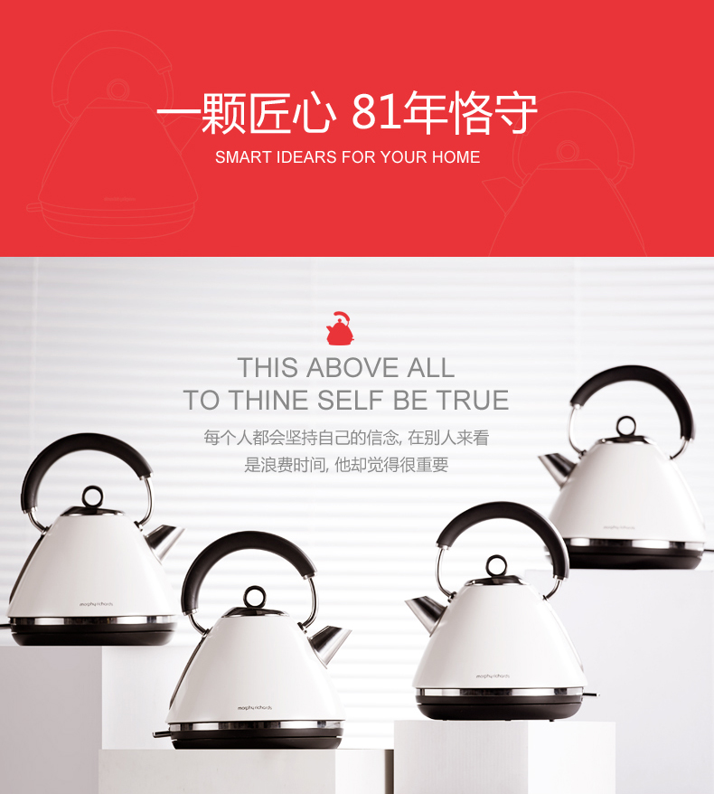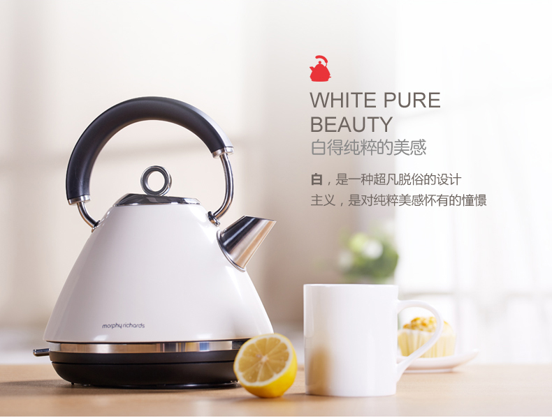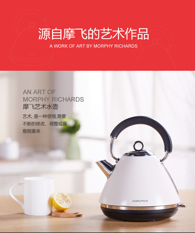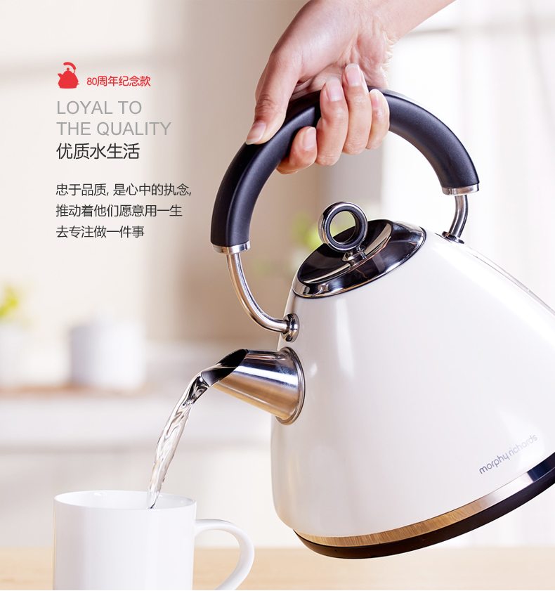 摩飞电器(Morphyrichards)电热水壶 进口304不锈钢烧水壶MR7076A 1.5L电水壶 米白色