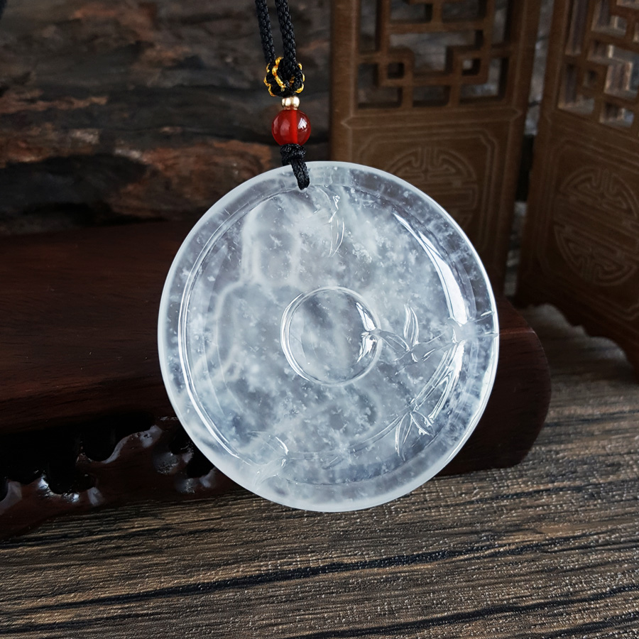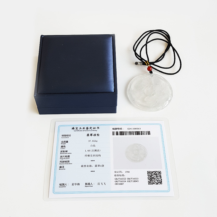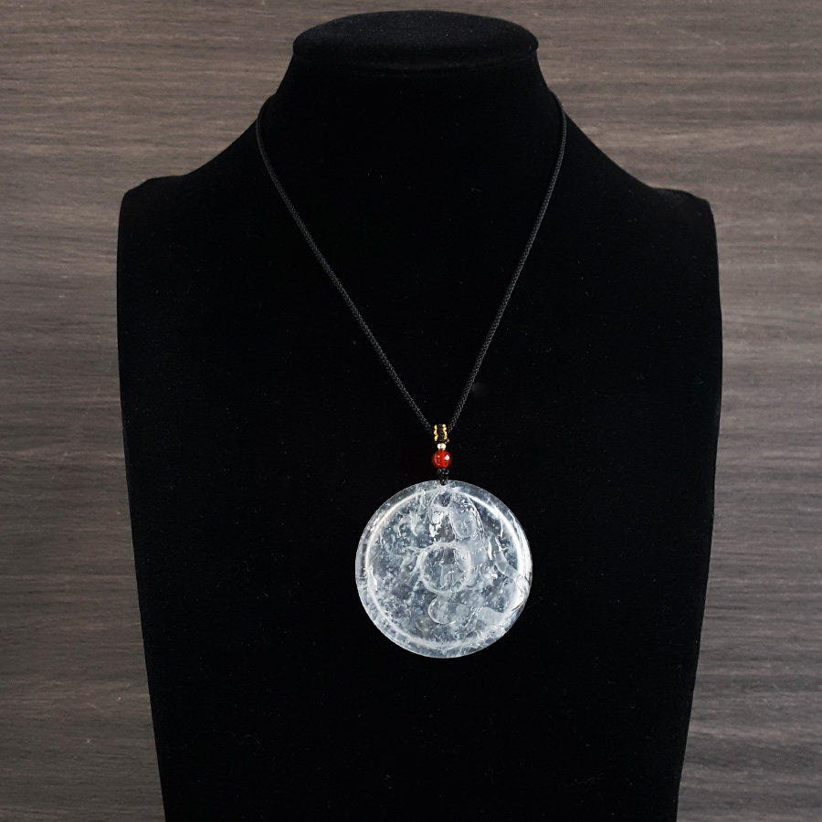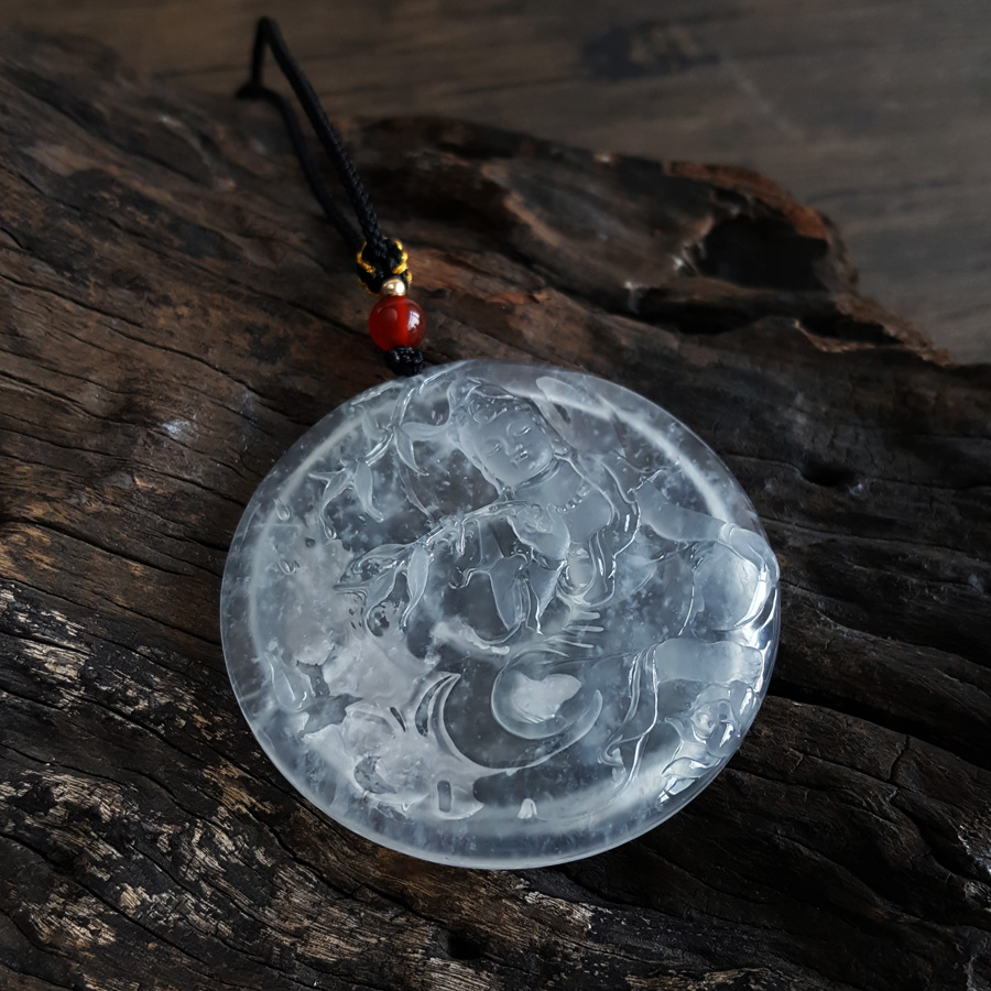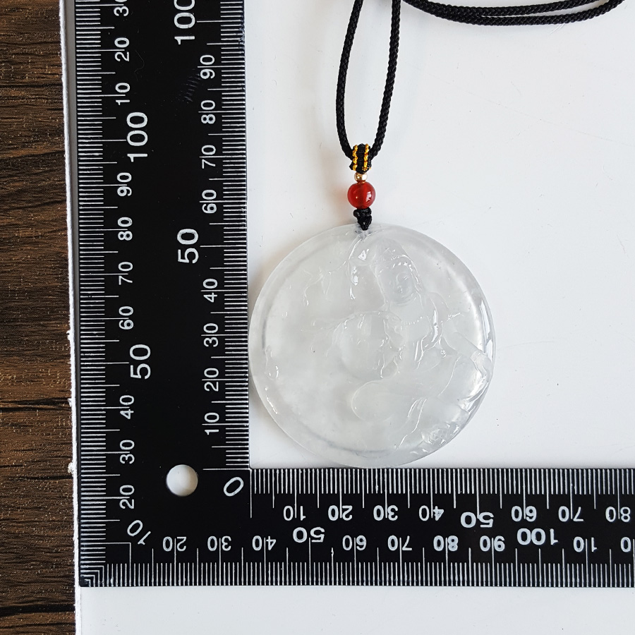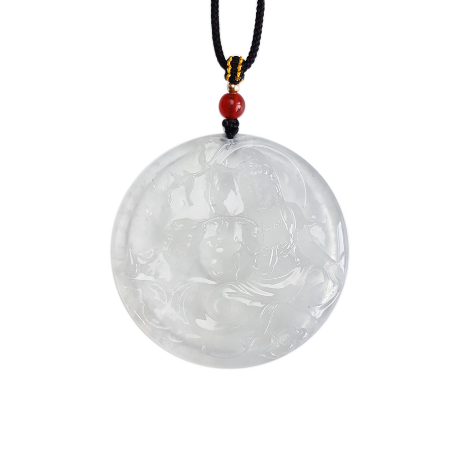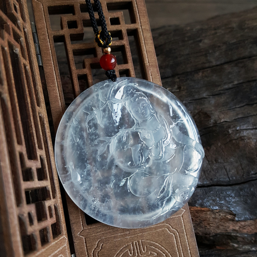 名称 | 天然收藏级无纹裂高冰种老坑木那雪花棉观音(平安、守护)吊坠项链 |