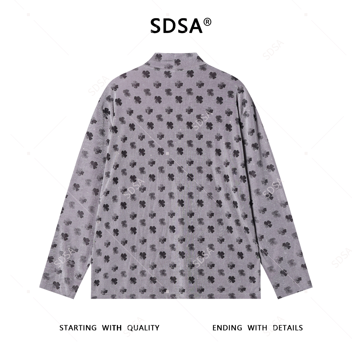 T4886SDSA秋冬新款痞帅男装韩版潮牌撞色满印四叶草半高领长袖T恤百搭