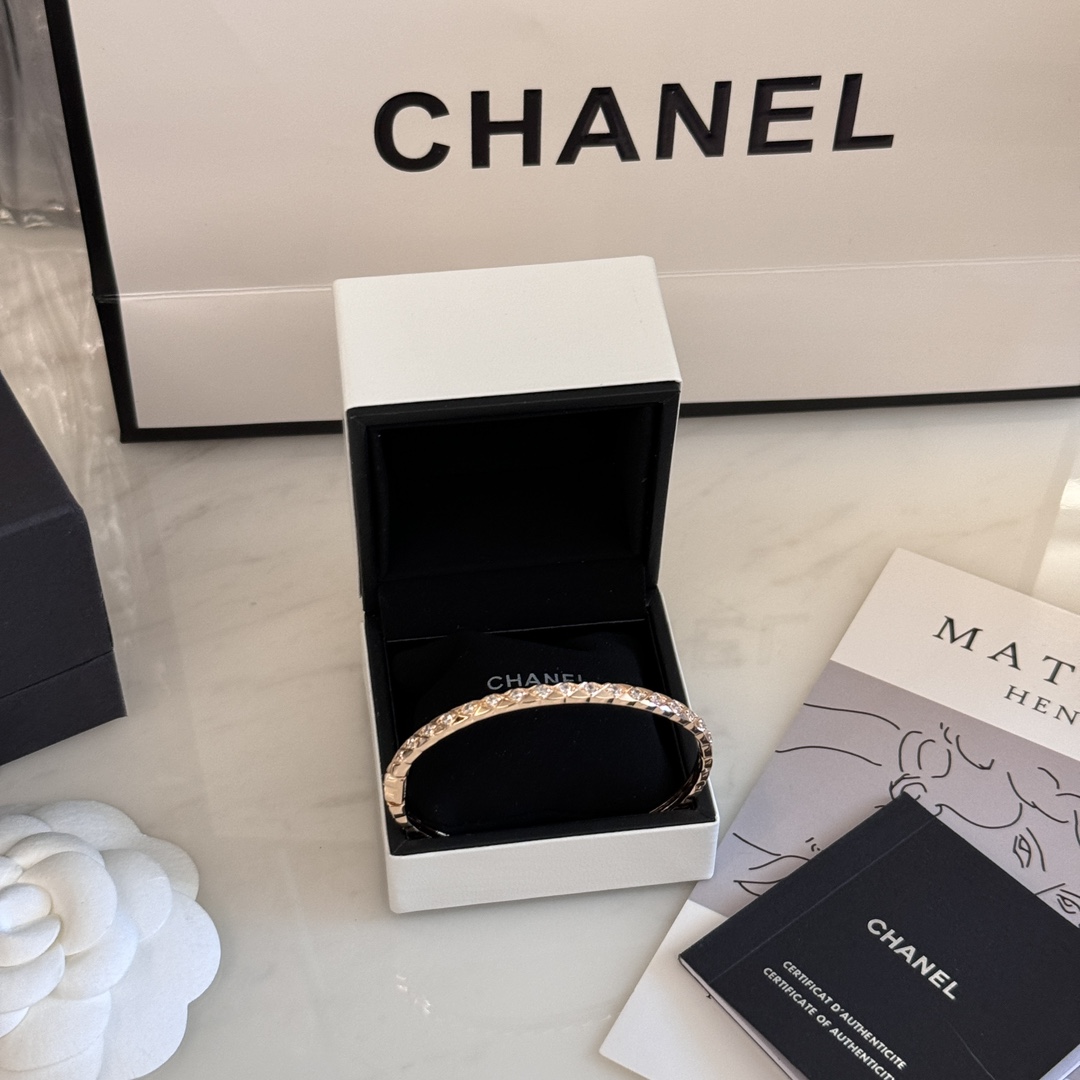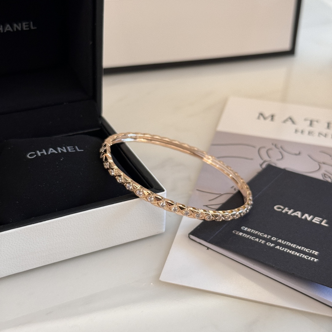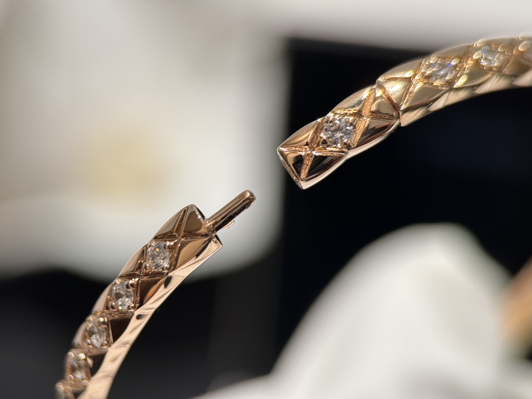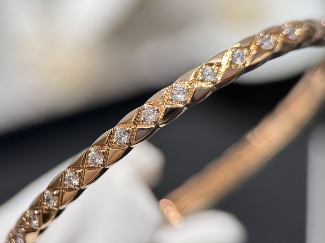 Jennie同款??新款Coco Crush CH006#菱格纹全钻窄版手镯 经典菱格纹设计?? 厚镀18k玫瑰金 精致高级单品??