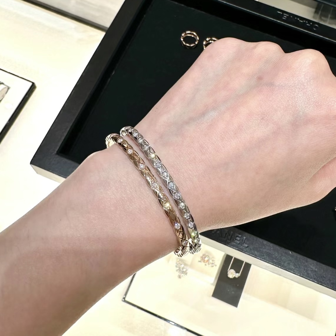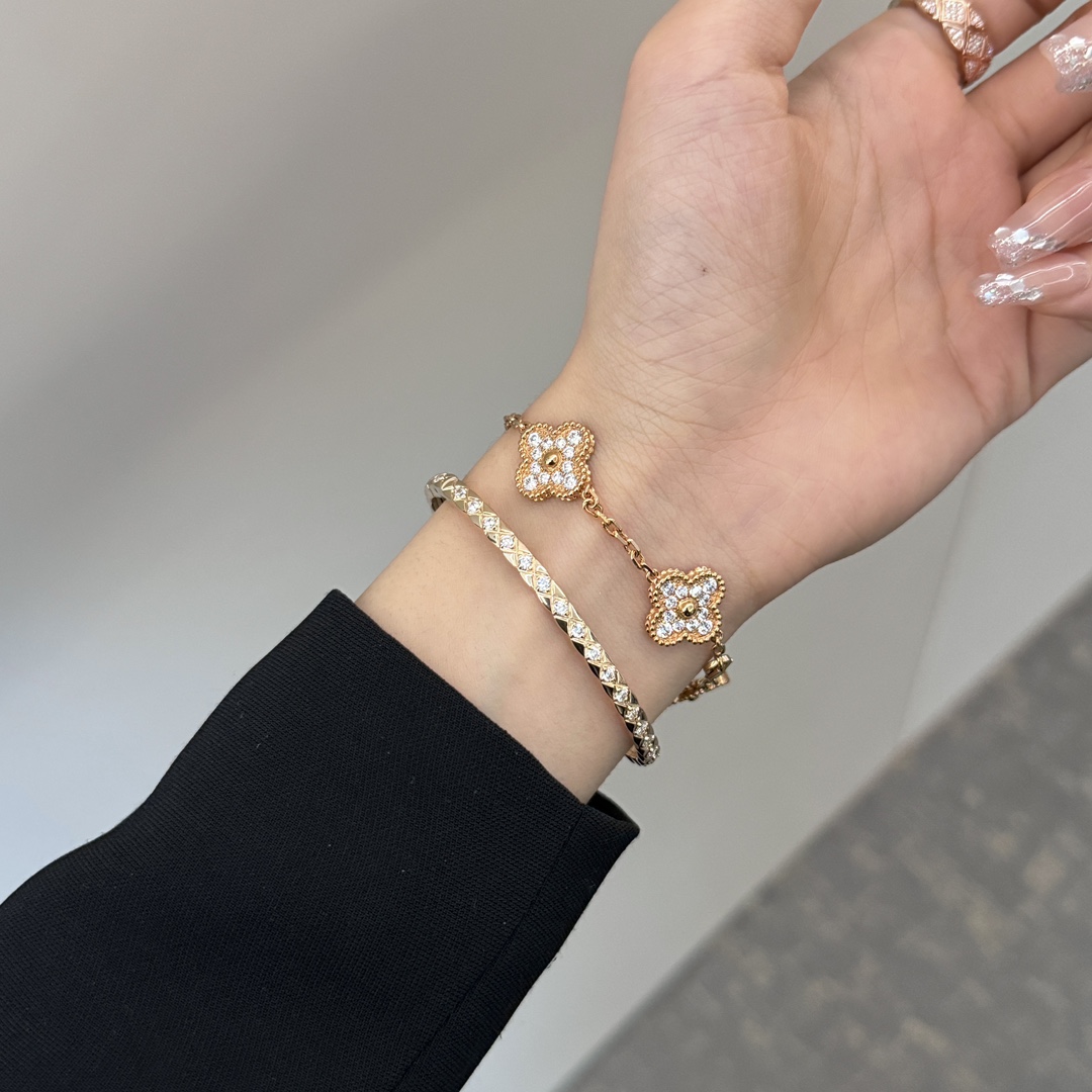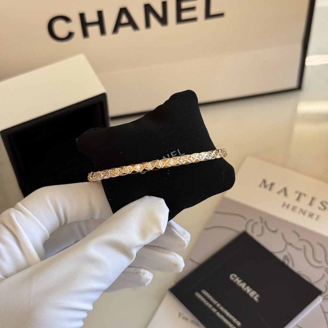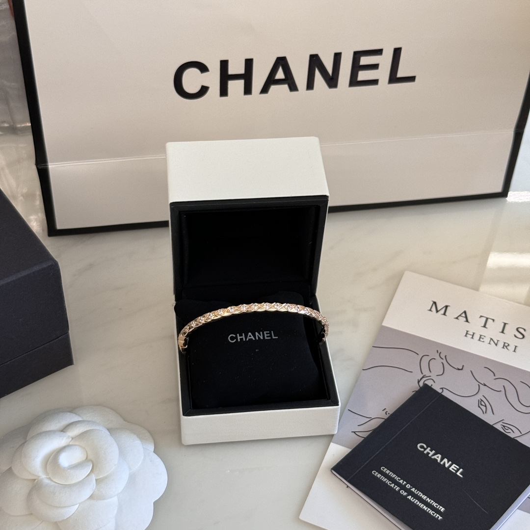 Jennie同款??新款Coco Crush CH006#菱格纹全钻窄版手镯 经典菱格纹设计?? 厚镀18k玫瑰金 精致高级单品??