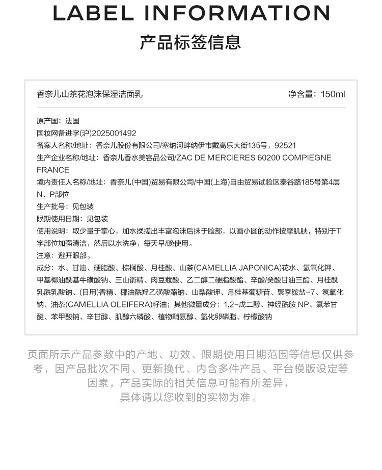 香奈儿Chanel 柔和净肤泡沫洁面乳150ml(山茶花洁面)
