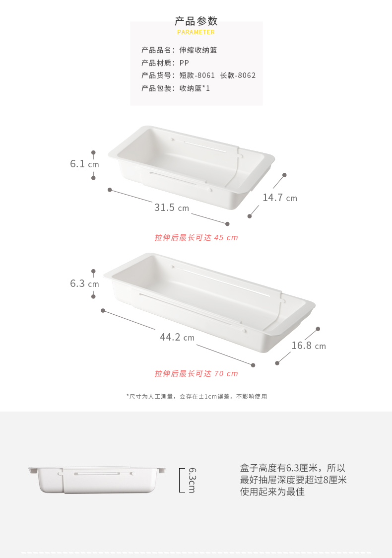 【白色短款/长款】娜家抽屉伸缩收纳盒