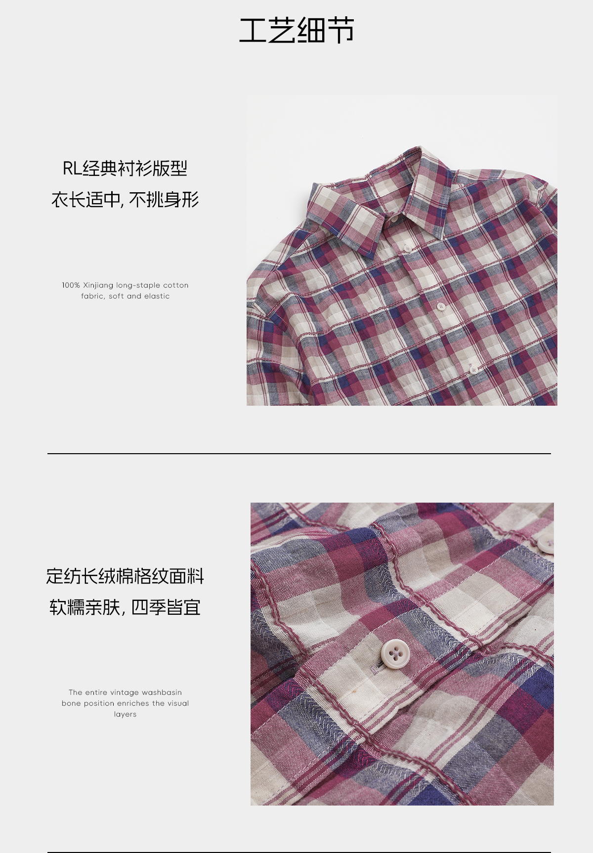 ROMI STUDIO“格纹经典”超细长绒棉空气感色织开襟衬衫 RWCSSG7505