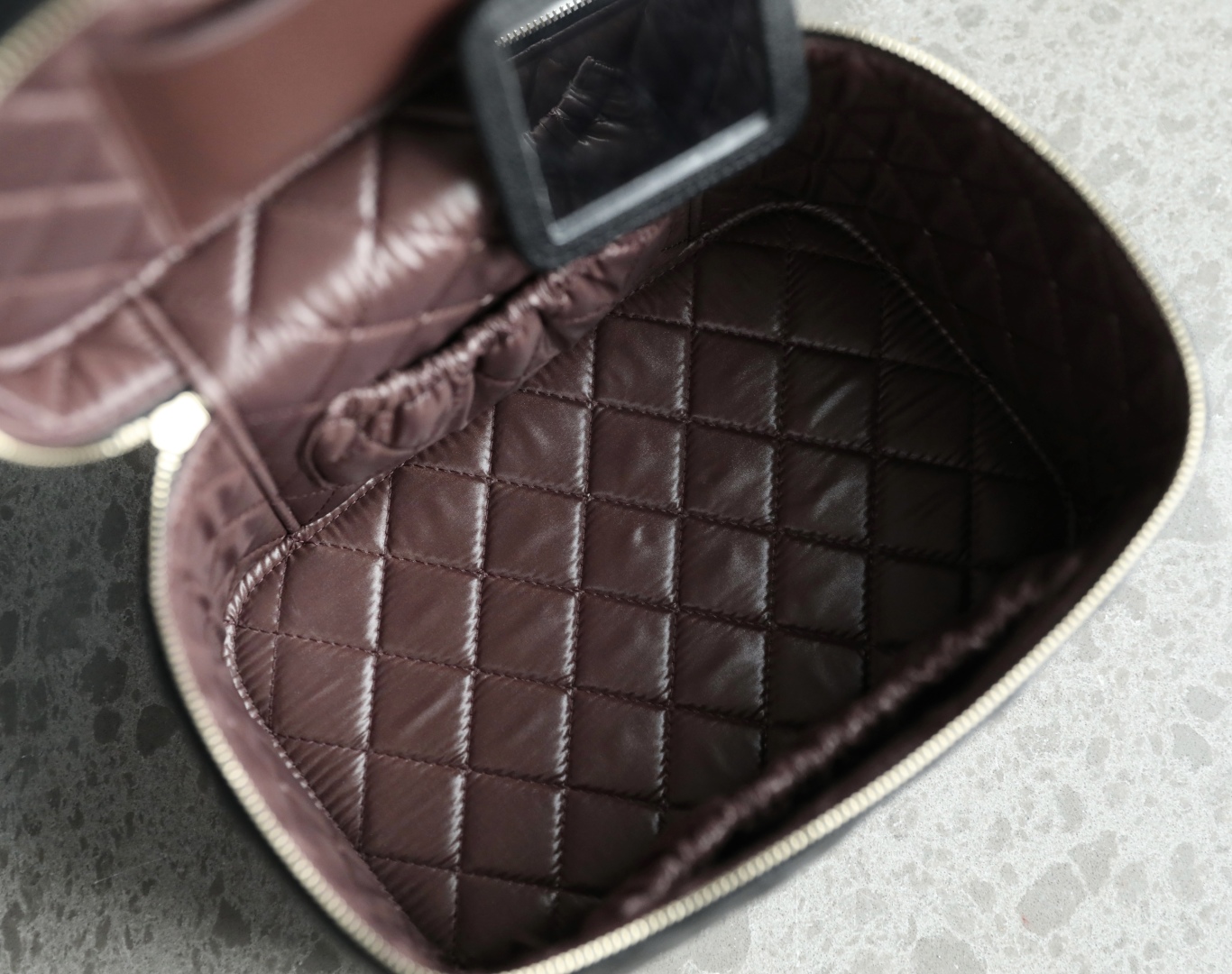 专柜售价𝟤𝟢𝟥𝟢𝟢𝗋𝗆𝖻购入开发~ 洗漱包|把“化妆间”背在身上的快乐✨ 实用党必冲!香奶奶的“小心机”终于𝖦𝖾𝗍了! 简直是 “移动化妆间+时尚武器” 二合一 内置链条小镜子🪞分层设计也超科学的, 粉饼、口红、香水、甚至小墨镜都能塞。 出门补妆很方便,再也不用手忙脚乱啦~