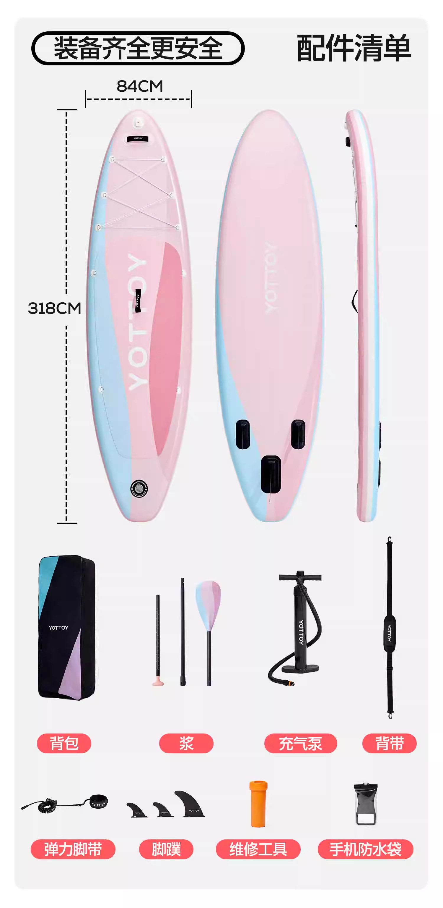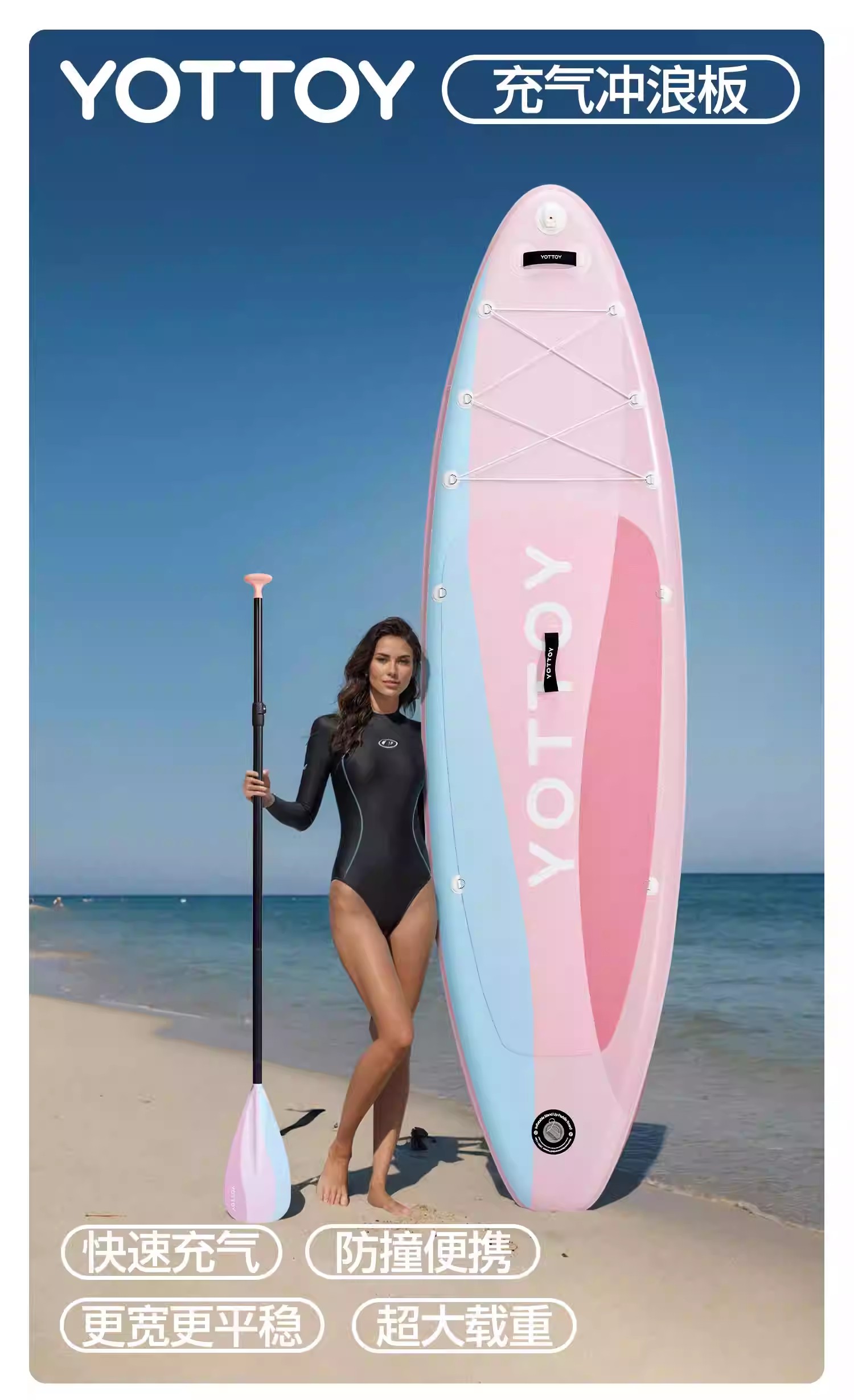 冲浪板【YOTTOY】充气冲浪板水上站立冲浪板专业桨板划水板桨板成人冲浪板