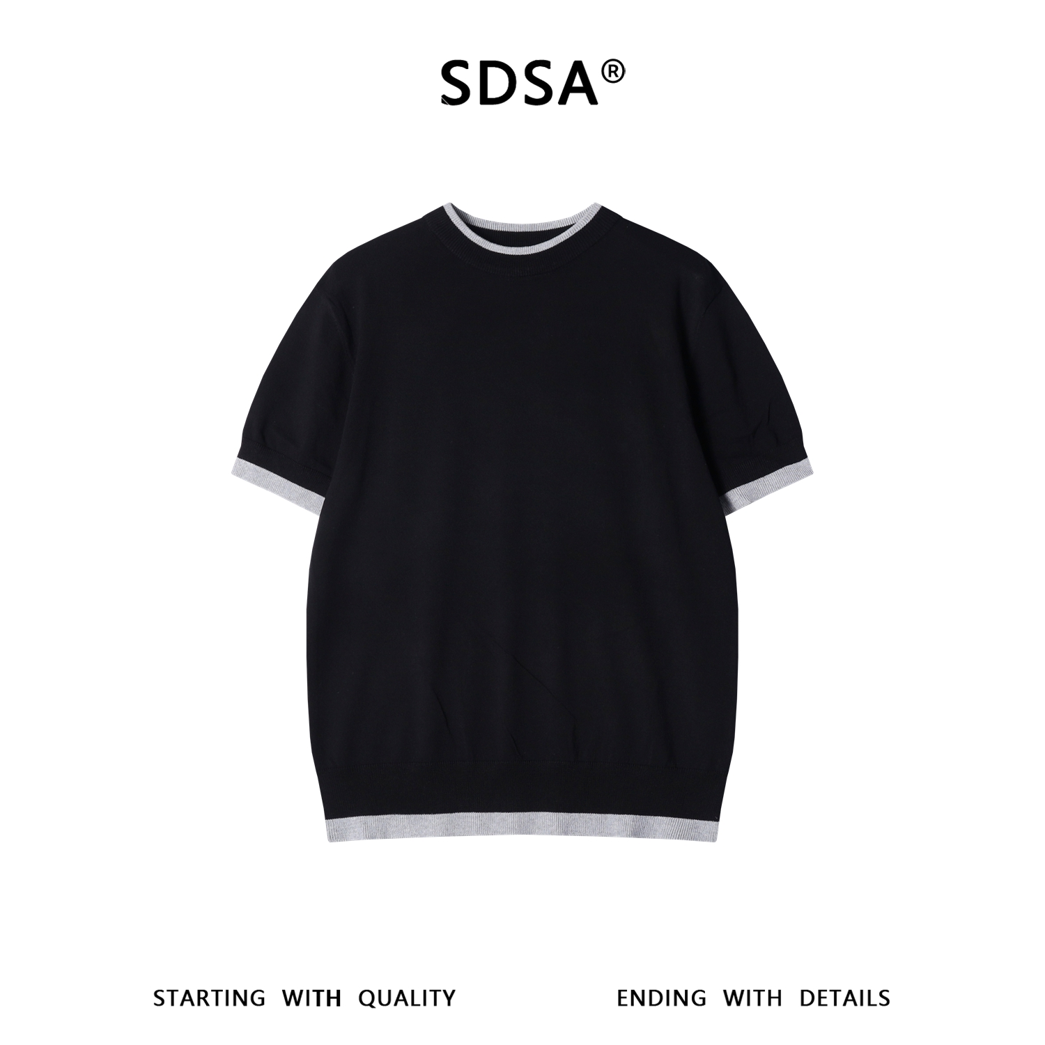SDSA男装2026新款轻奢基础款撞色设计针织圆领短袖T恤百搭休闲