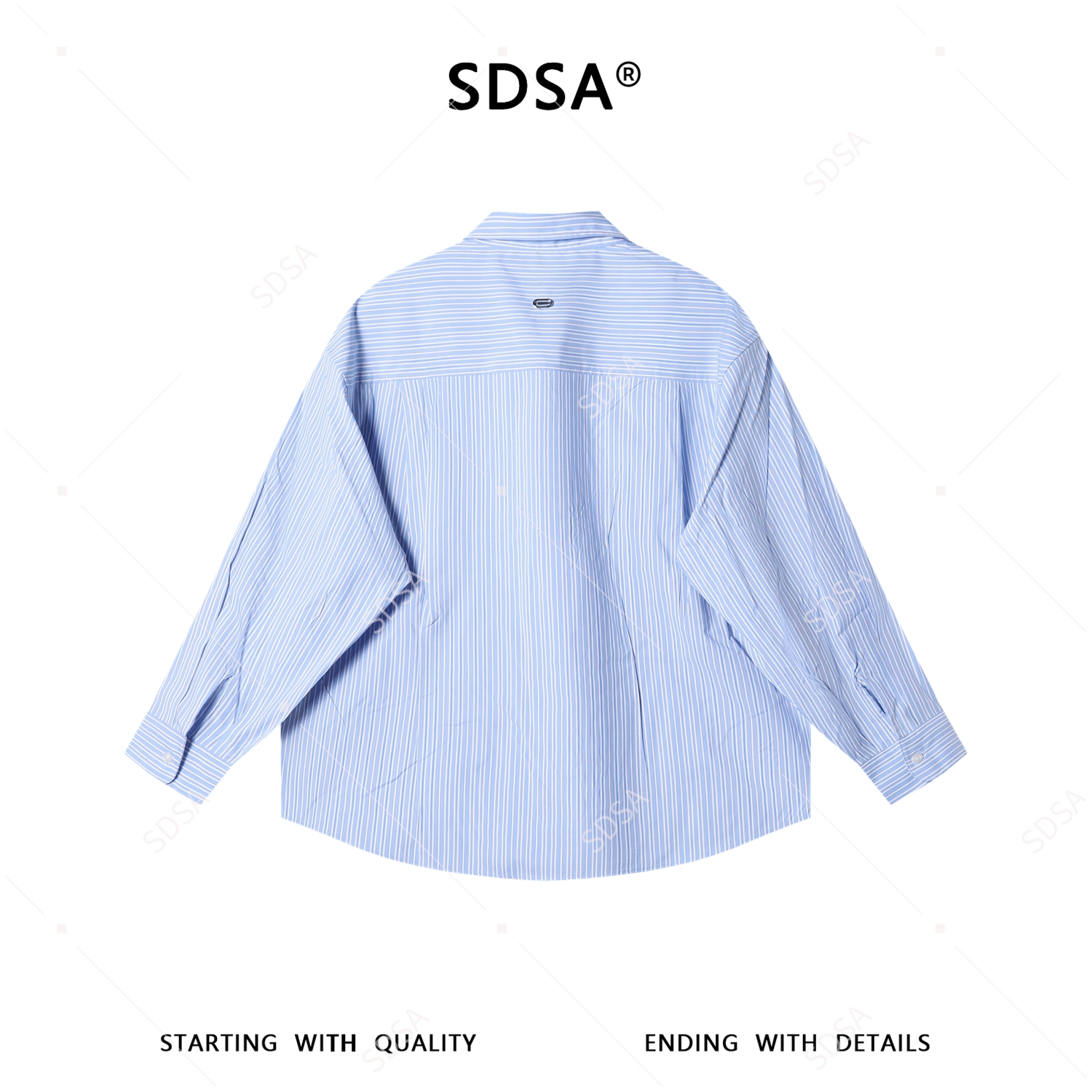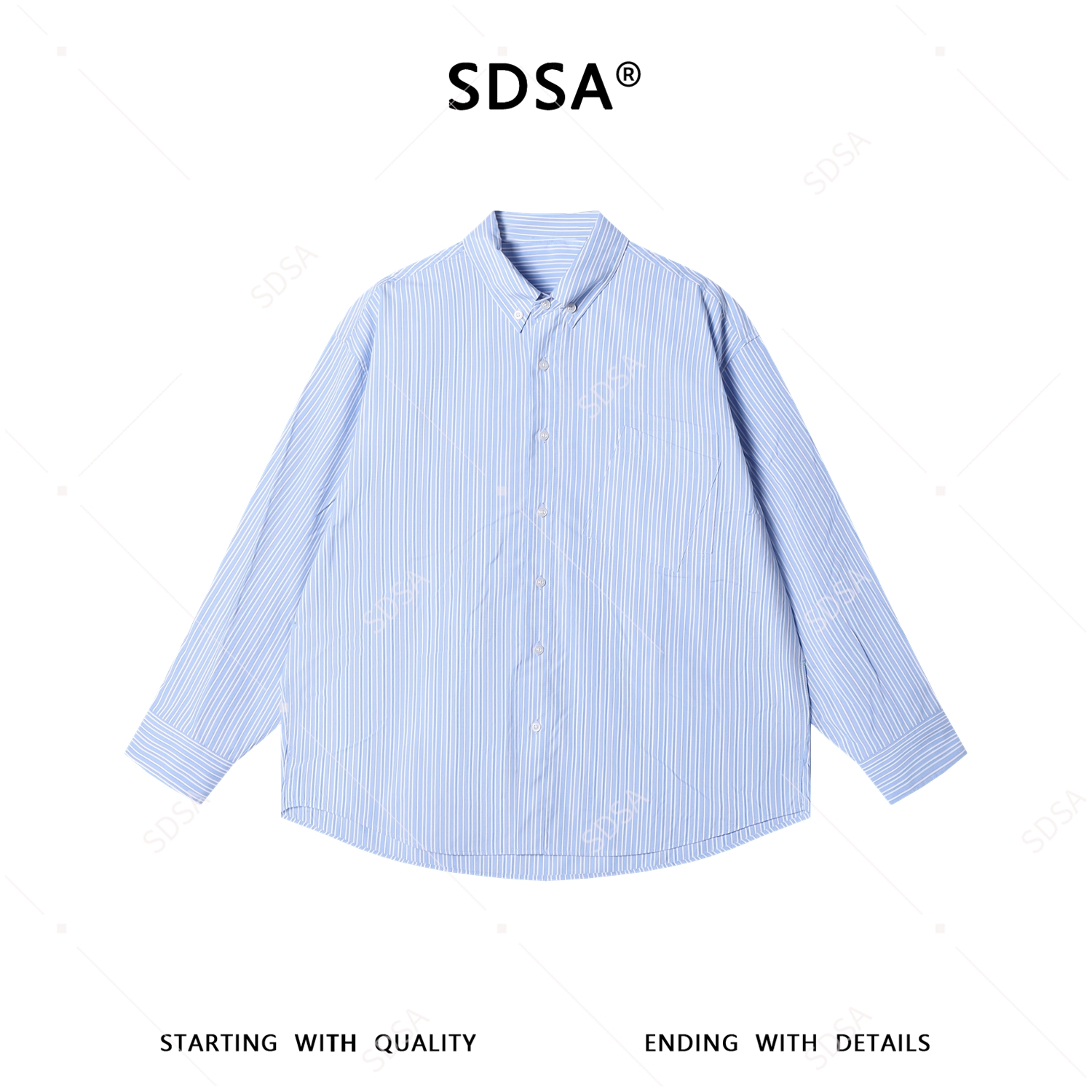 26C605SDSA男装2026新款蓝白竖条纹长袖衬衫立领宽松休闲百搭衬衣