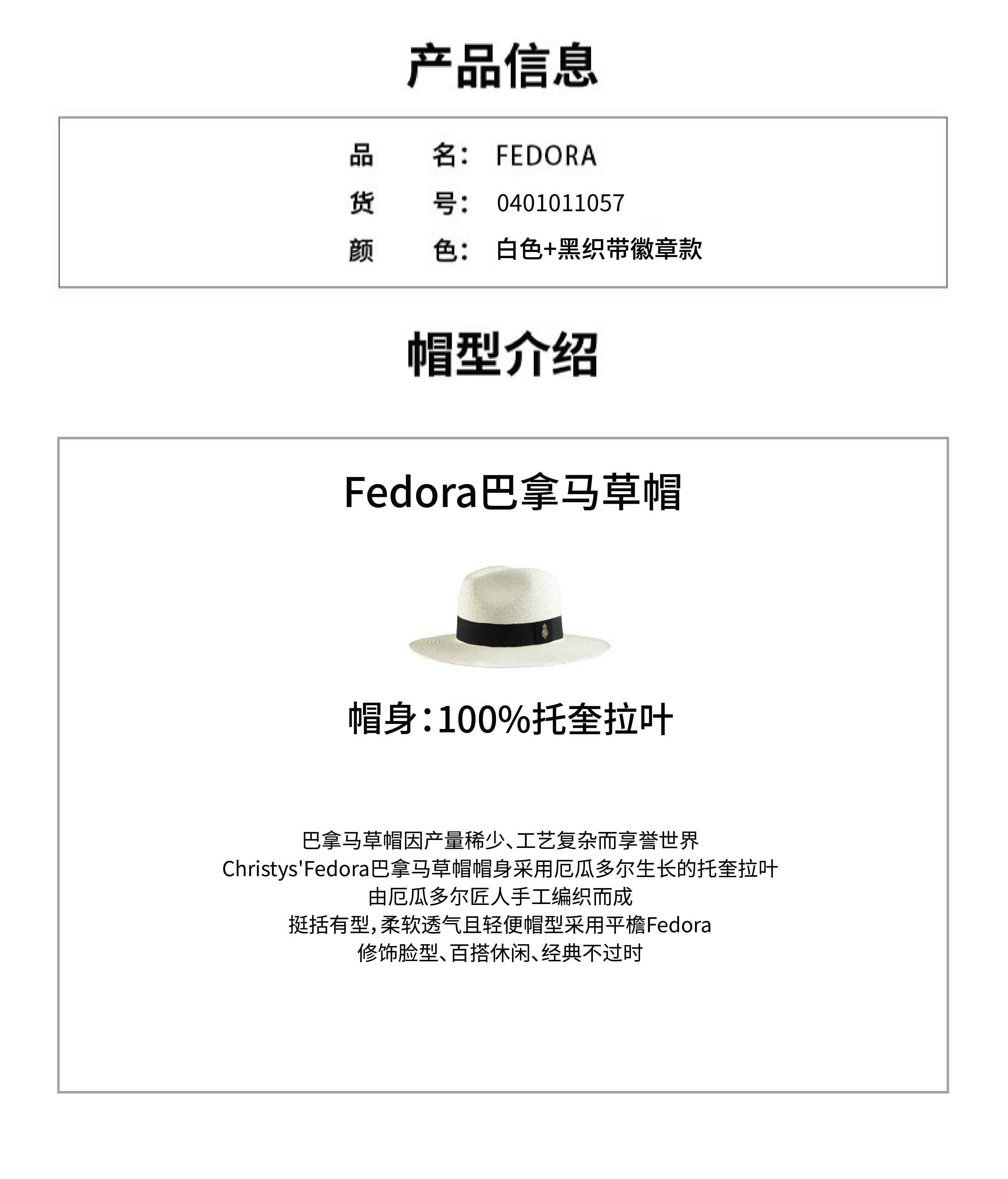 【于适同款】Christys' 百年皇室品牌 巴拿马Fedora草帽