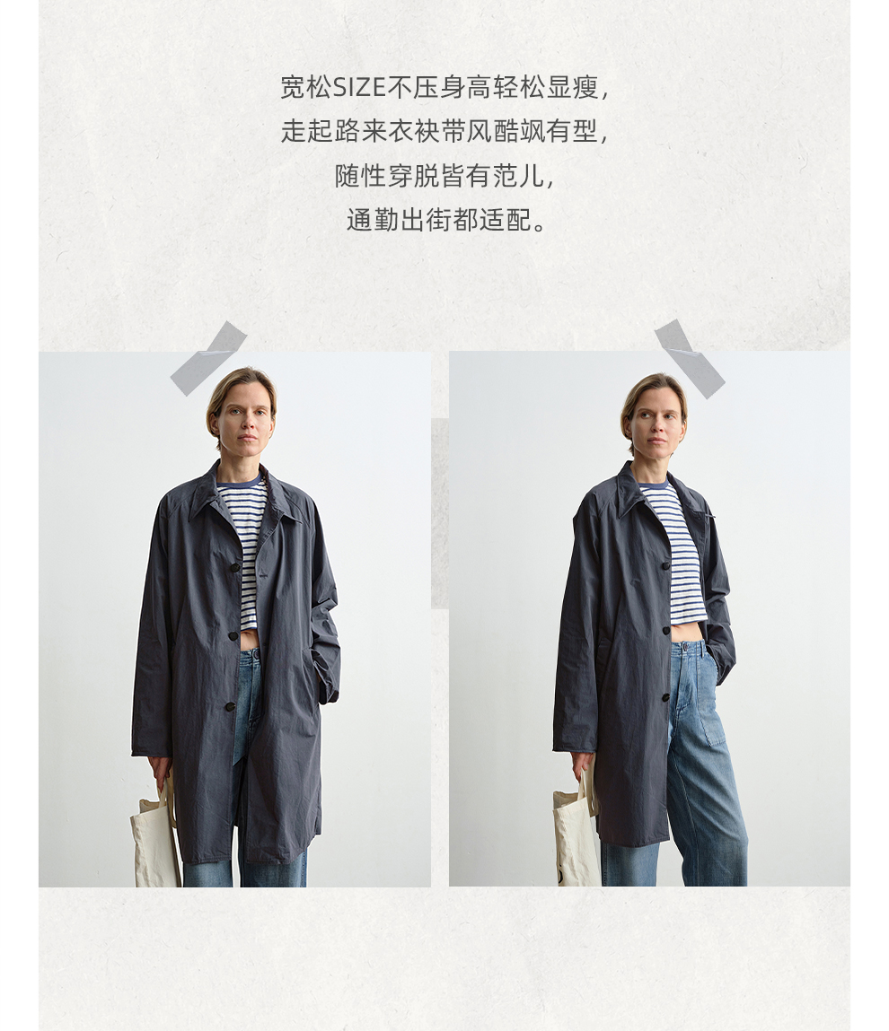 ROMI STUDIO“率性自我”高支纯棉轻薄宽松直筒风衣外套 RWCAWY4662