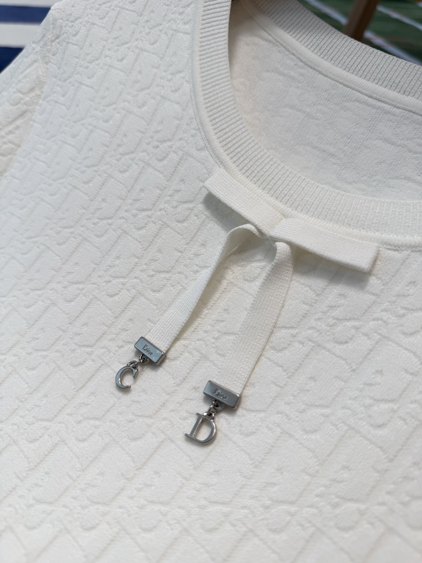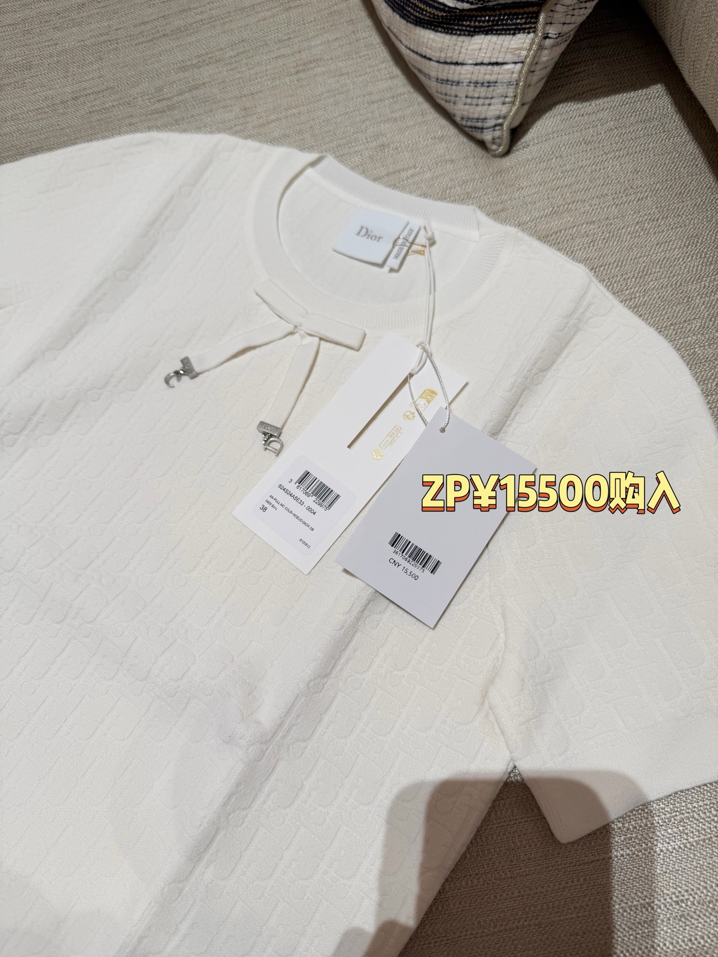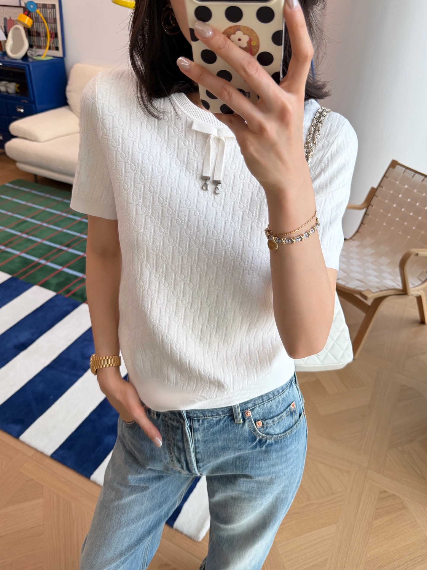 把法式优雅焊在身上‼️真的美到失语😭纯净奶白底色+暗纹老花提花,低调里藏着满格贵气☑️妥妥的白月光本光✨领口蝴蝶结+CD金属饰扣,品牌DNA直接拉满,细节控狂喜💫亲肤不闷汗,春夏穿清爽又高级✨随便穿穿都自带法式慵懒贵气感☺️衣柜里永远缺一件这种「穿一次被问一次」的百搭神衣💞码数SML
