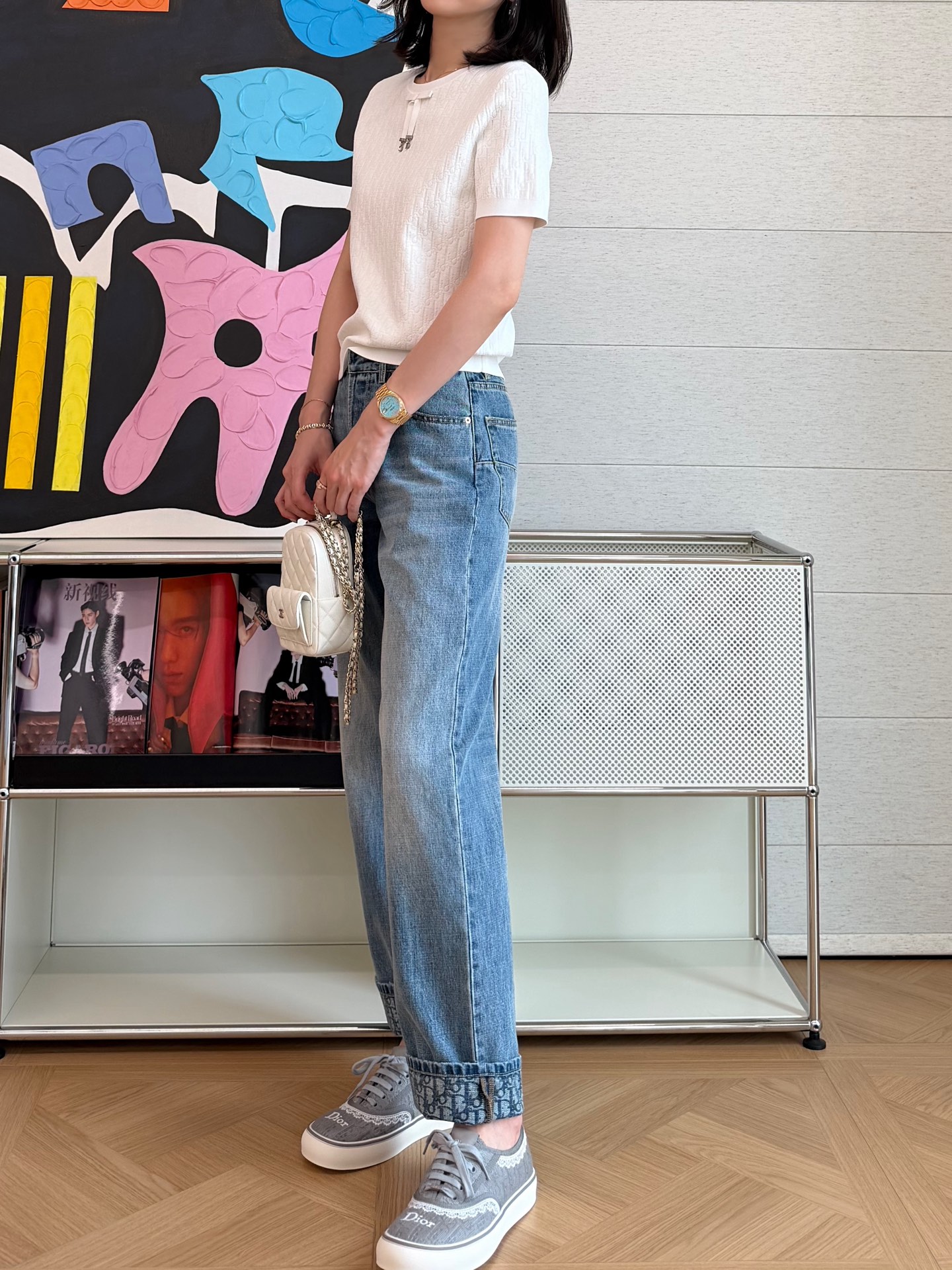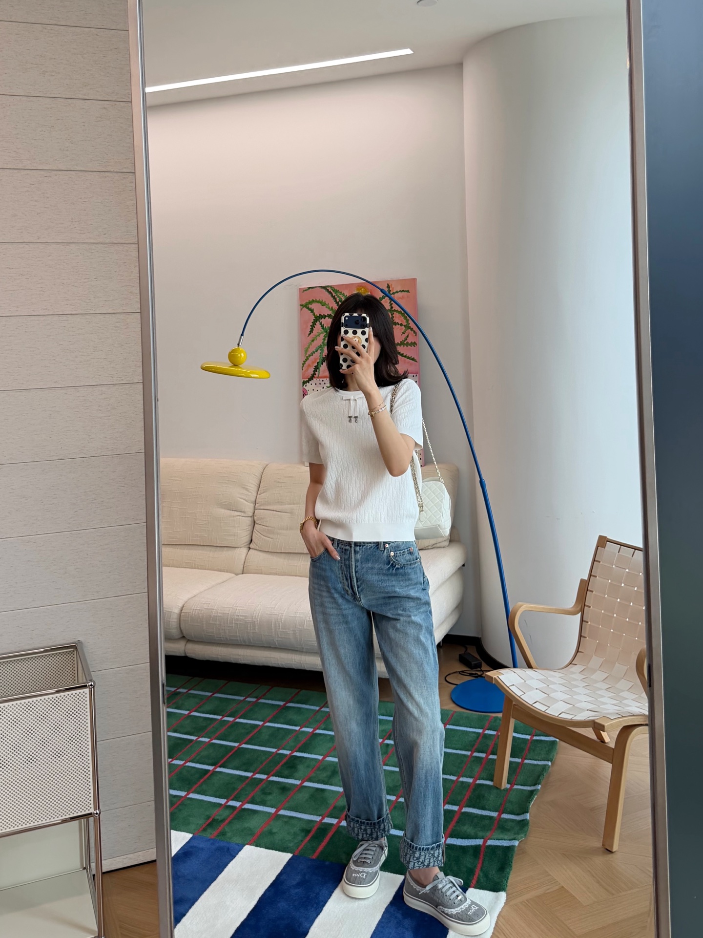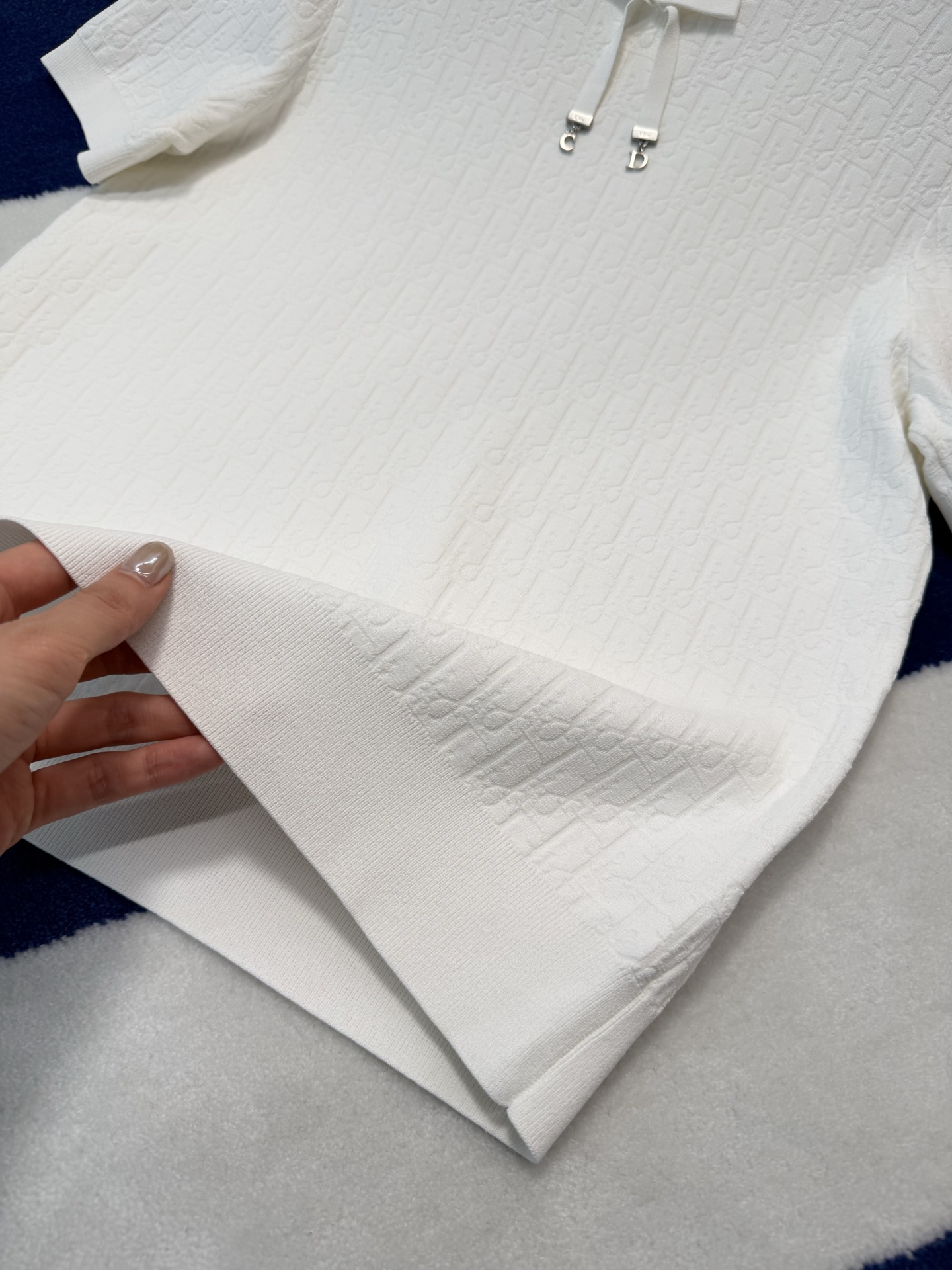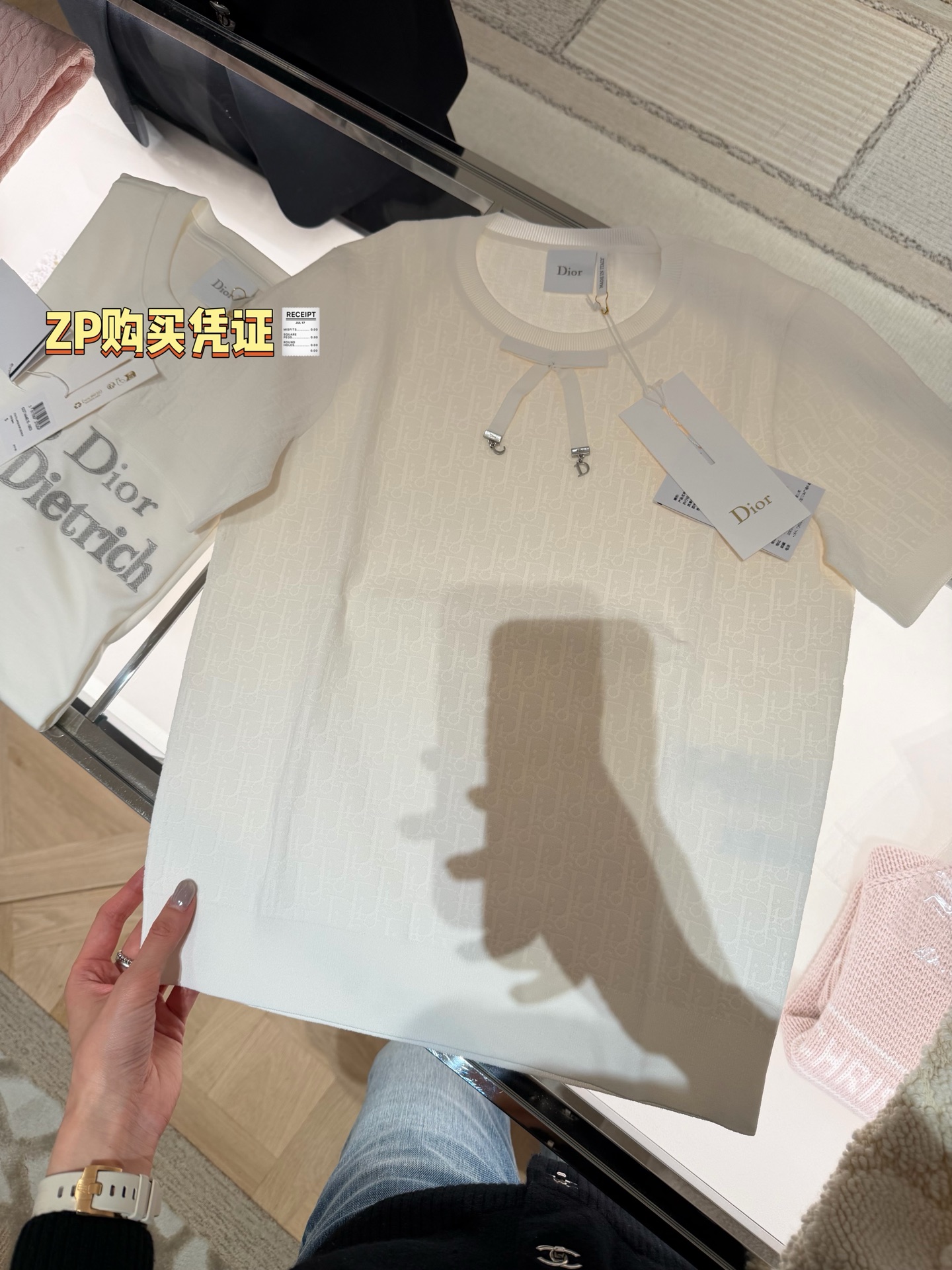 把法式优雅焊在身上‼️真的美到失语😭纯净奶白底色+暗纹老花提花,低调里藏着满格贵气☑️妥妥的白月光本光✨领口蝴蝶结+CD金属饰扣,品牌DNA直接拉满,细节控狂喜💫亲肤不闷汗,春夏穿清爽又高级✨随便穿穿都自带法式慵懒贵气感☺️衣柜里永远缺一件这种「穿一次被问一次」的百搭神衣💞码数SML