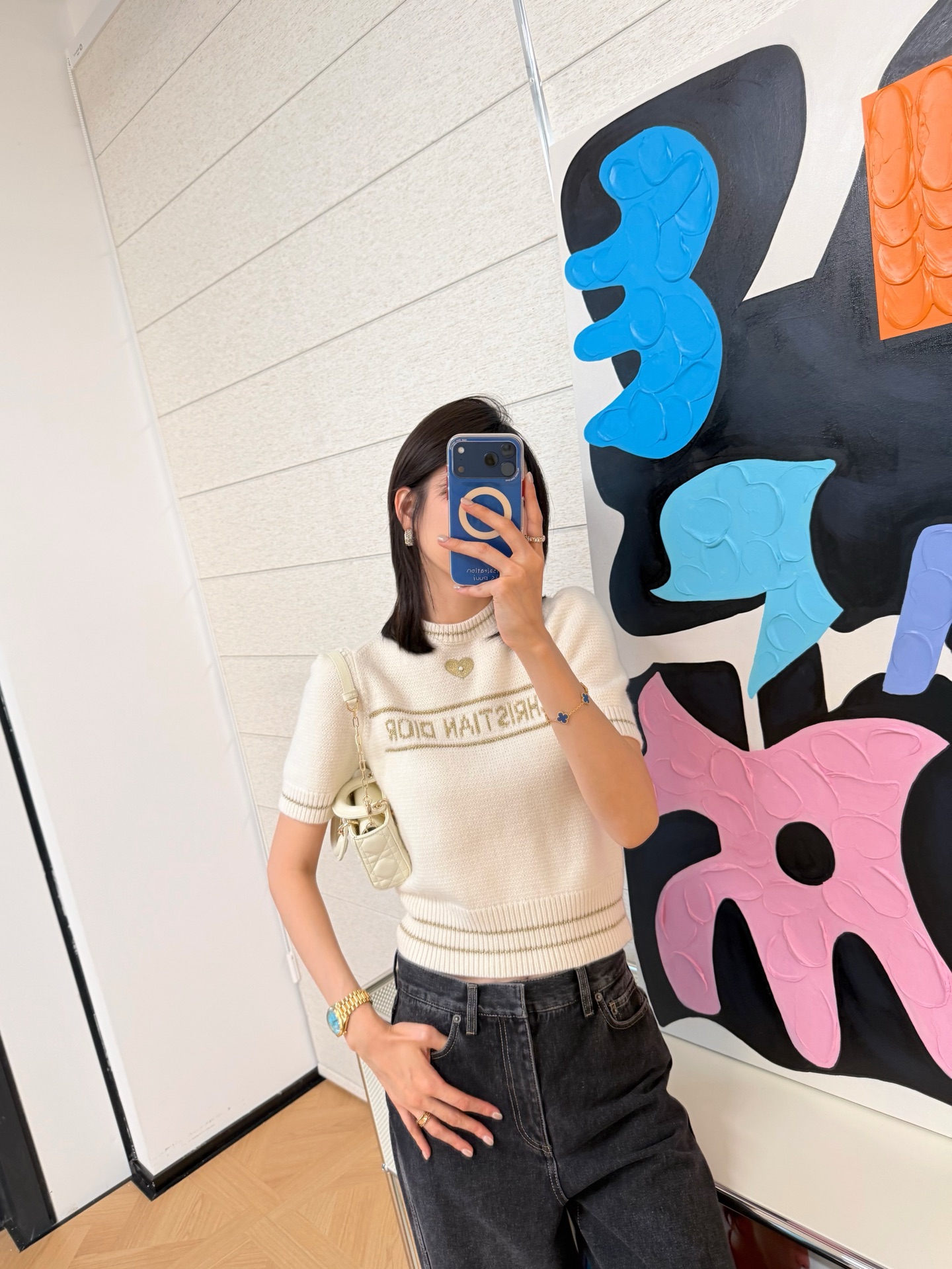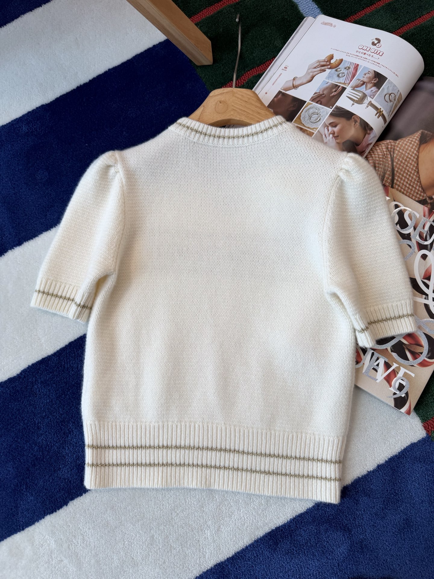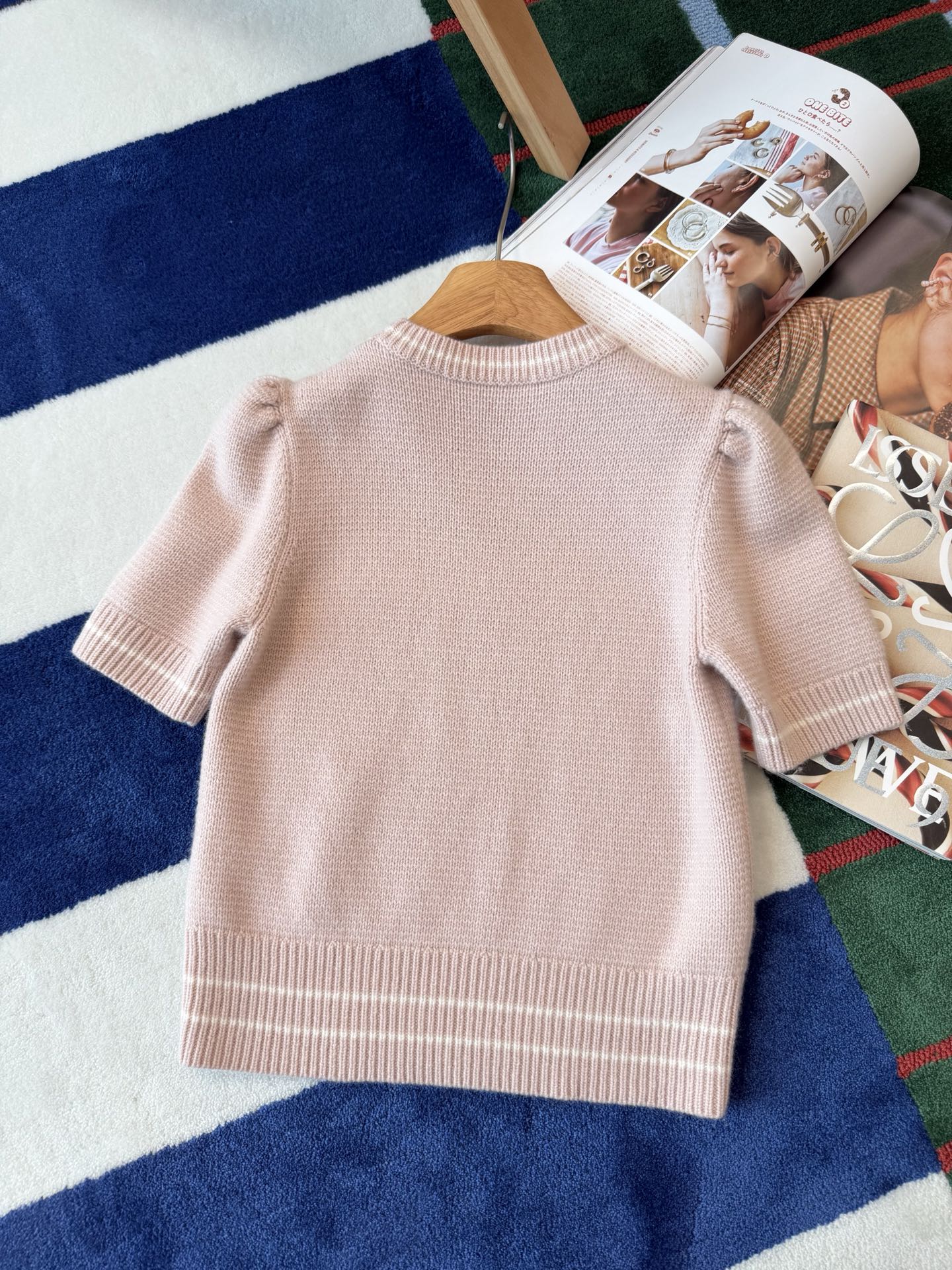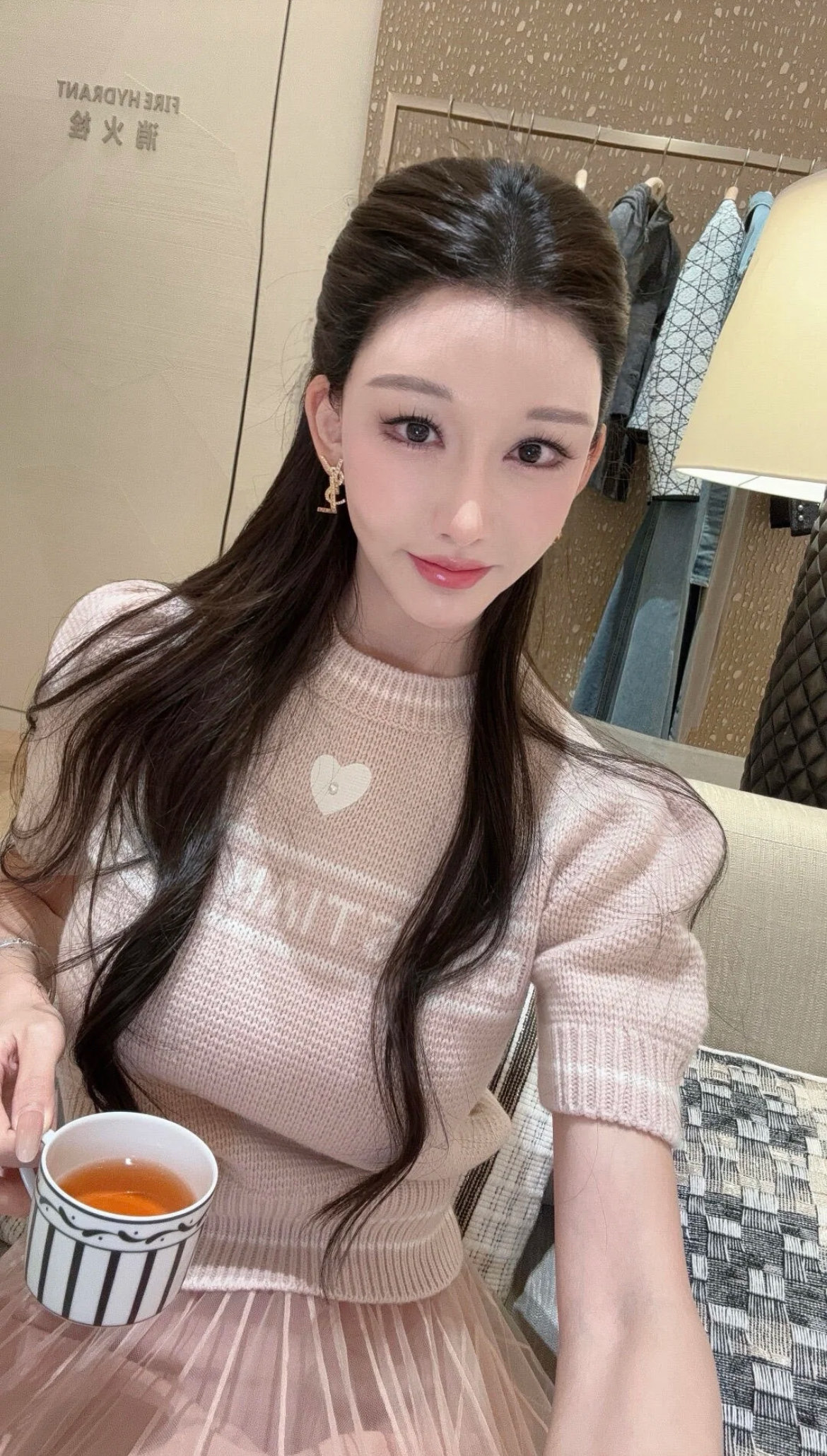 新款🆕珍珠短袖针织上衣,真的值得入手, 结合优雅气质与现代风范,采用羊毛羊绒混纺纱线精心制作〰️ 经特殊洗水后具有柔软触感,珍珠点缀心形刺绣➕公主泡泡袖,真的好温柔好仙气,这件针织强推,真的放心买,减龄天花板,高级感十足,贵气拉满,怎么穿搭都不会出错的万能百搭款✔️谁穿谁是富家千金💕粉/白两个色,码数SML