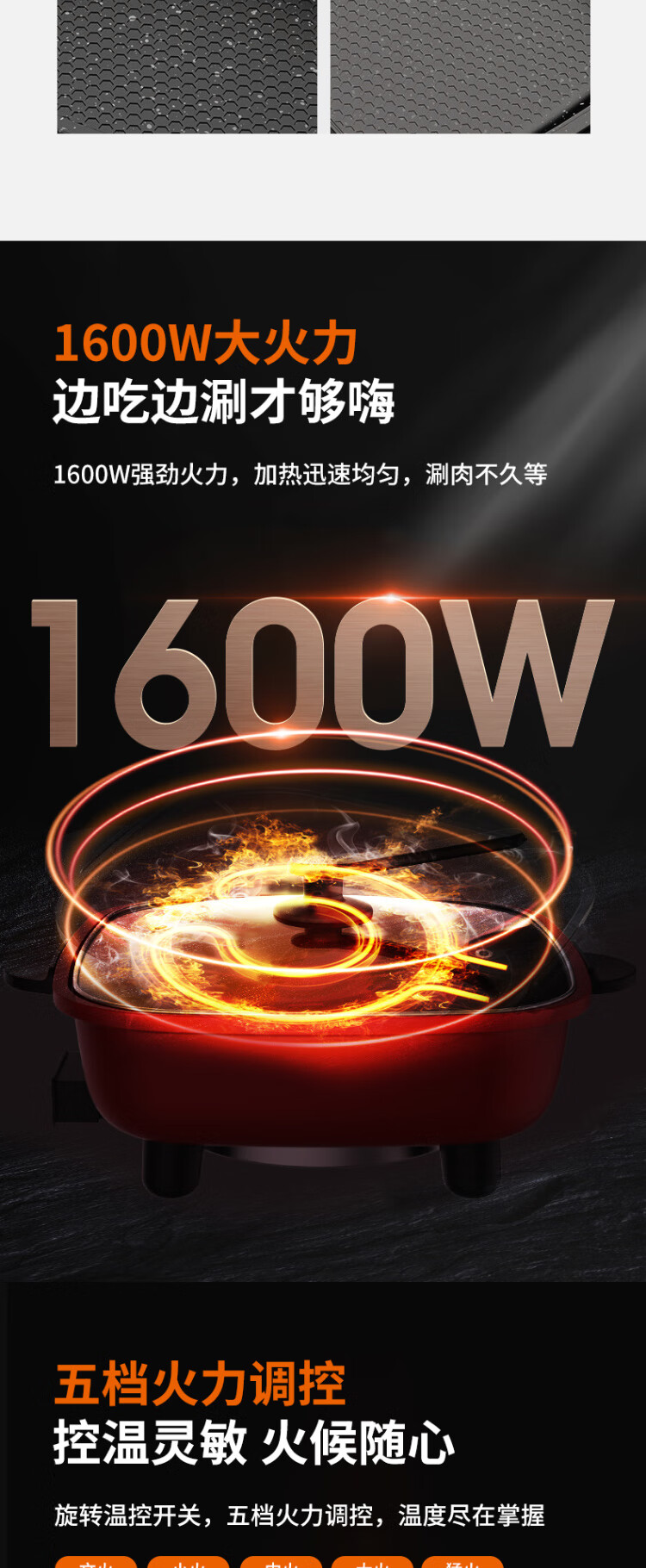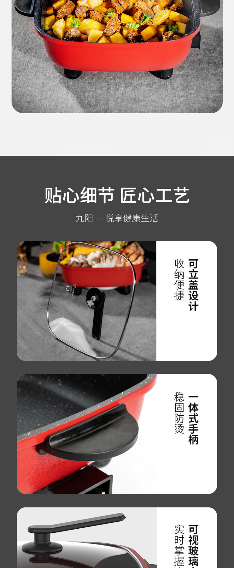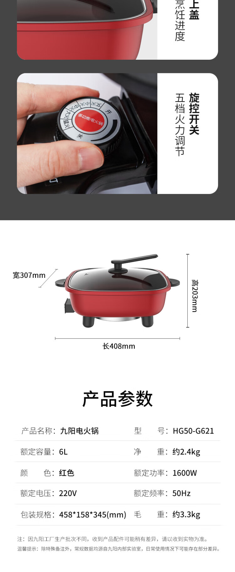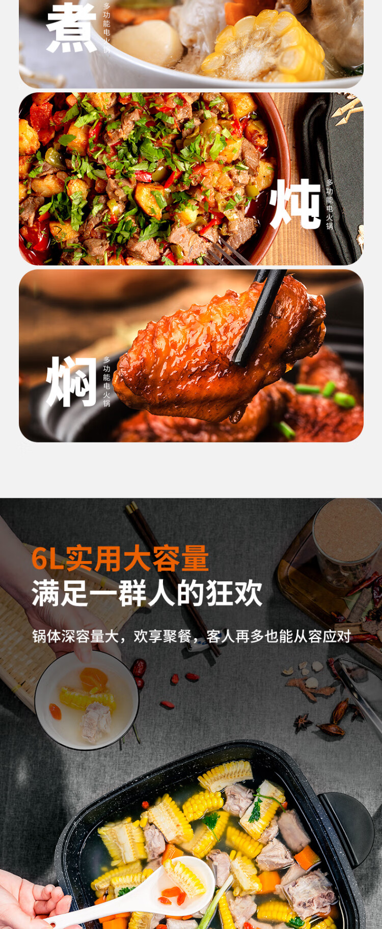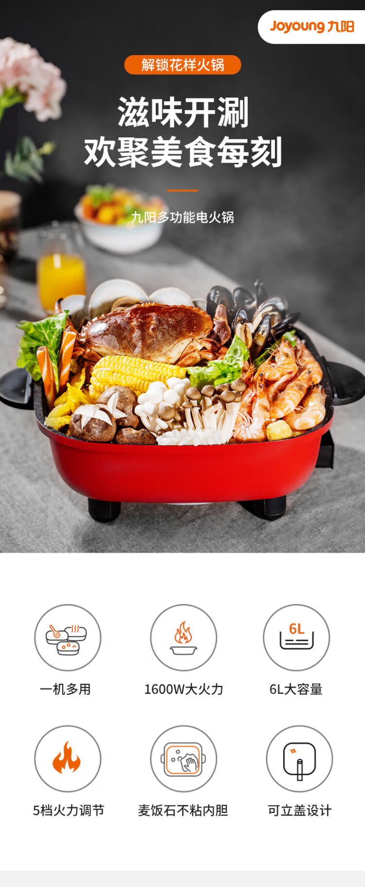 九阳(Joyoung)ZMD安心系列 电火锅 家用多功能电炒锅 电热锅 6L大容量HG50-G621