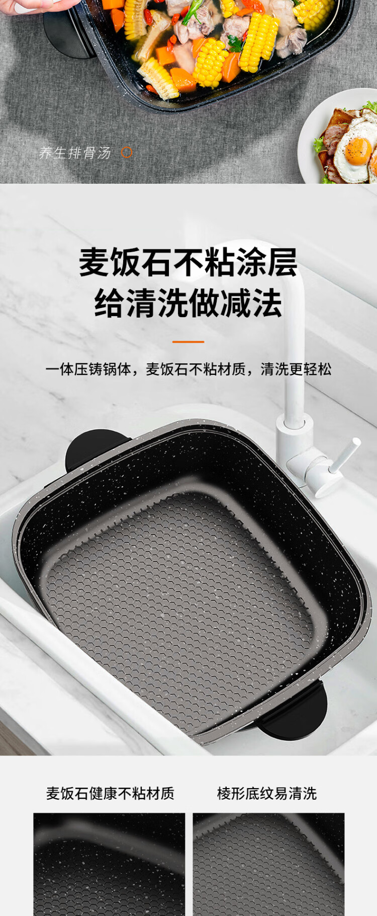 三禾锅具Beautyouth小清新不粘锅汤锅双耳炖锅电磁炉通用家用燃气方锅炖锅 LT2020E1