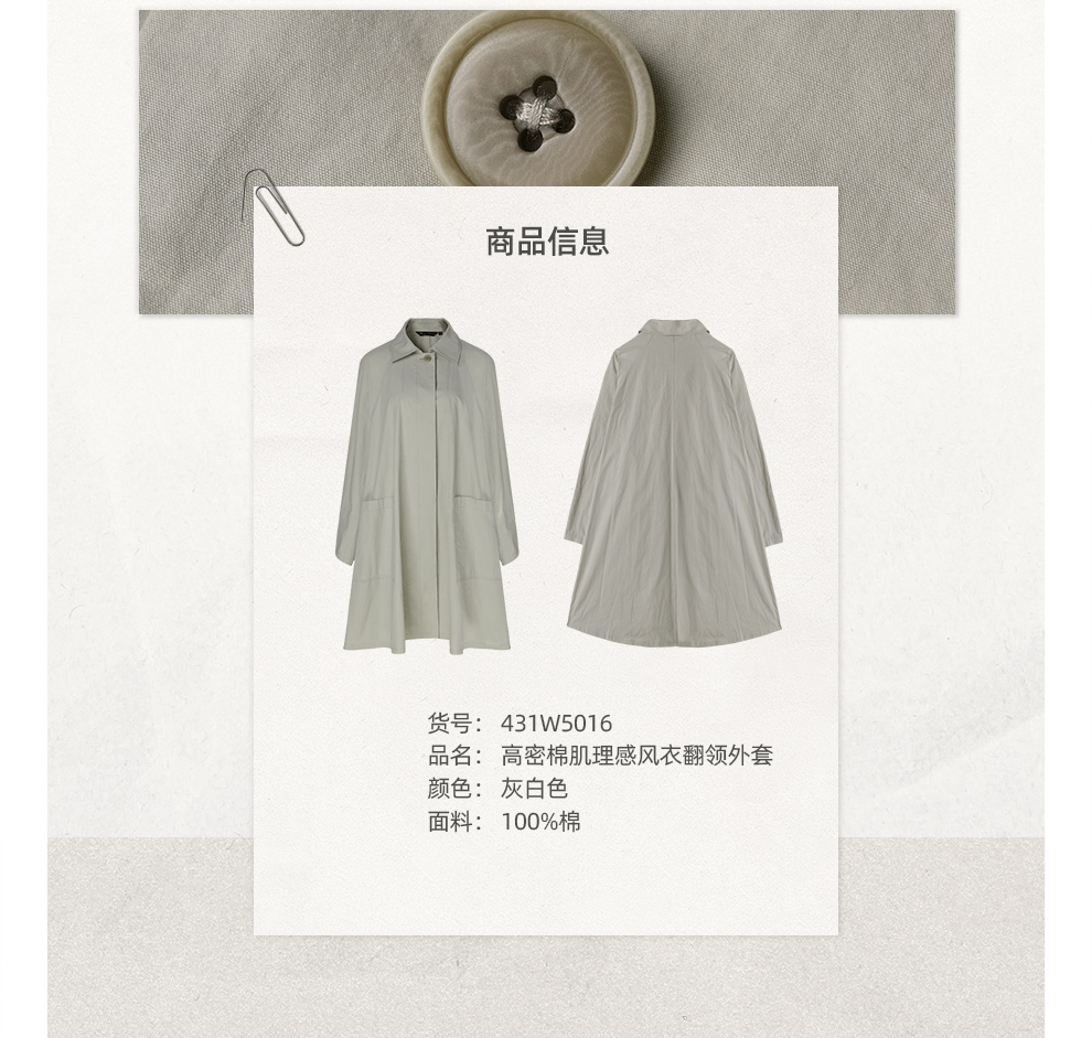 ROMI STUDIO“张弛有度”轻量化100%高密棉肌理感风衣外套 431W5016