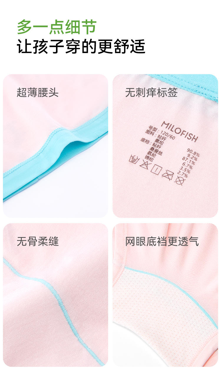【产品名称】米乐鱼儿童竹缎空气裤3条装M4S-PN015A/16A/20A