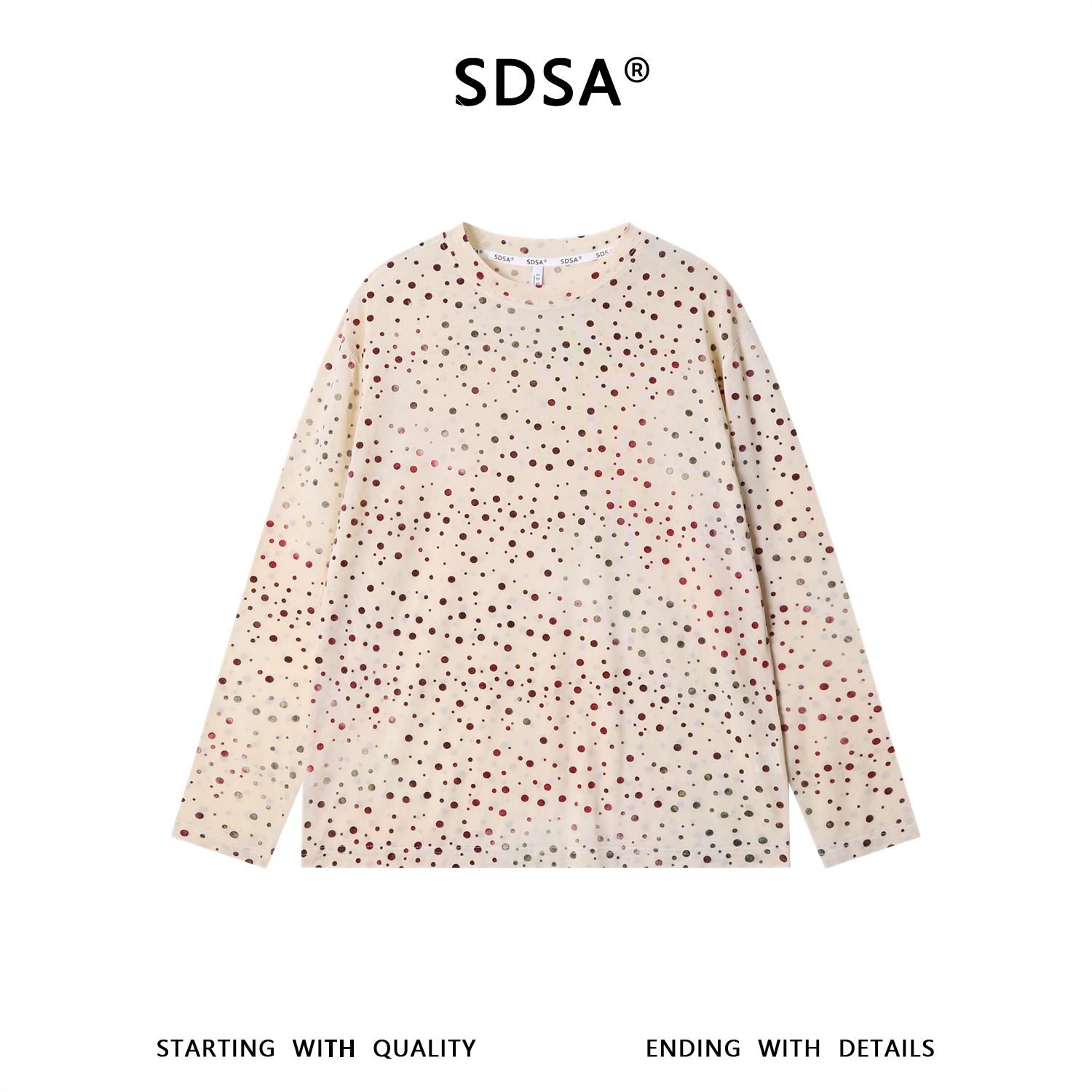 SDSA男装2026新款高贵轻奢时尚百搭植绒波点圆领长袖T恤时尚上衣