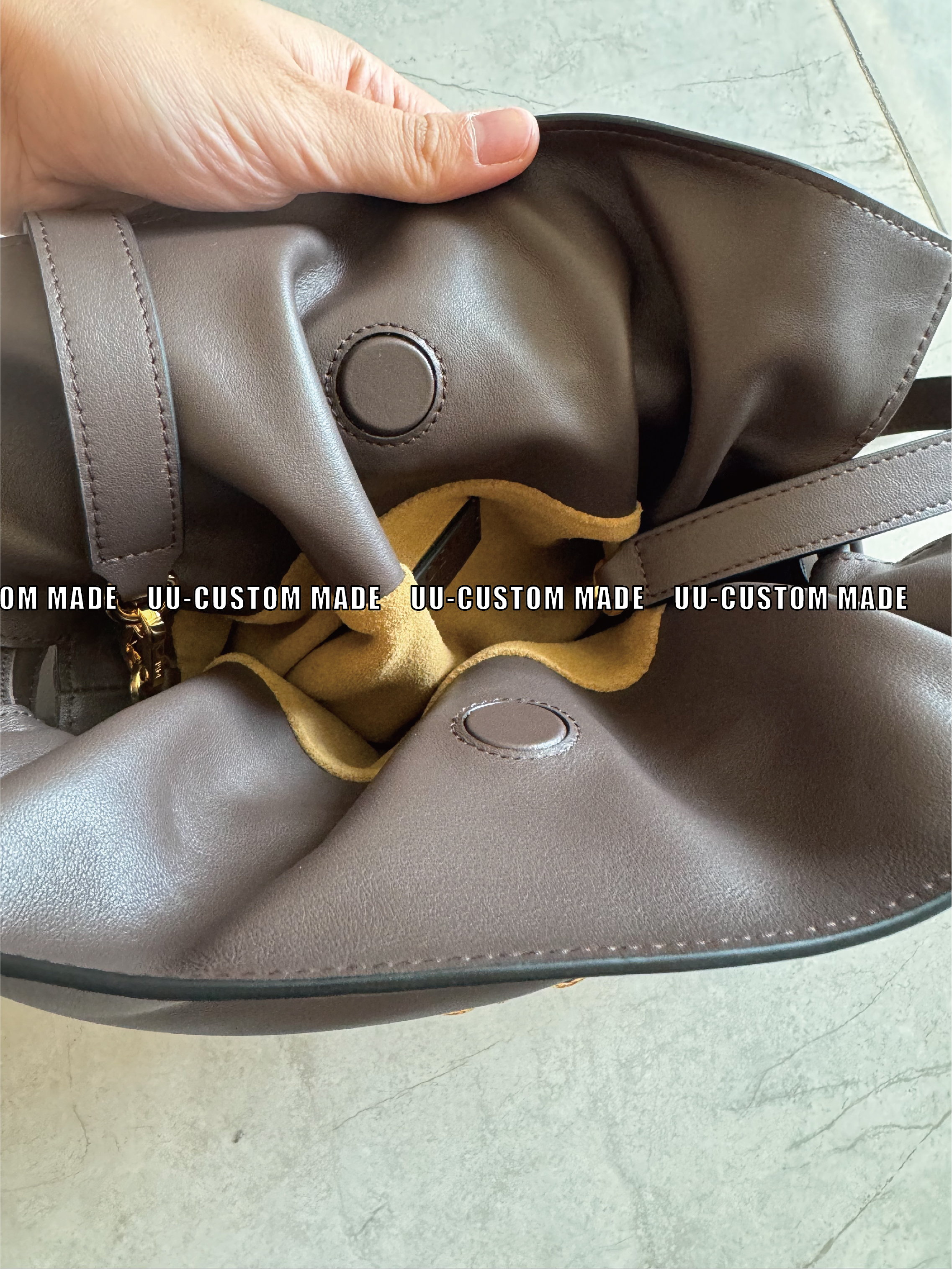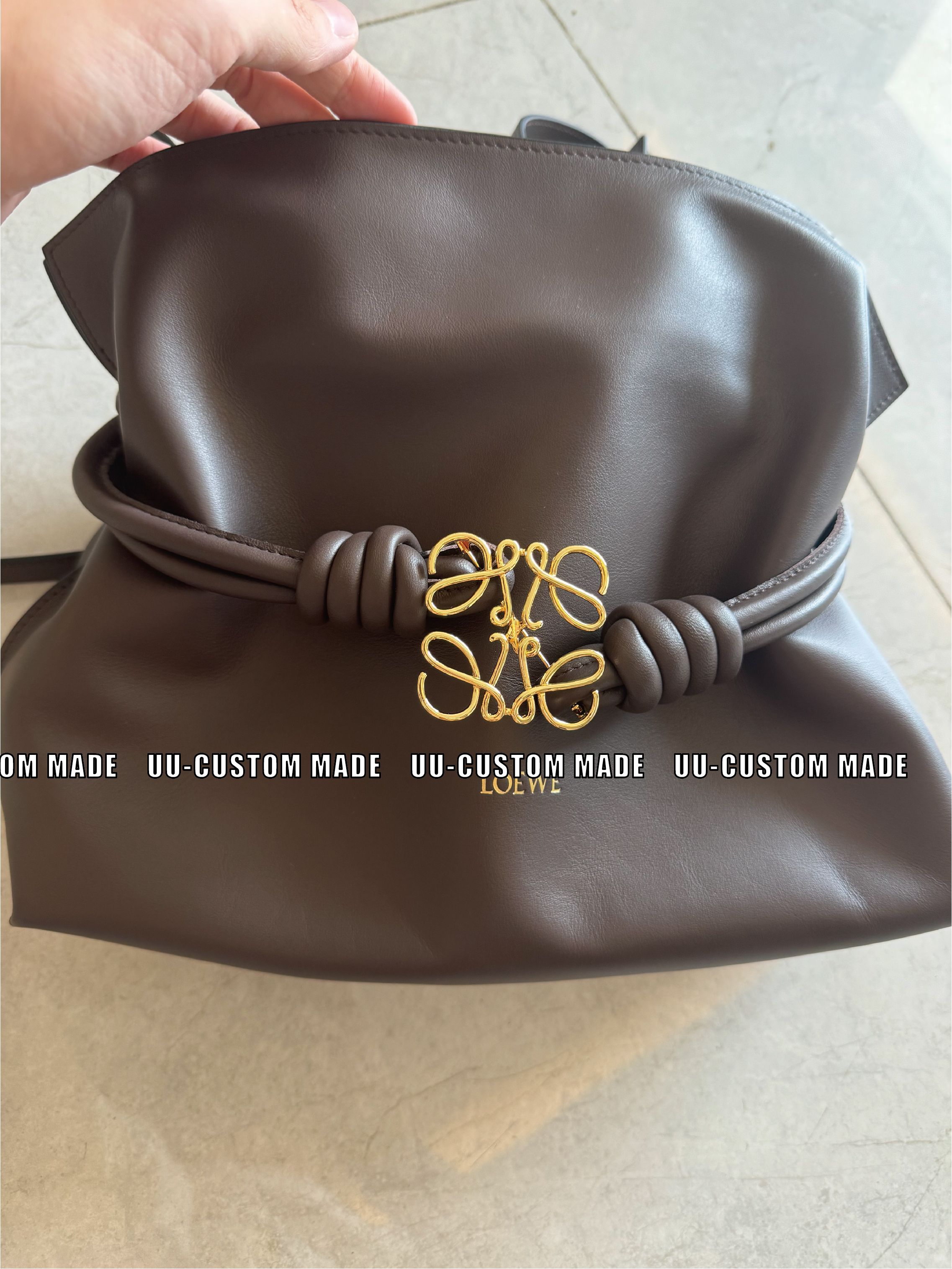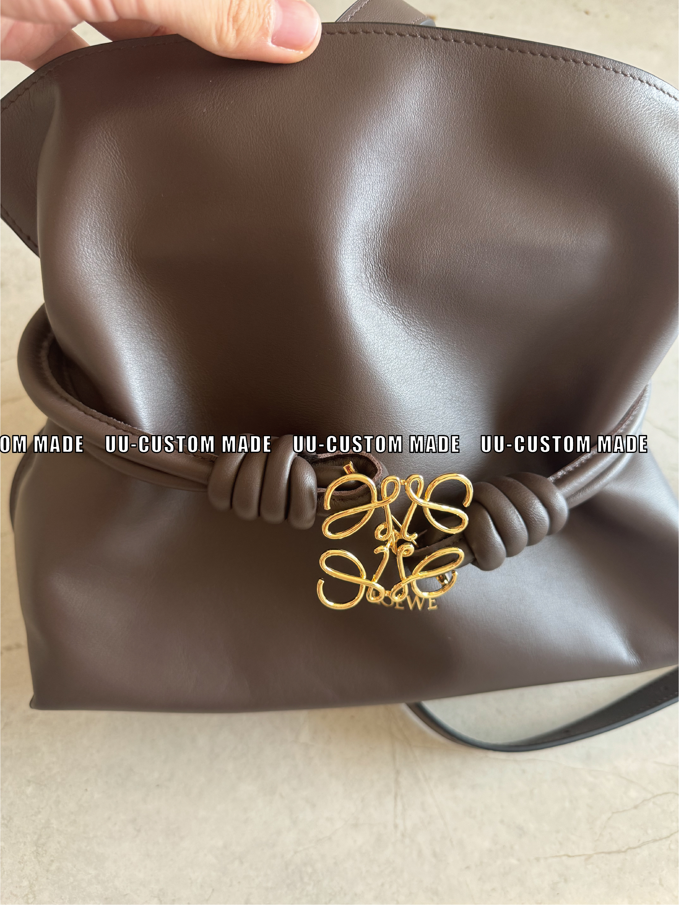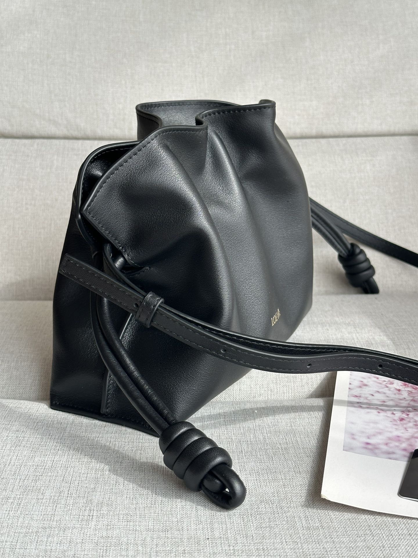 十九世纪七十年代发布的 Flamenco 手拿包,采用拉绳收紧,并打上标志性的盘绕结。此迷你版本采用纳帕牛皮革制成。可肩背、斜挎或手提,可拆卸可调整肩带,低调的磁扣开合,金色绒面革衬里。