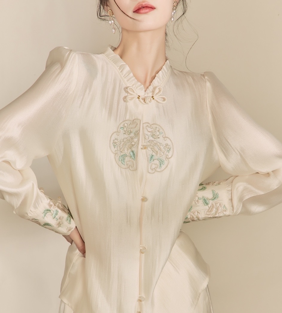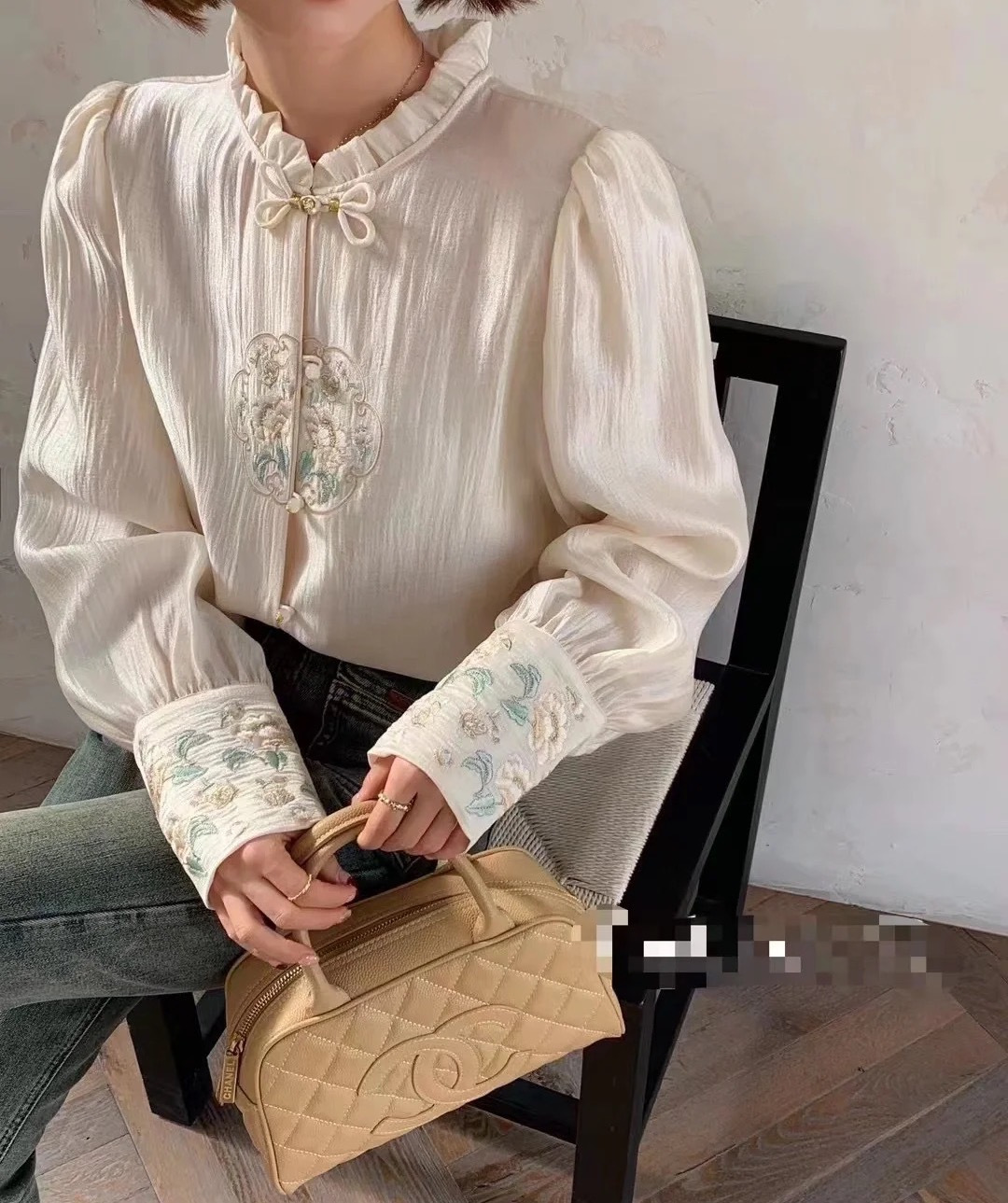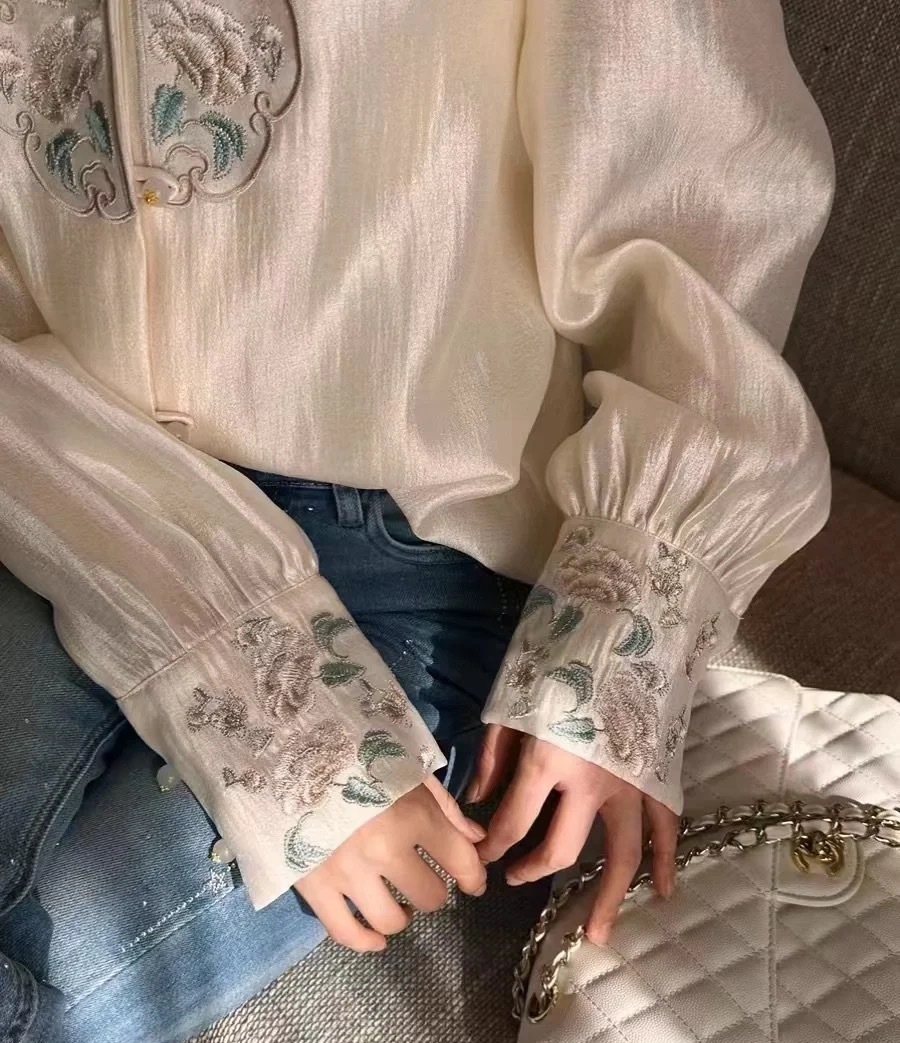 早春🍀穿搭-重工刺绣金丝花花立领复古小上衣✅金丝提花 细节满分💯 乍现玲珑态,凭添妩媚娇题 皎皎兮似轻云之蔽月,飘飘兮若回风之流雪。