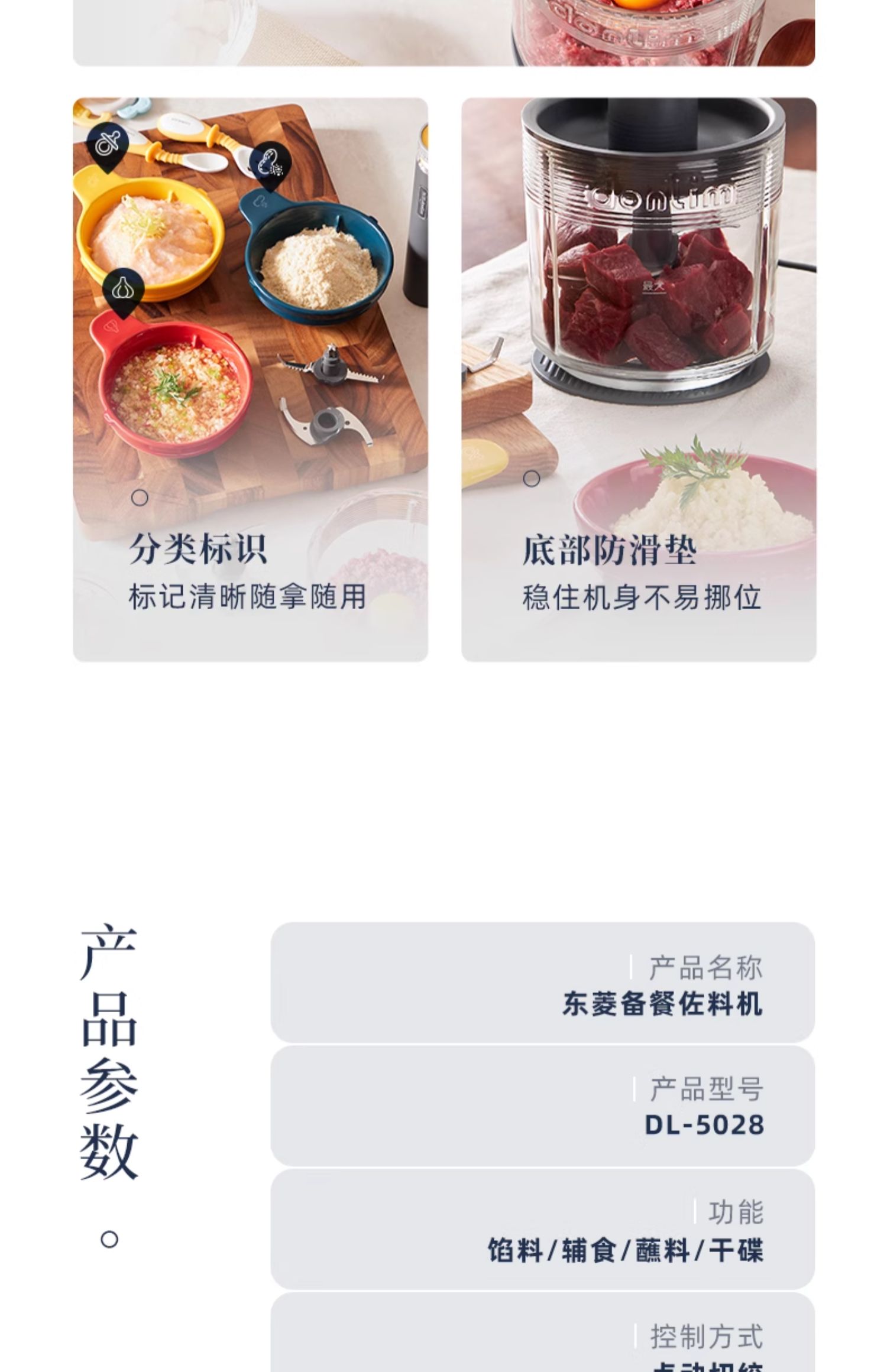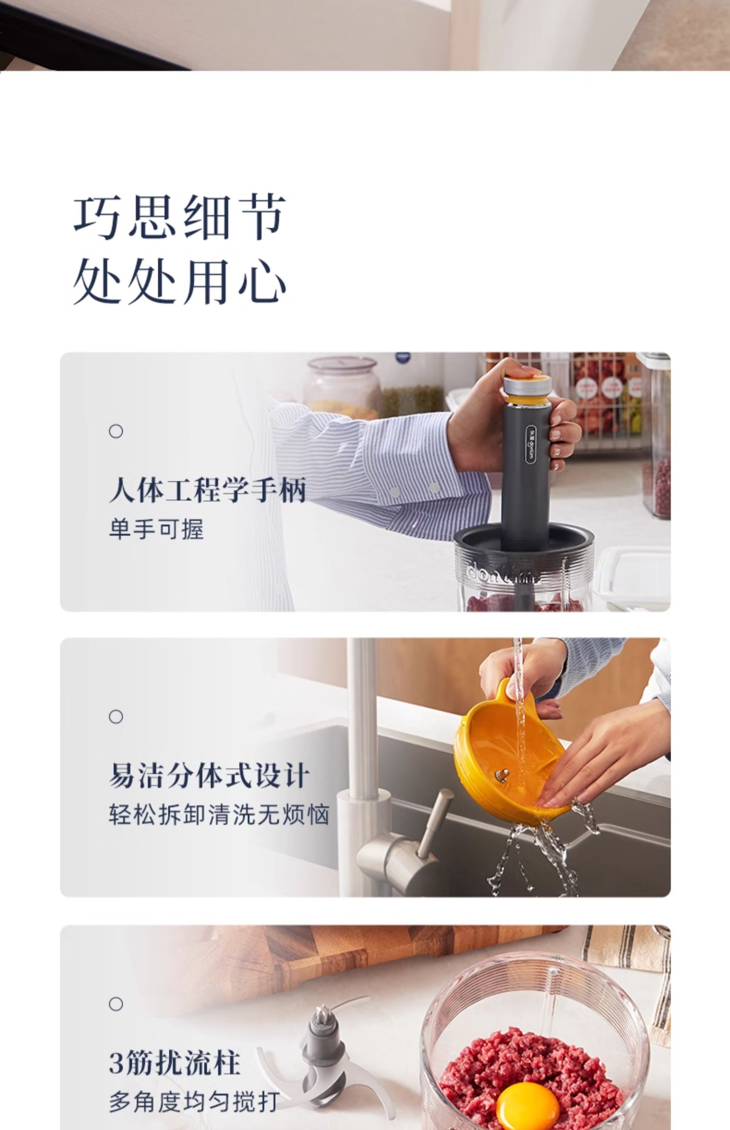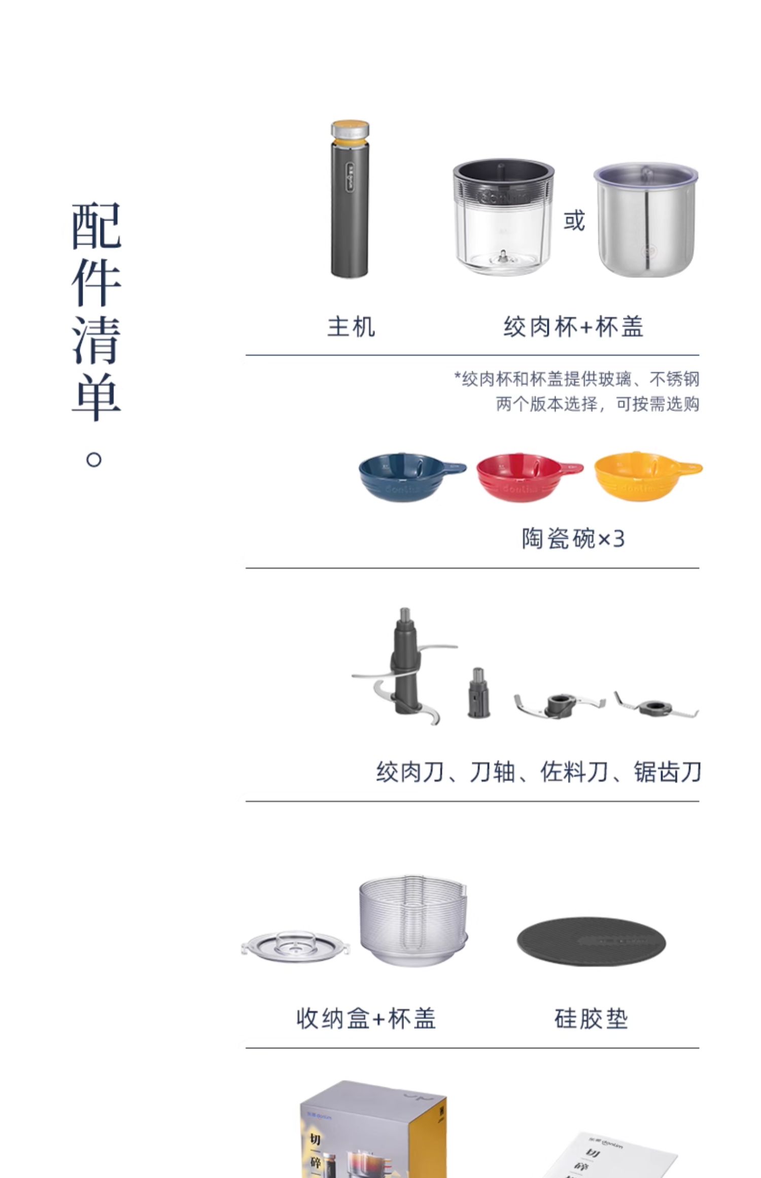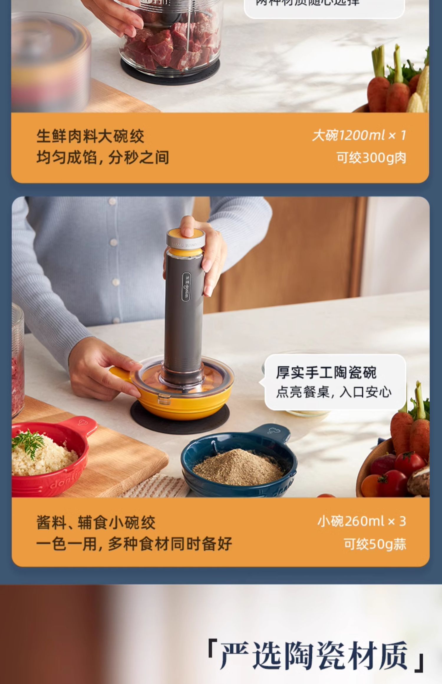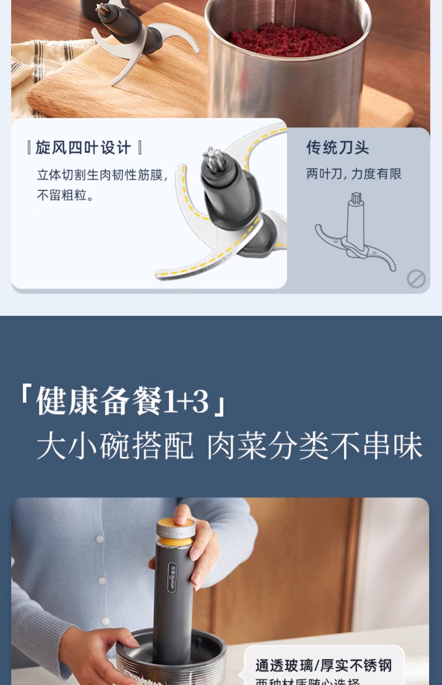 东菱绞肉机多功能家用电动小型料理机辅食绞菜碎肉搅拌机佐料机 钛金灰(玻璃碗款-)5028