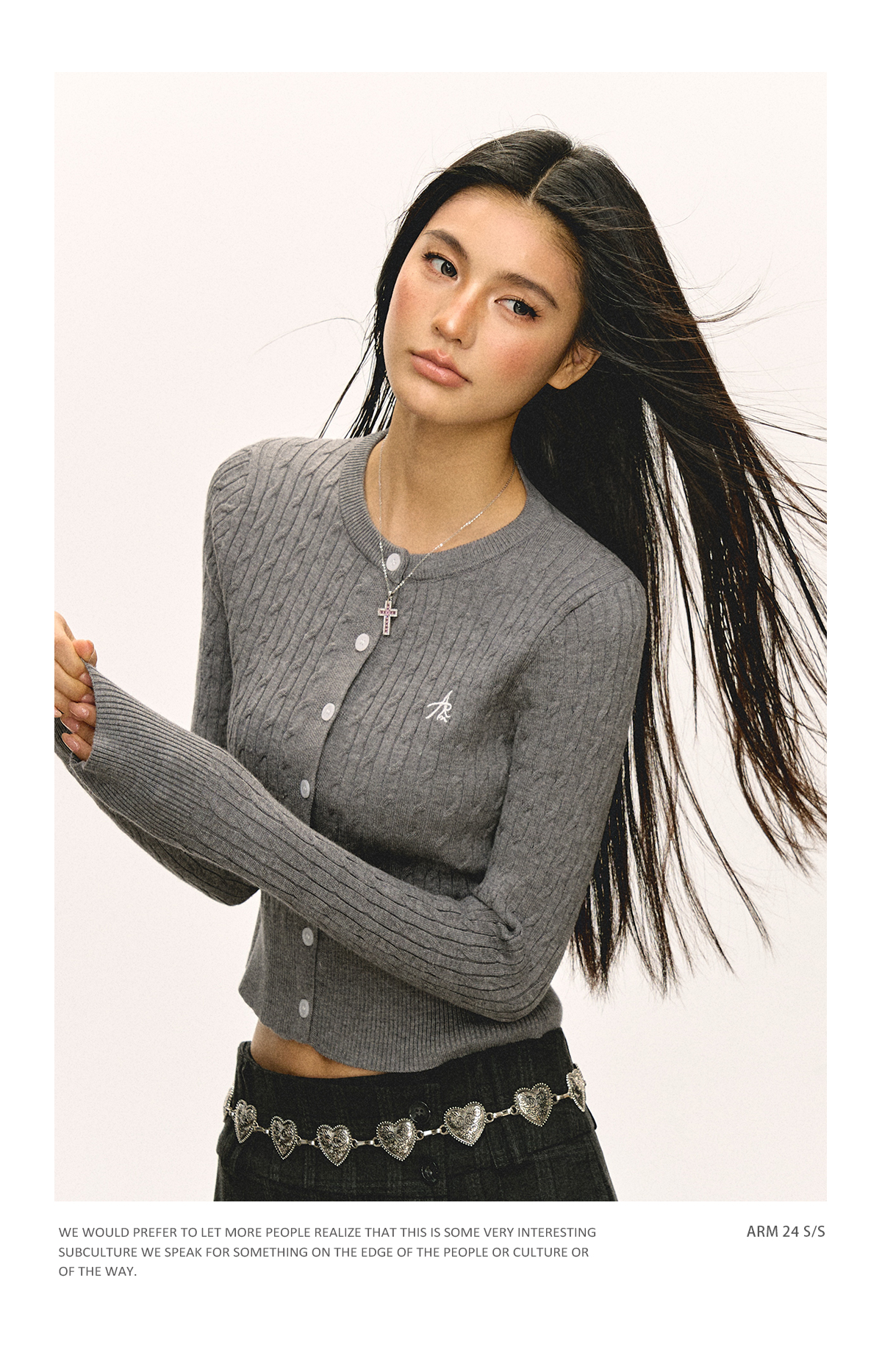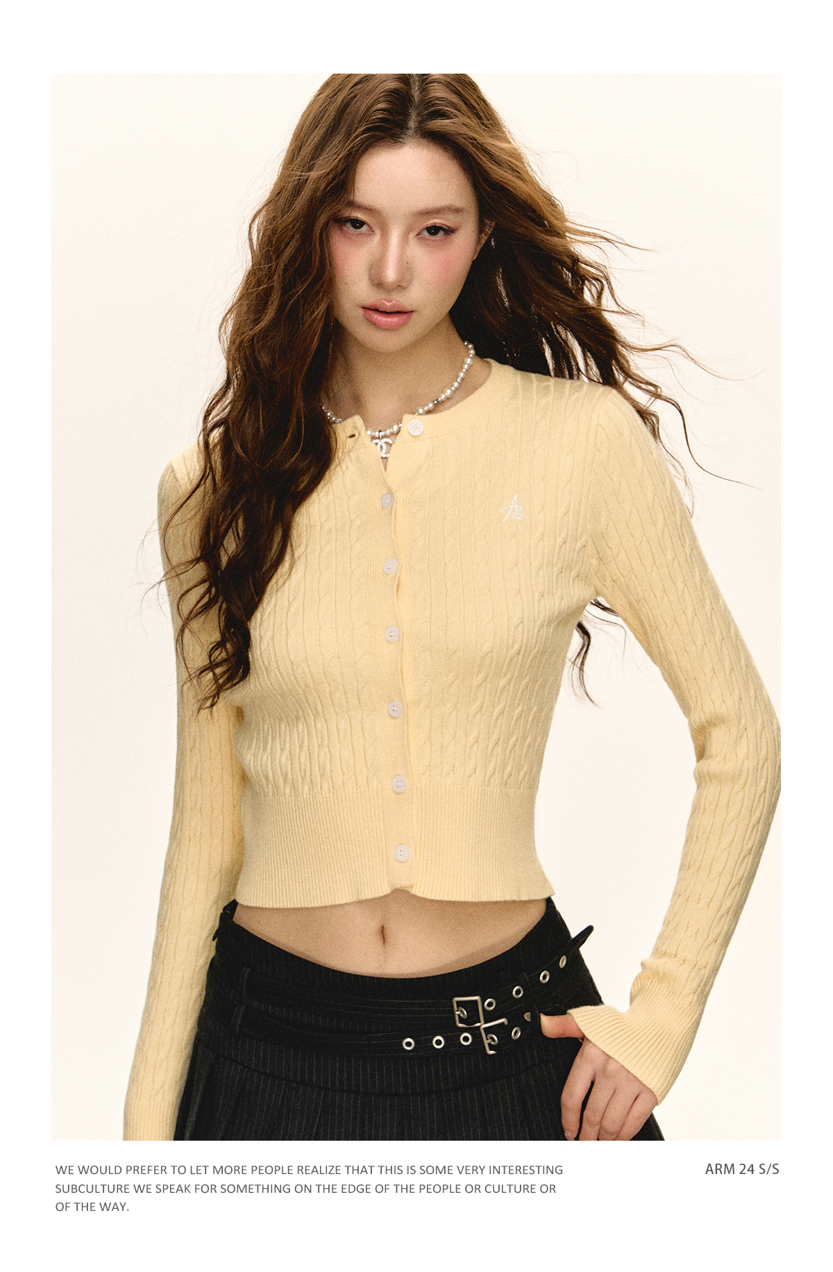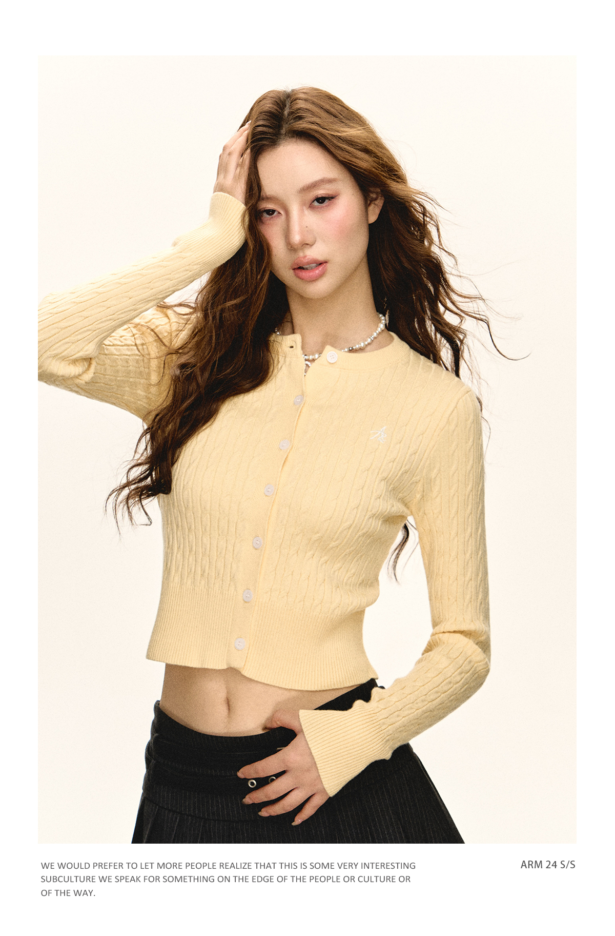 Ariseism 美式复古设计感修身露肩针织开衫女春季新款修身上衣
