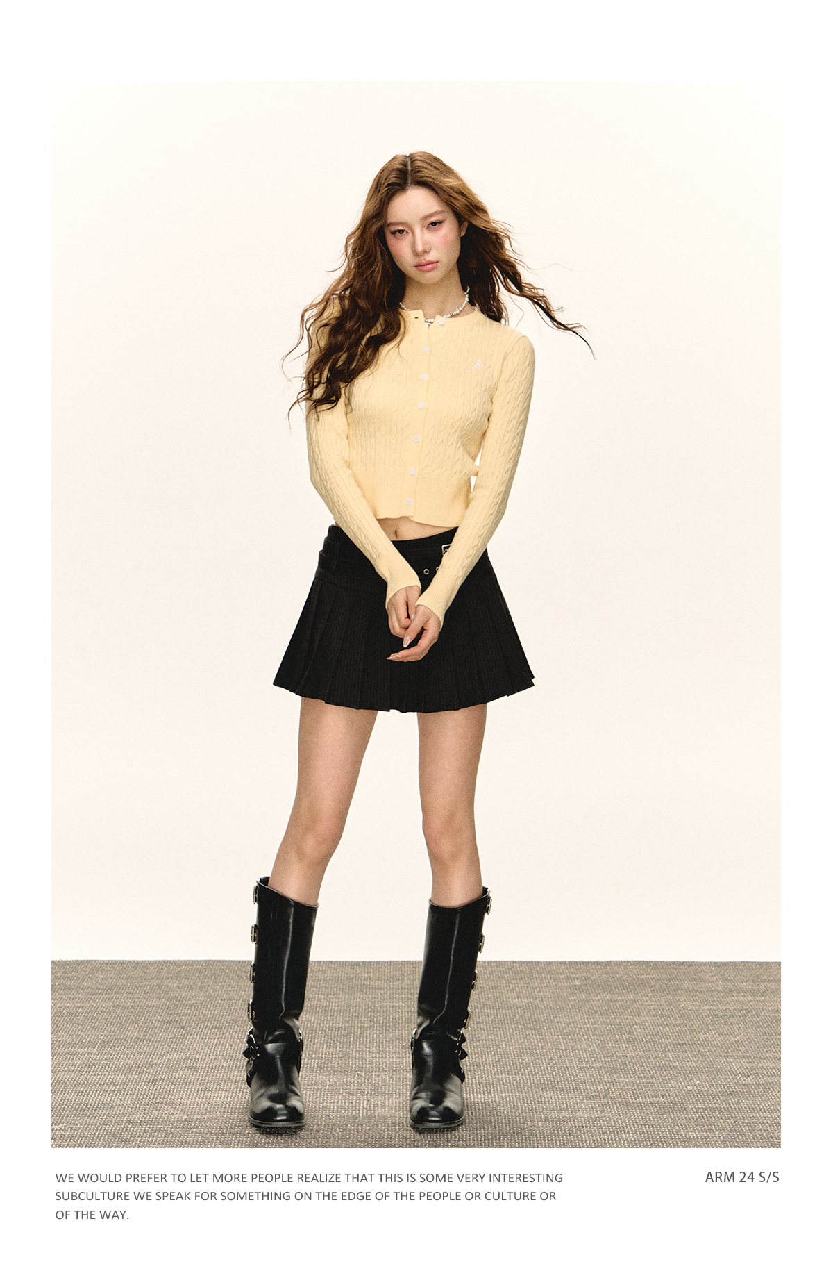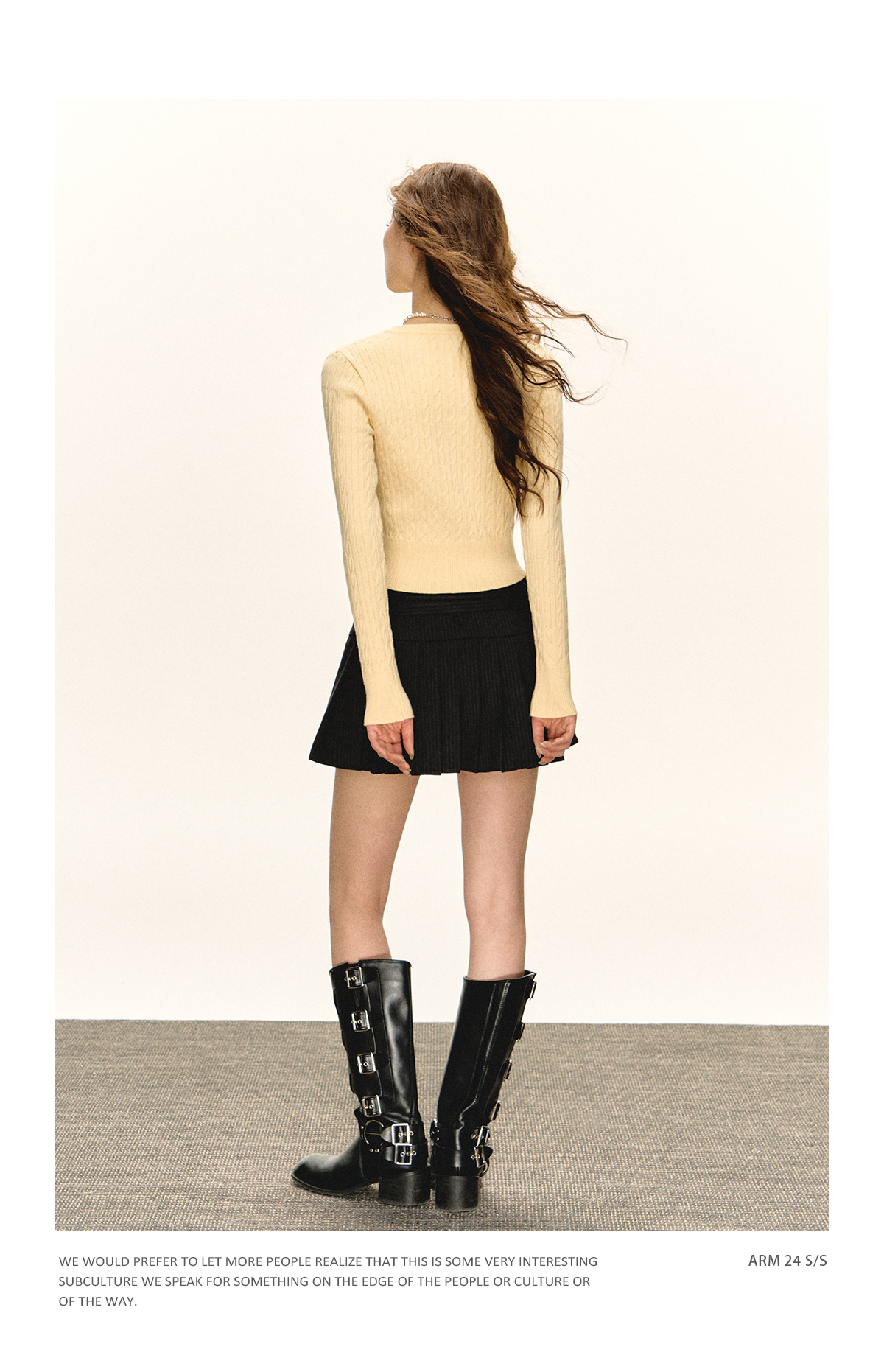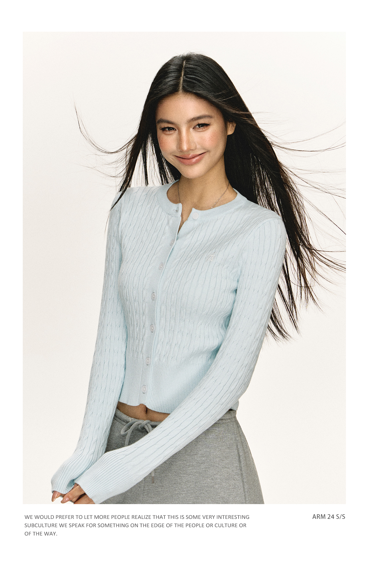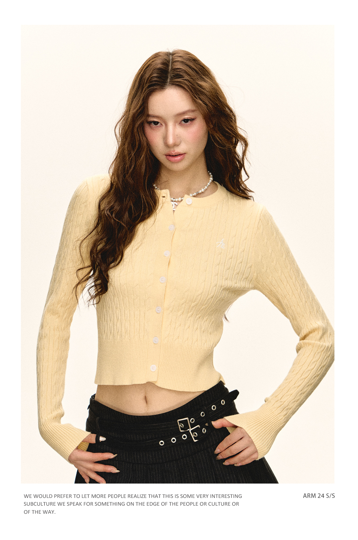 Ariseism 美式复古设计感修身露肩针织开衫女春季新款修身上衣