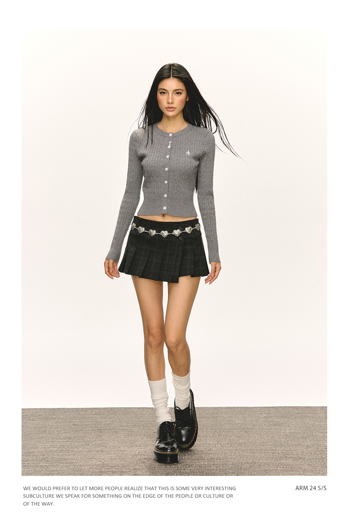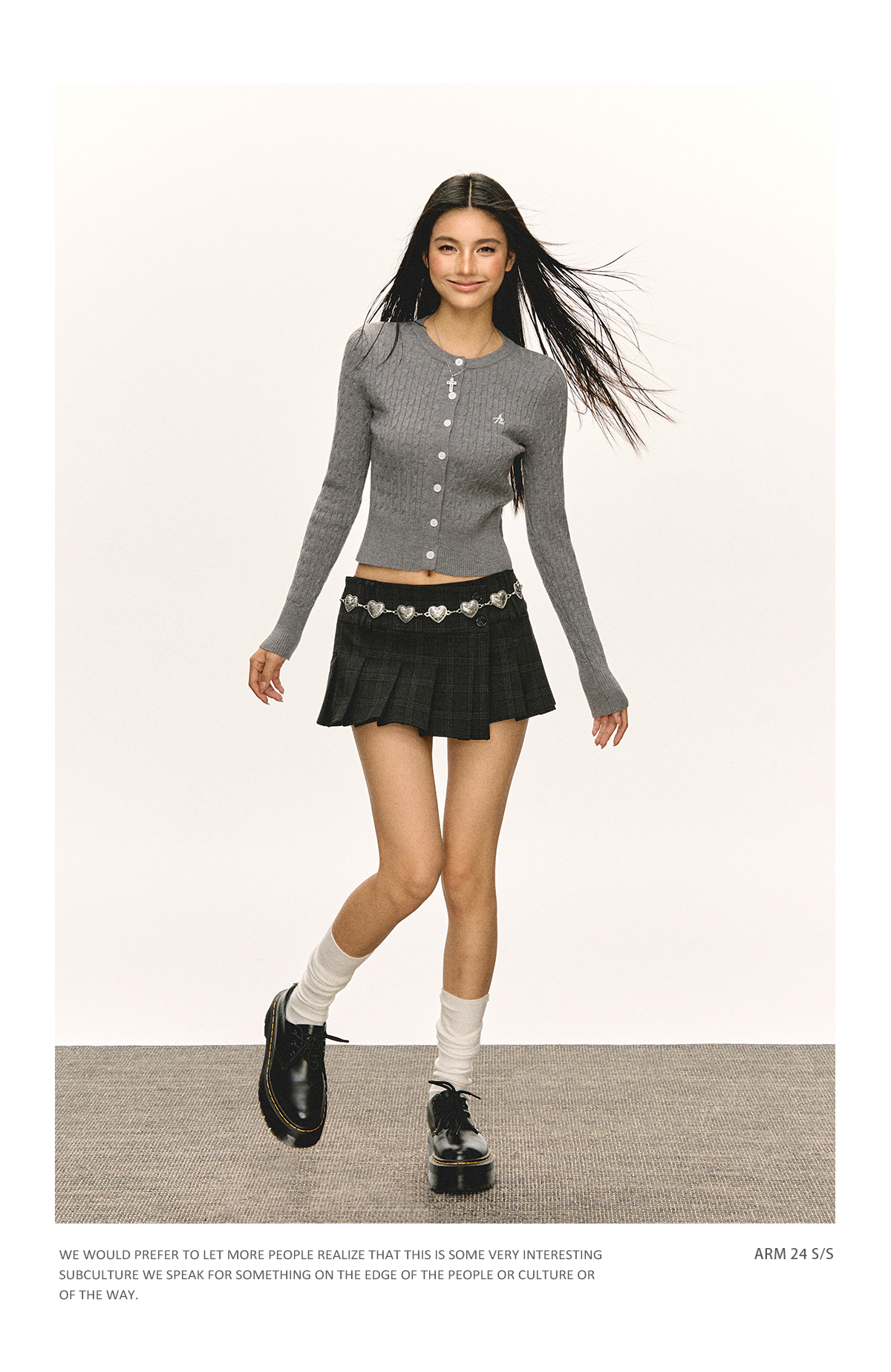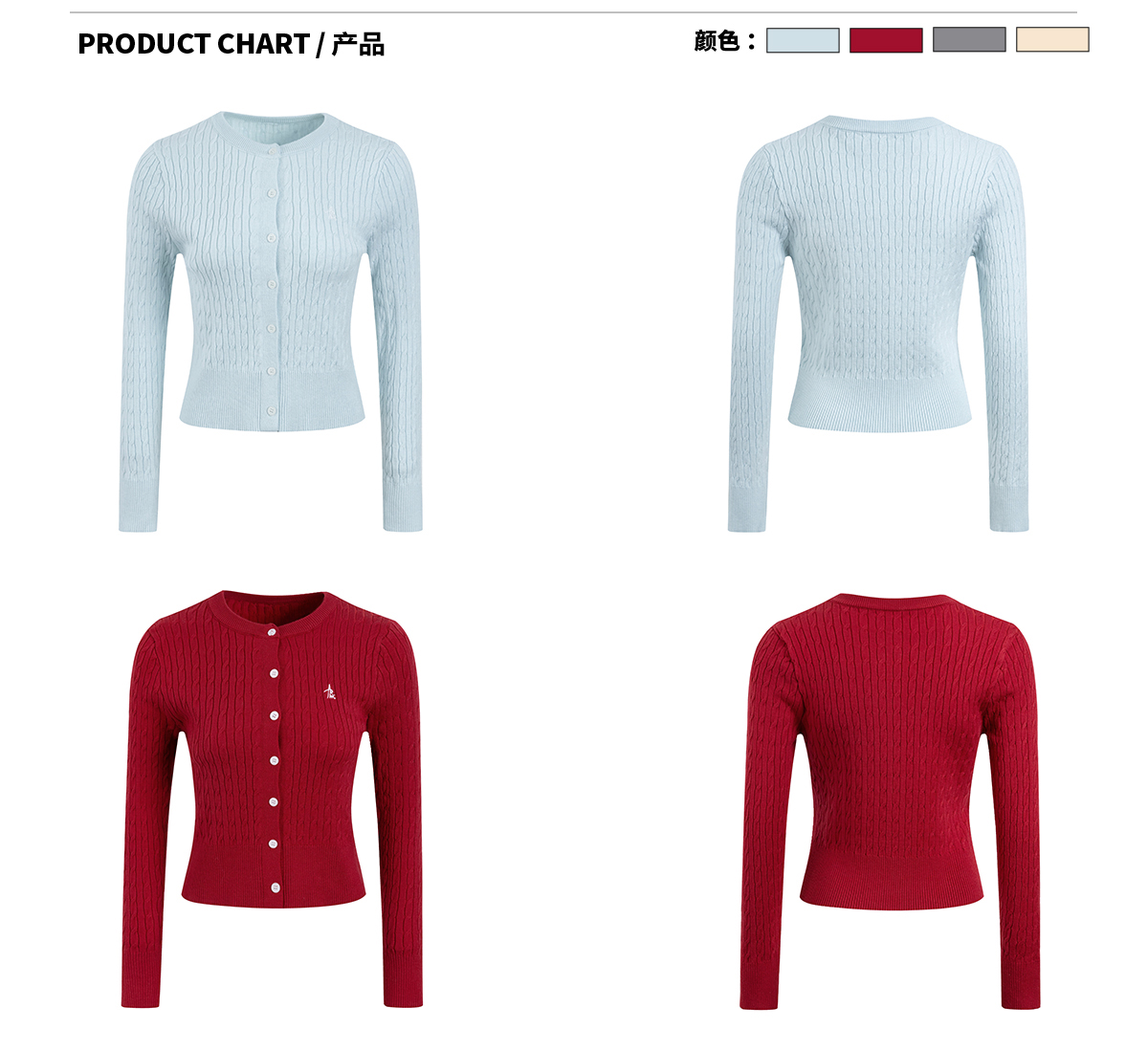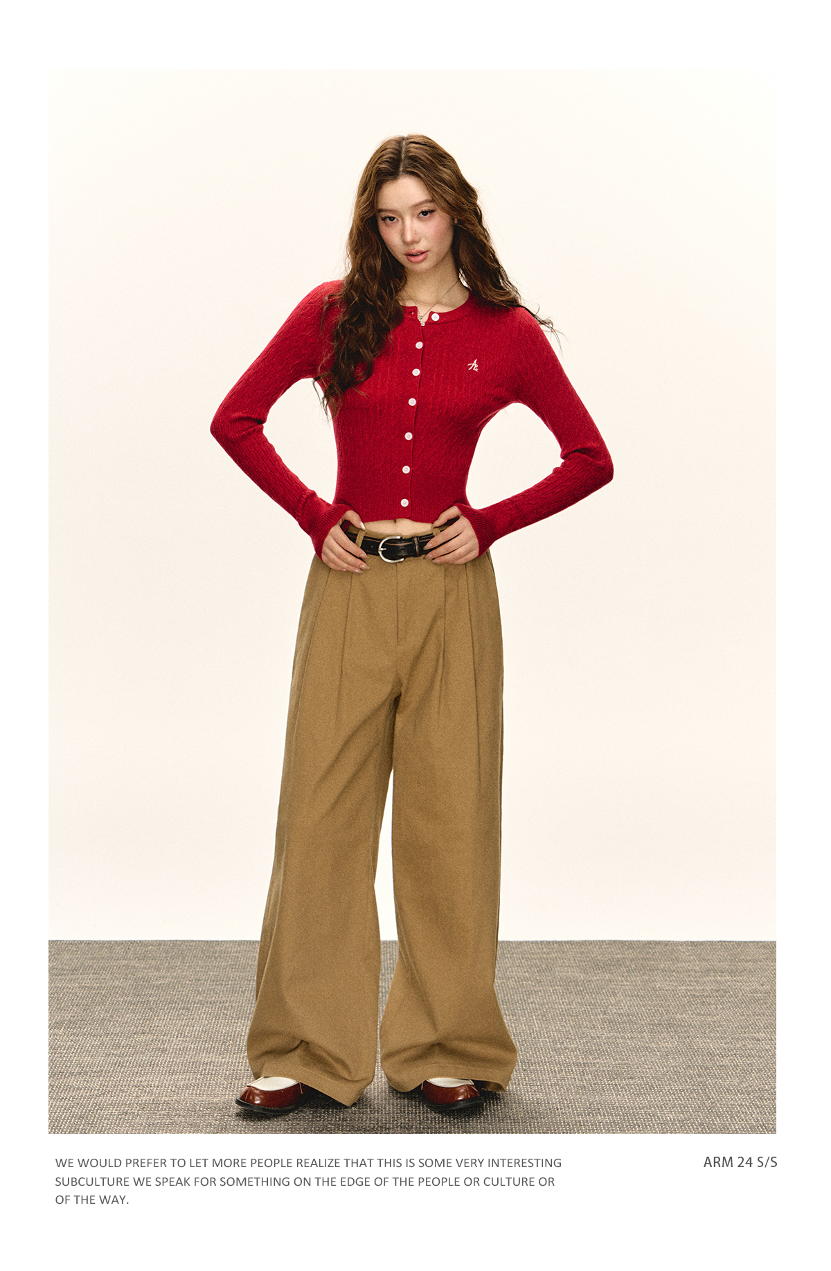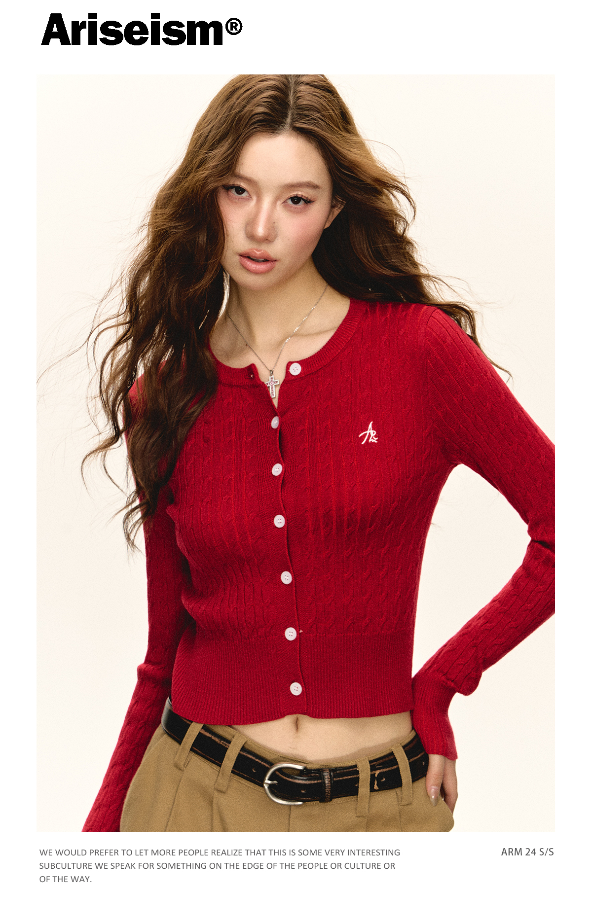 Ariseism 美式复古红色短款修身针织开衫女春季新款内搭打底上衣