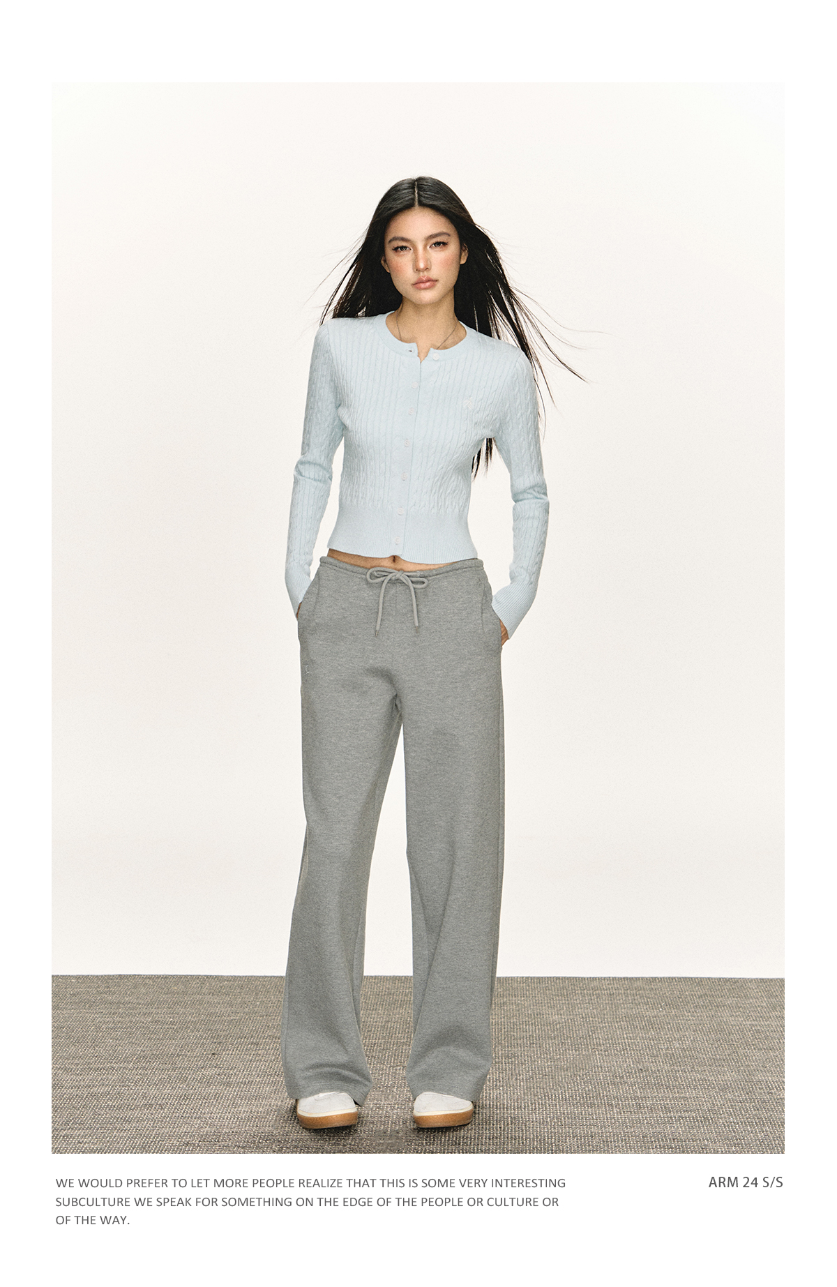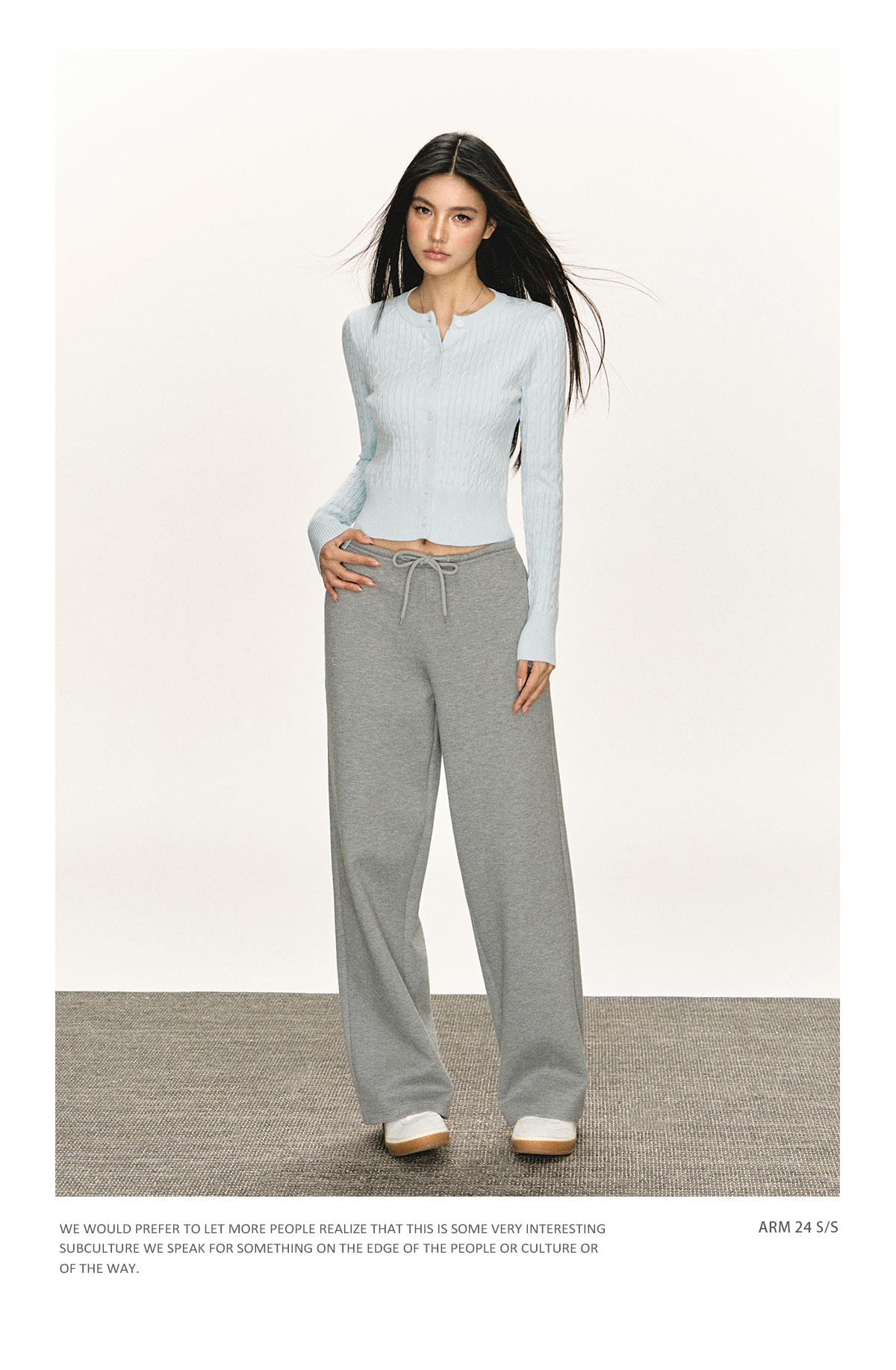 Ariseism 圆领短款长袖针织衫女春季新款内搭上衣修身毛衣打底衫