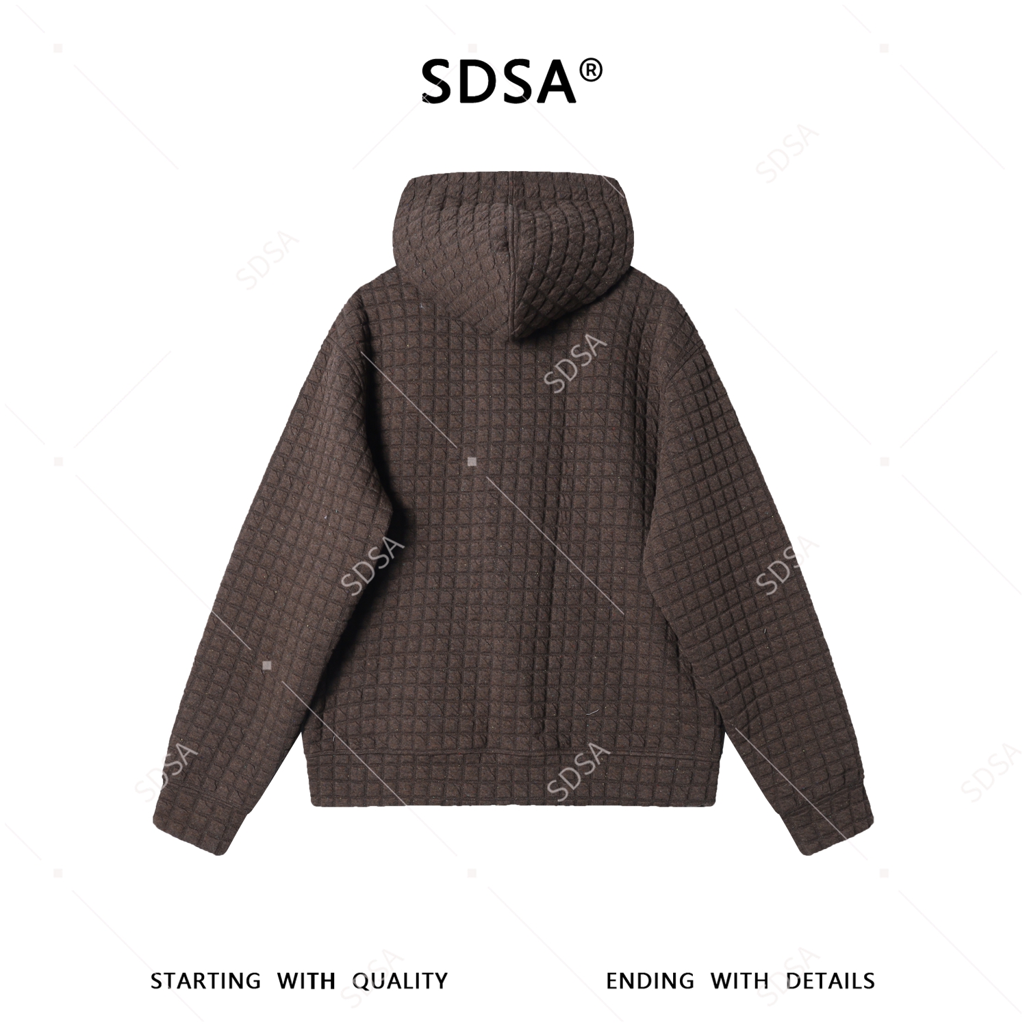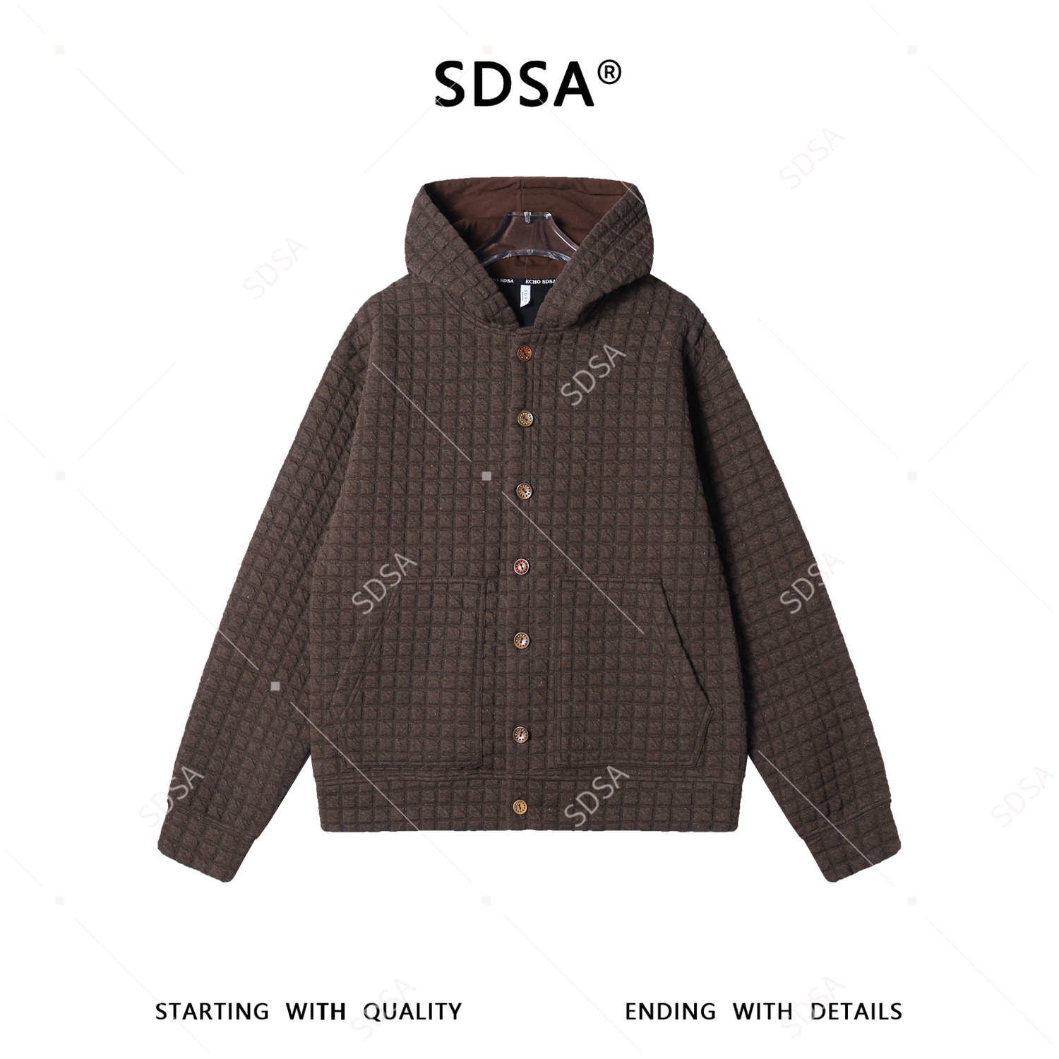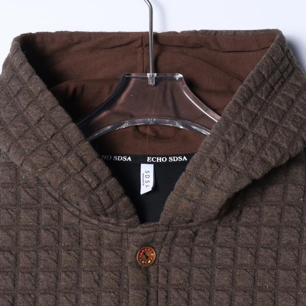 SDSA男装2026新款高贵轻奢美式复古小格子纽扣连帽卫衣外套百搭