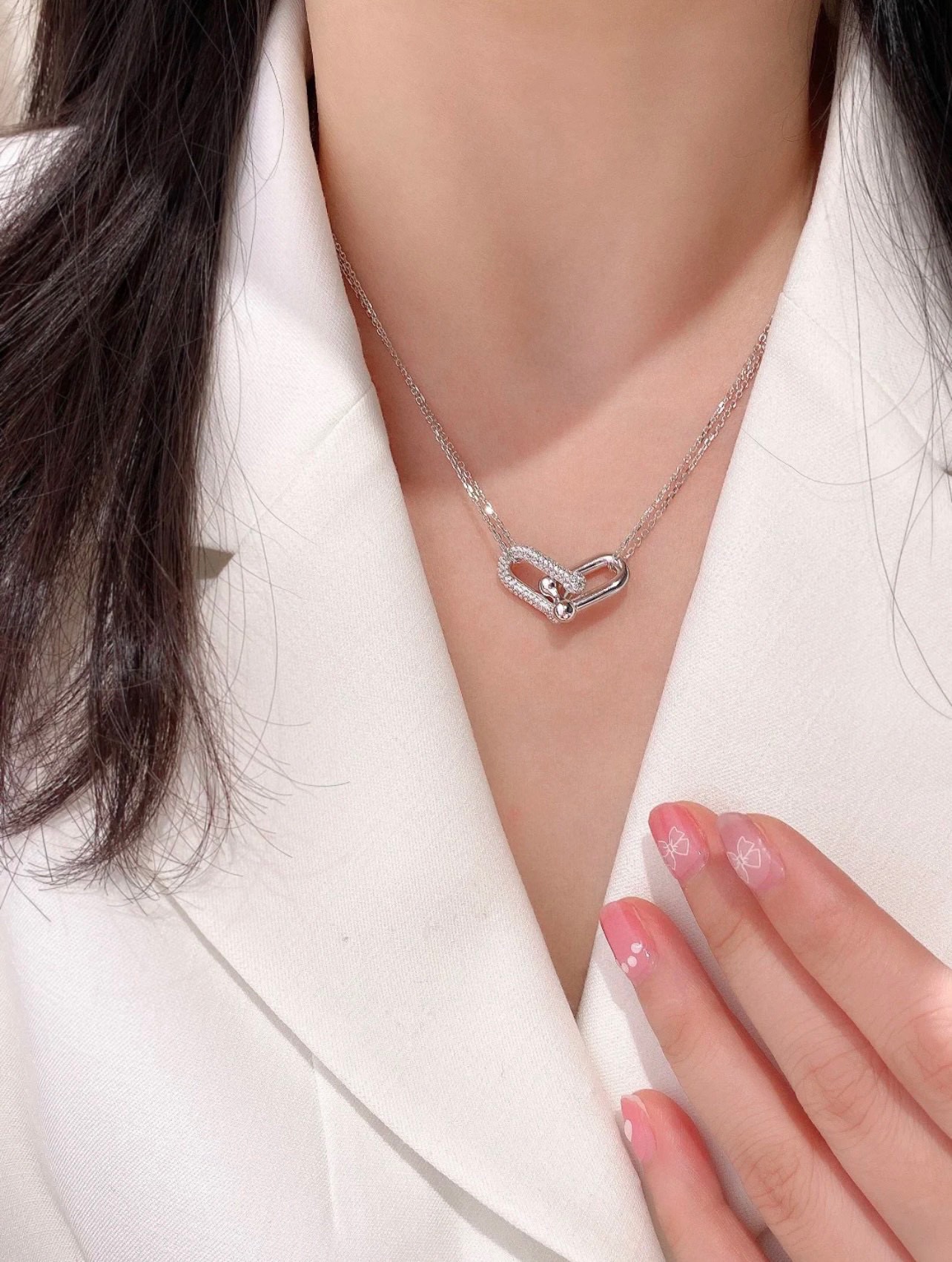 蒂芙尼U形双链环带钻项链