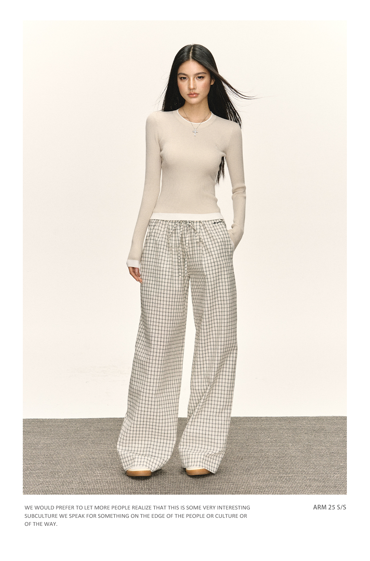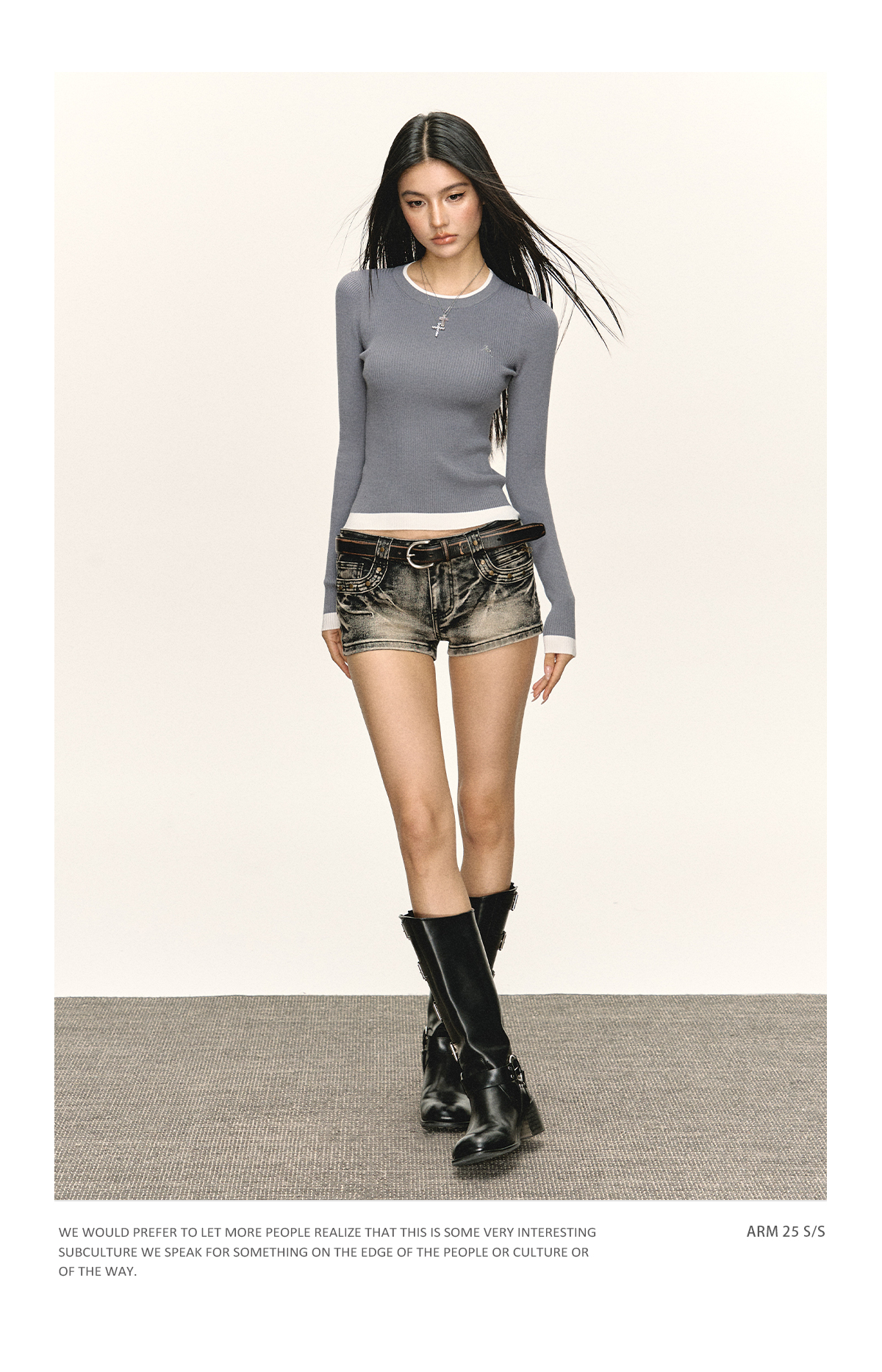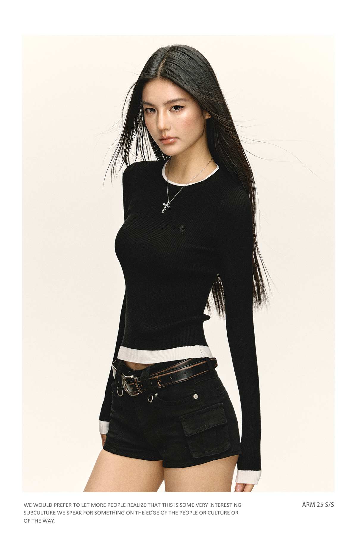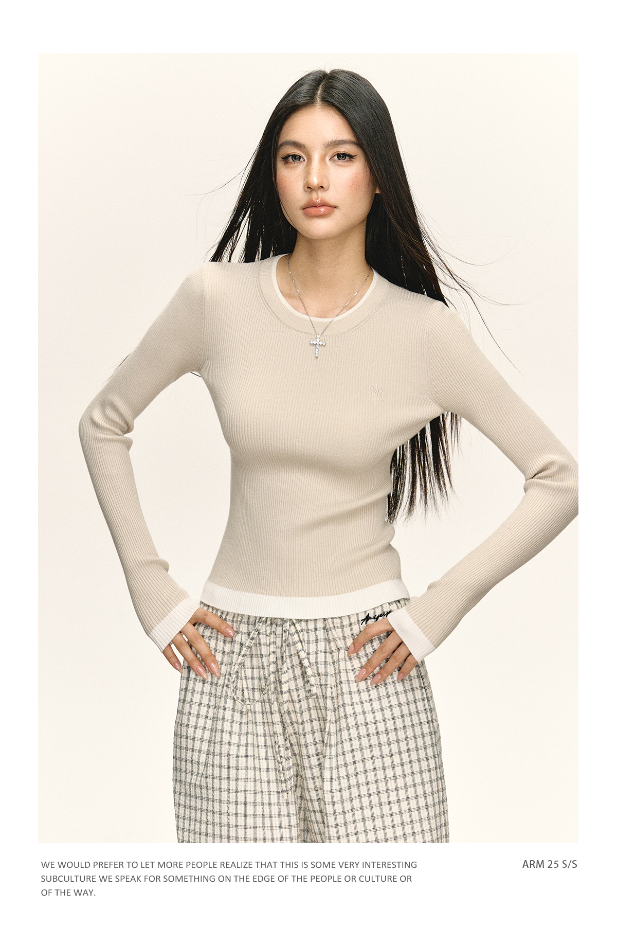 Ariseism 美式复古撞色插肩袖长袖t恤女2025春秋新款修身打底上衣
