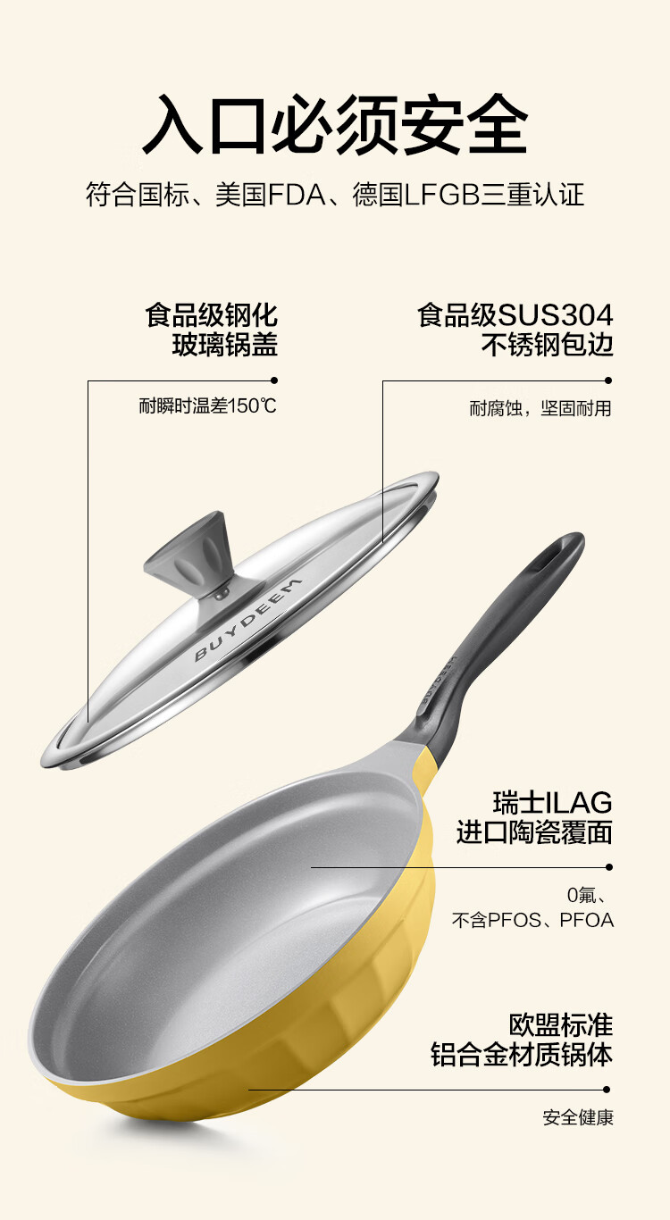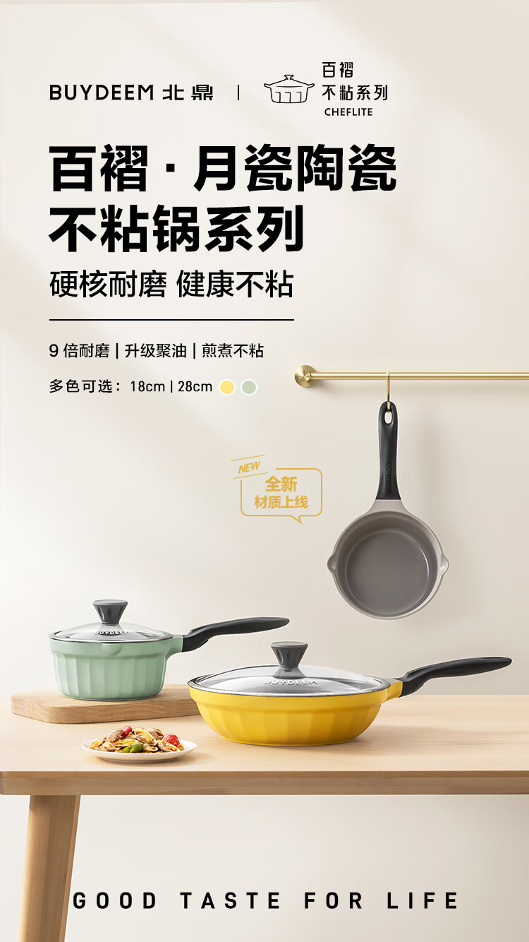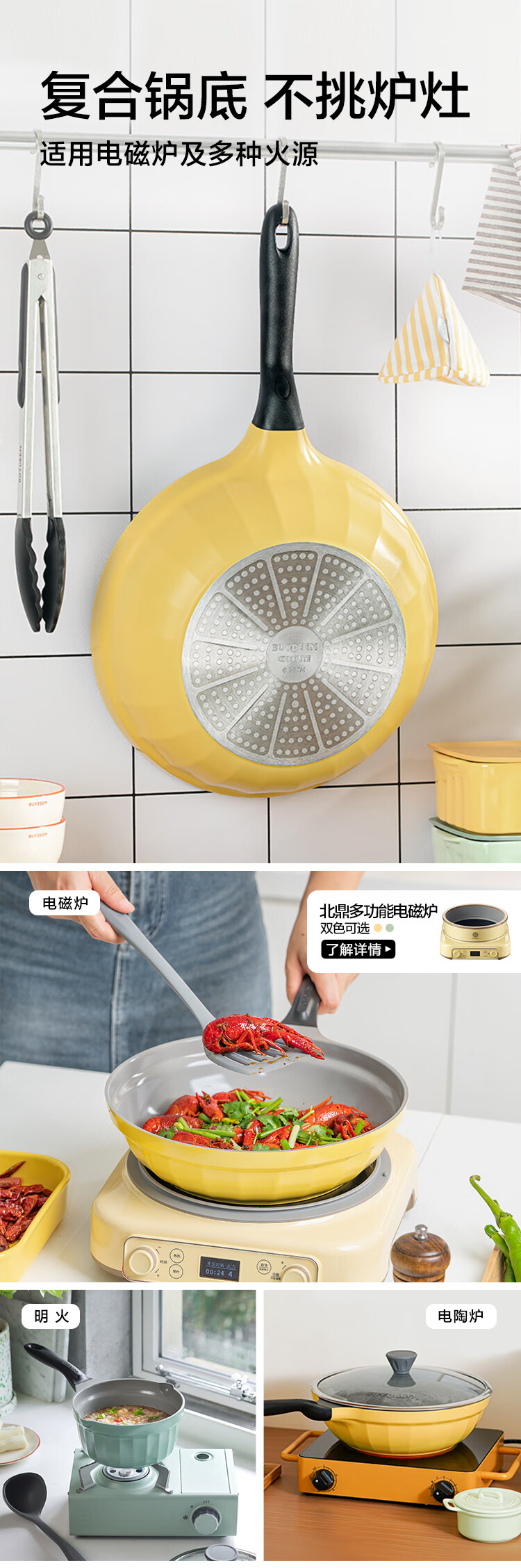 北鼎(Buydeem)月瓷系列 不粘煎锅平底锅不粘锅电磁炉燃气通用 陶瓷油涂层炒菜锅 月瓷系列不粘煎锅 28cm