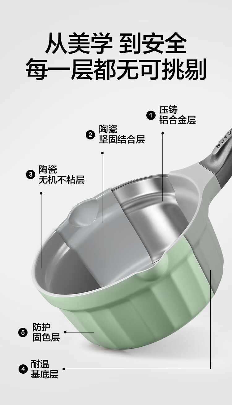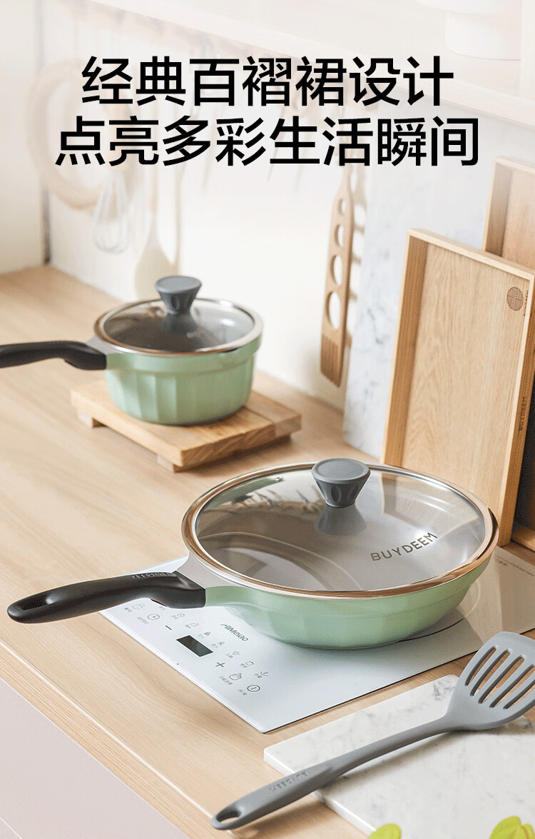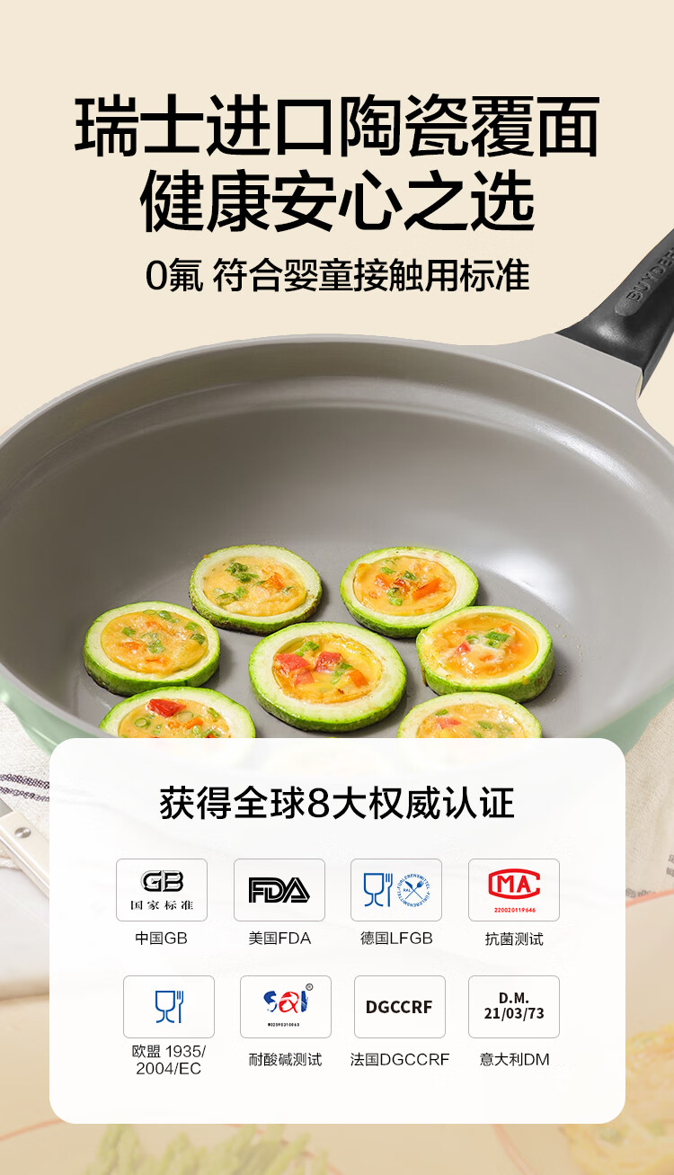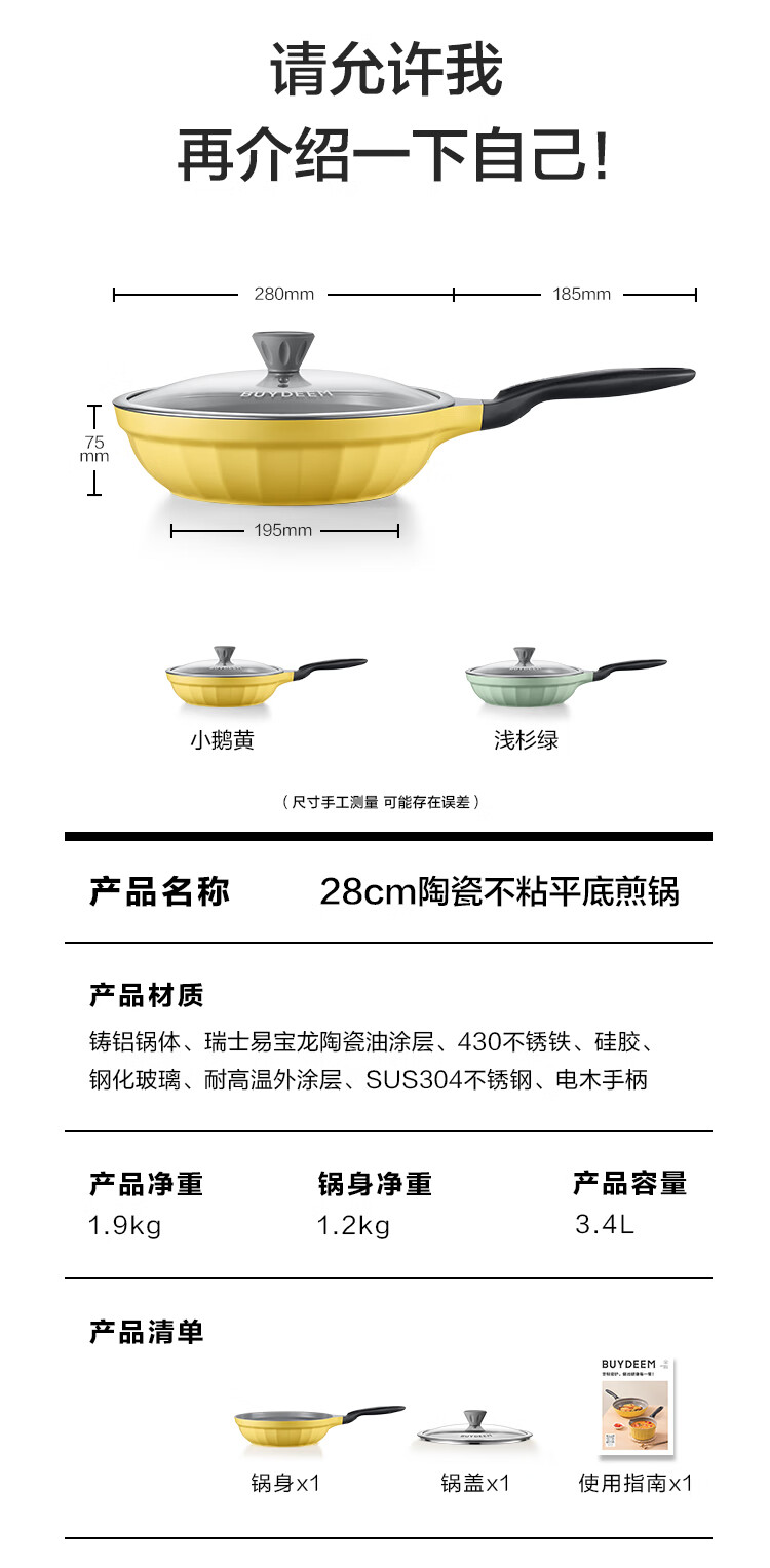 北鼎(Buydeem)月瓷系列 不粘煎锅平底锅不粘锅电磁炉燃气通用 陶瓷油涂层炒菜锅 月瓷系列不粘煎锅 28cm