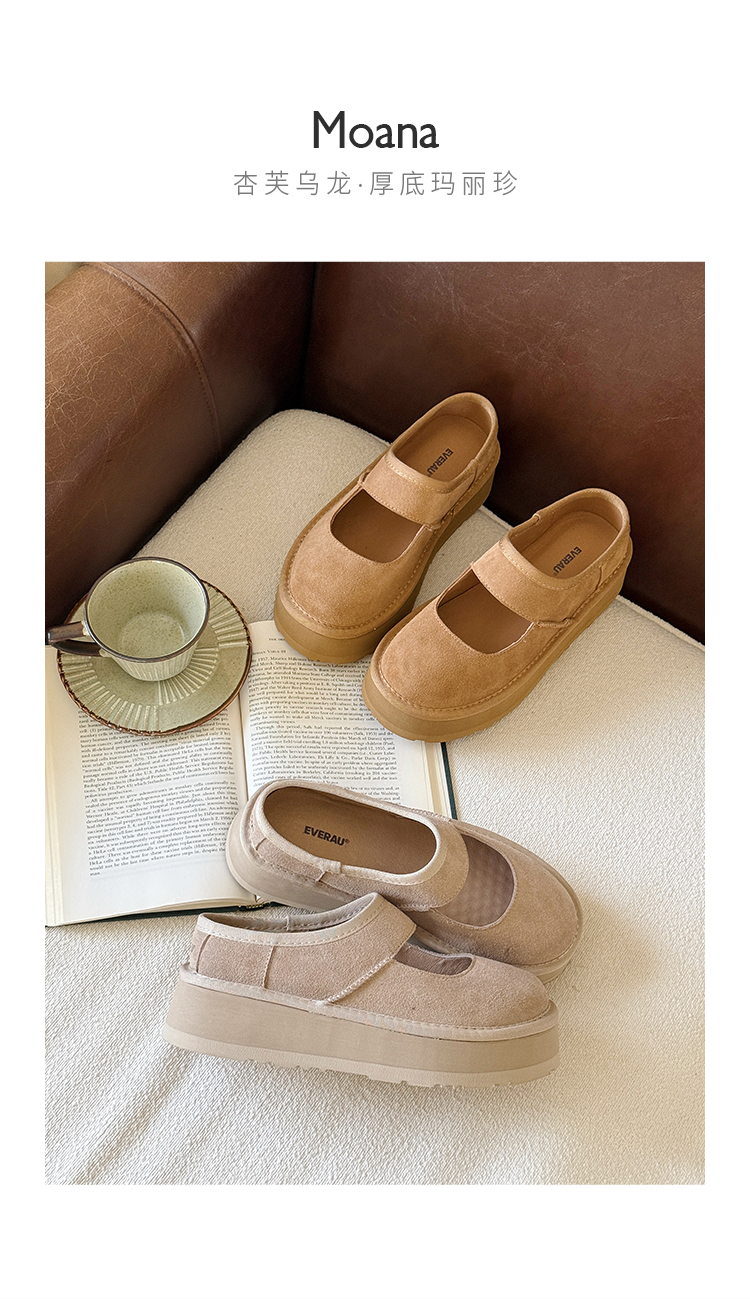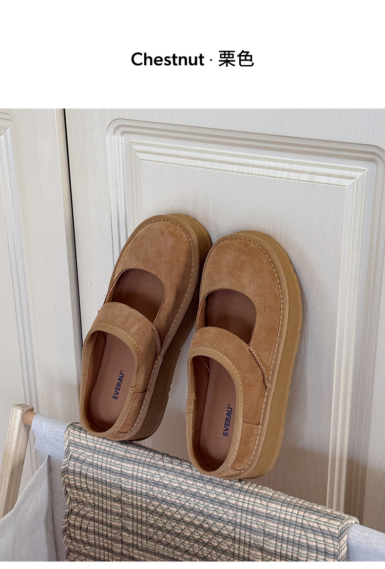 【澳洲品牌】EVERAU厚底玛丽珍浅口单鞋真皮休闲平底女鞋EA7086