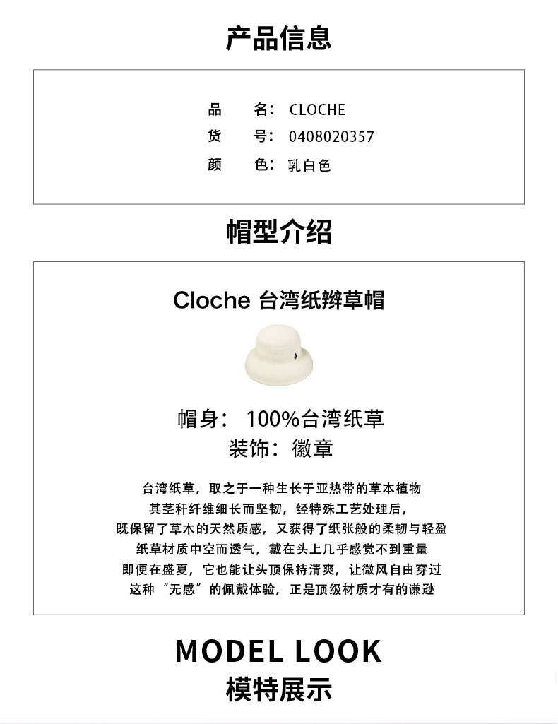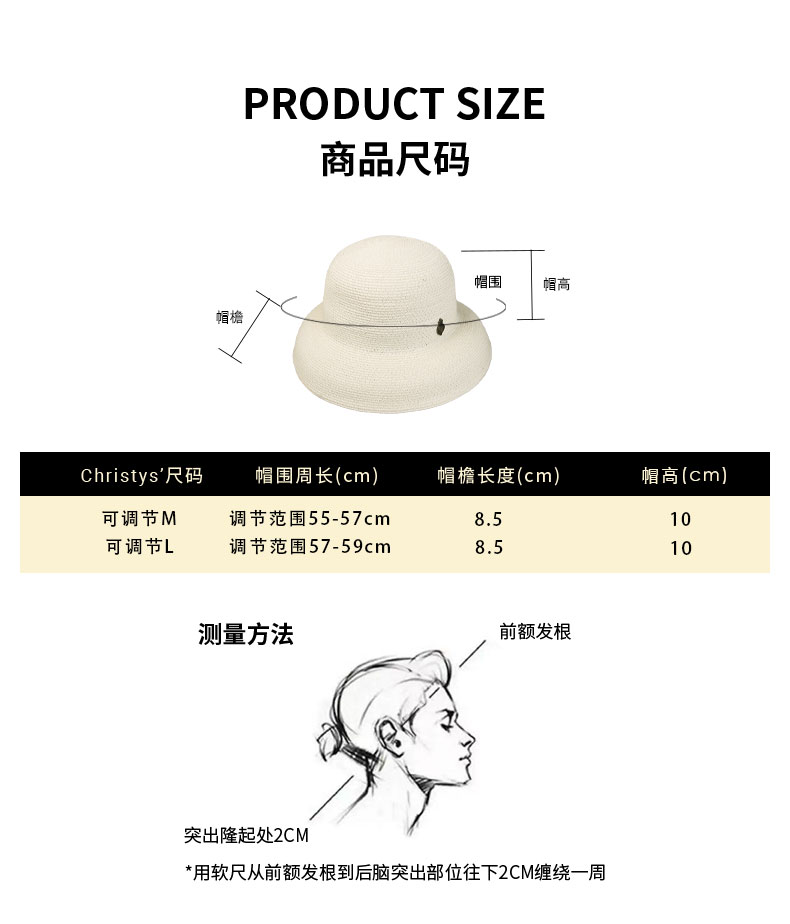 【2026新品】Christys'百年皇室品牌 天然草编织钟形草帽白
